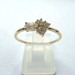 Elegancki pierścionek wykonany z żółtego złota próby 585 (14K), zaprojektowany i wykonany w rodzinnej pracowni ABgold | Baczyński. Subtelna forma oraz harmonijna kompozycja kamieni tworzą delikatną, kobiecą biżuterię o nowoczesnym, a jednocześnie ponadczasowym charakterze.