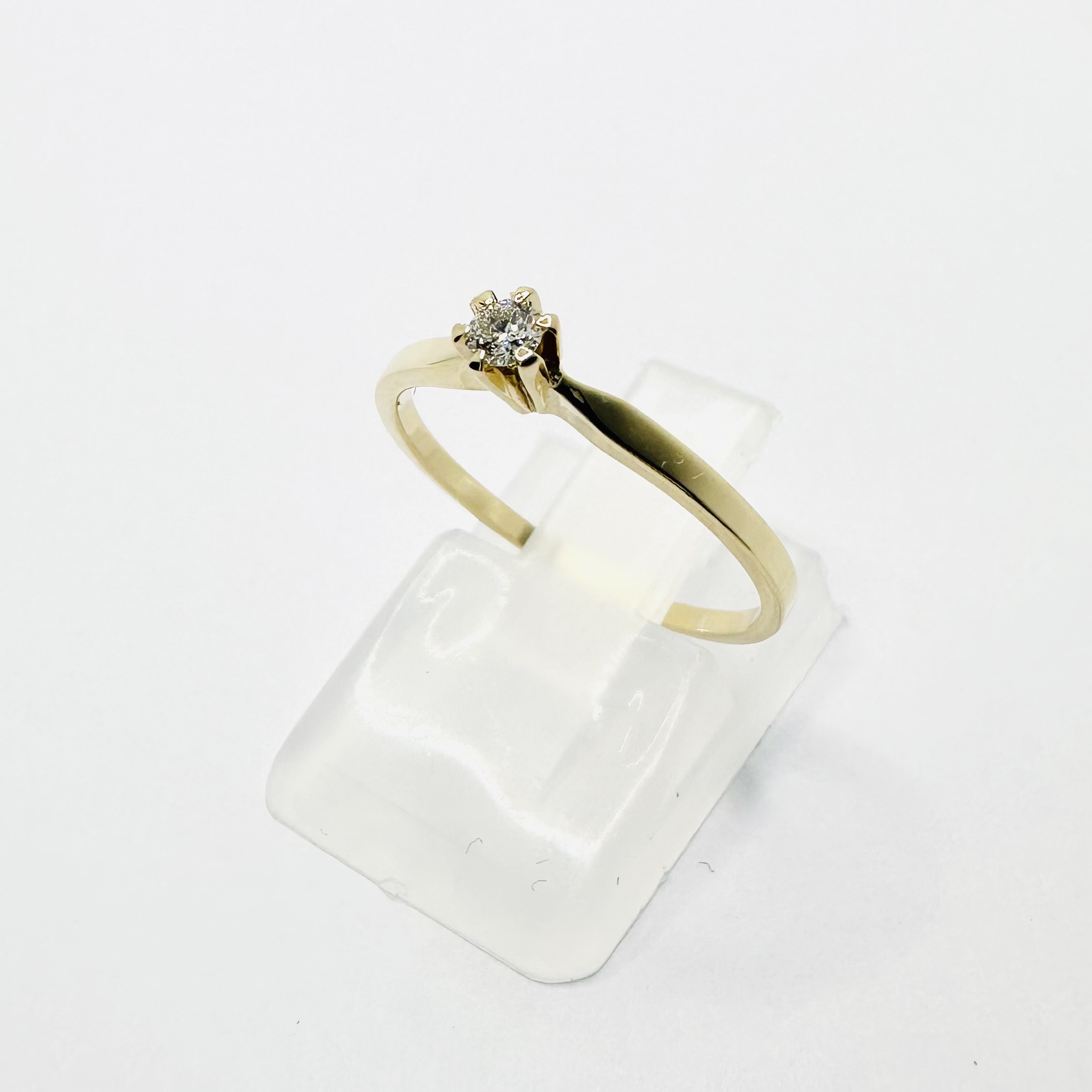 Klasyczny złoty pierścionek z brylantem 0,08ct
