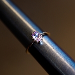 Morganit zachwyca swoją pastelową, łososiowo-różową barwą, która emanuje subtelnością i delikatnością. W owalnym szlifie prezentuje się elegancko, a jego kolor pięknie łączy się ze złotem, tworząc harmonijną, romantyczną kompozycję.