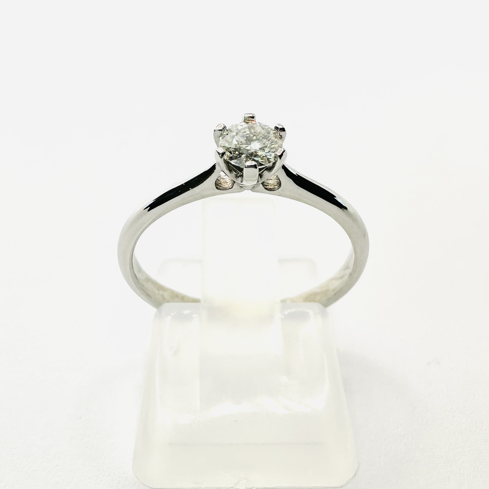 Diament o minimalnych parametrach SI1/H to idealny kompromis między czystością, barwą i blaskiem. Szlif brylantowy 57 faset nadaje mu intensywny ogień, który pięknie kontrastuje z chłodnym odcieniem białego złota.