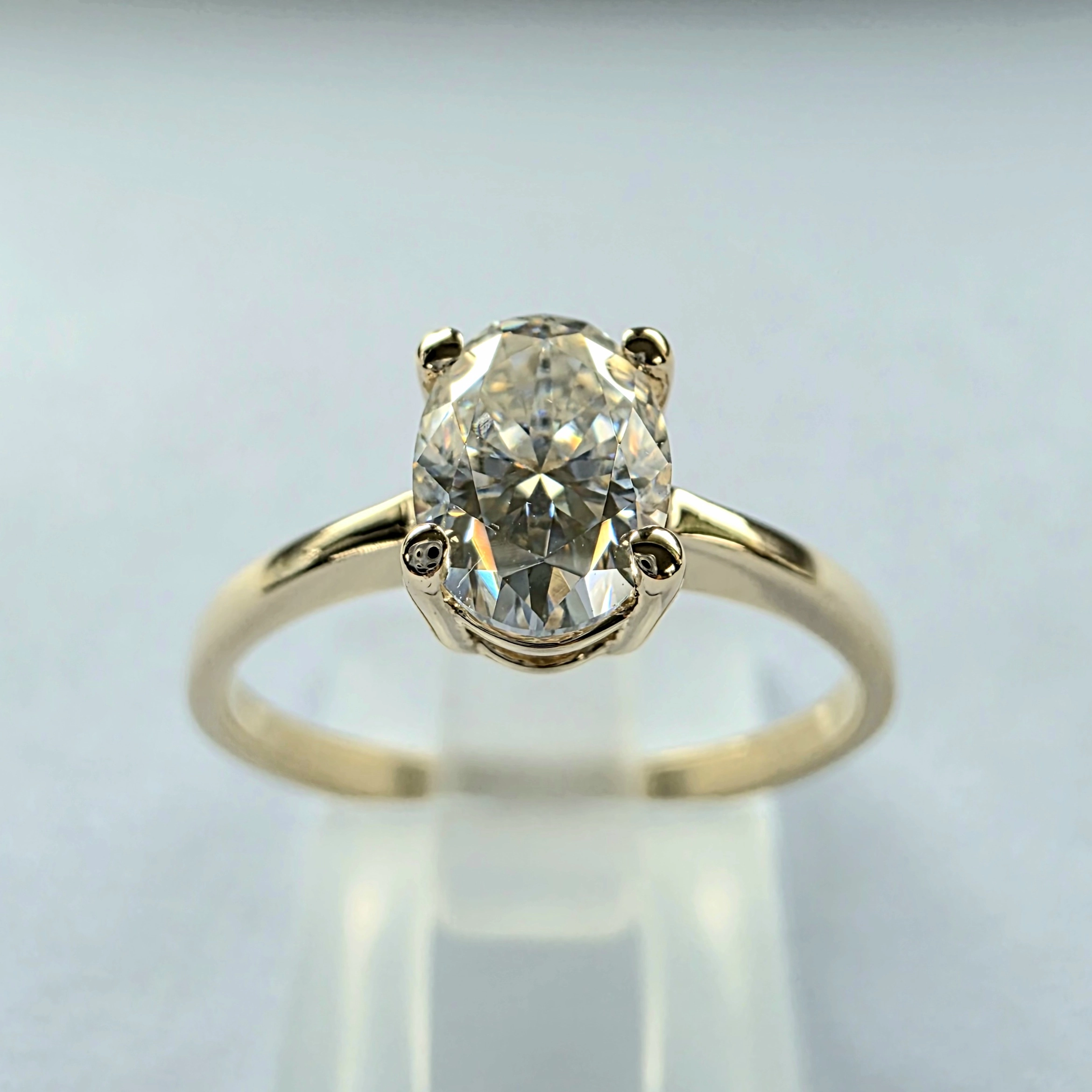 Szlif owalny łączy klasykę z nowoczesną elegancją. Dzięki swojej formie optycznie wydłuża palec oraz maksymalizuje efekt świetlny, co sprawia, że diament wygląda na większy i bardziej efektowny.