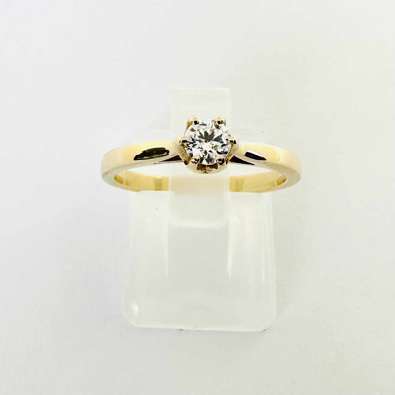 Solidny pierścionek z moissanitem 0,25 ct – żółte złoto 585 – przewaga złota nad kamieniem – klasyka ABgold | Baczyński