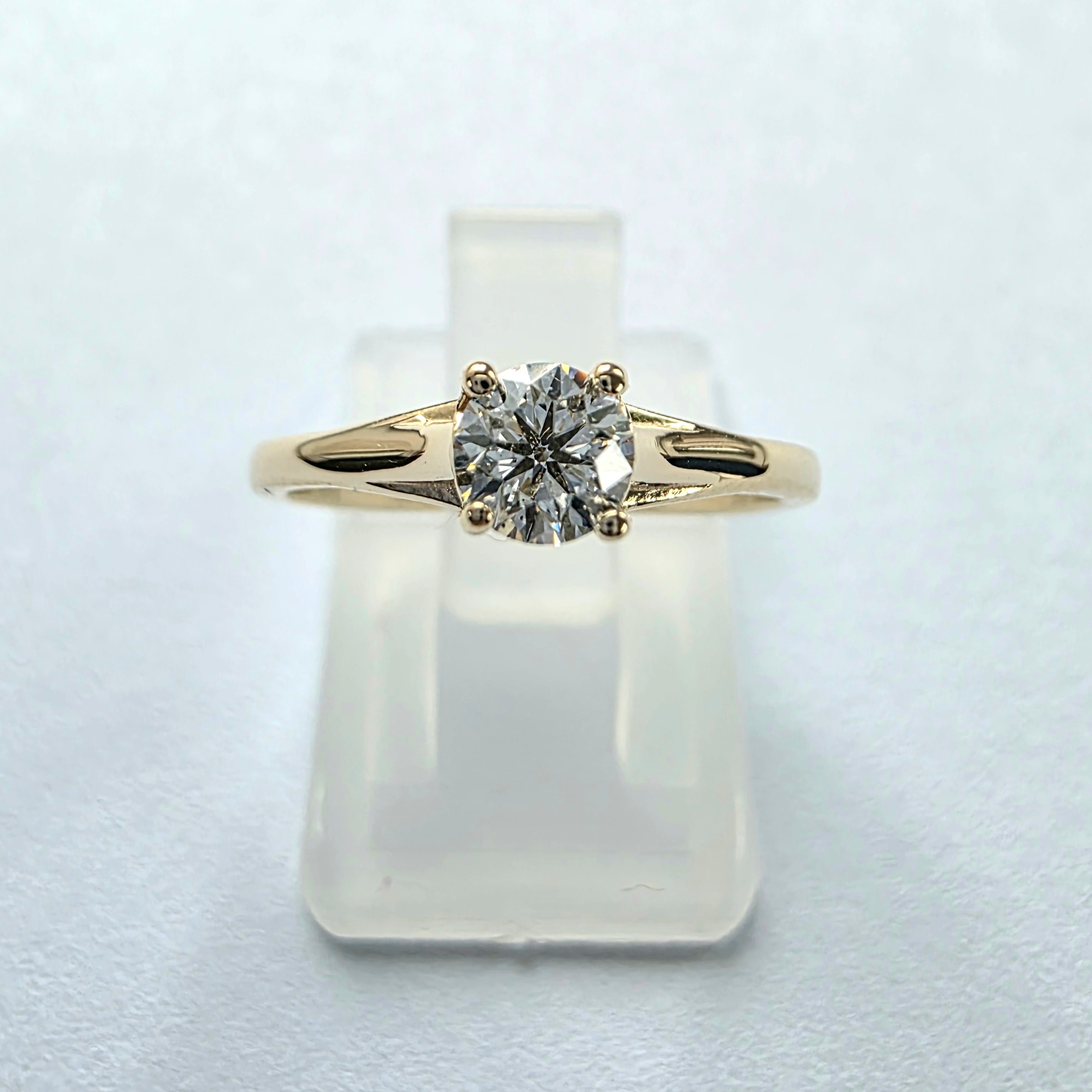 Konstrukcja pierścionka została zaprojektowana w duchu klasyki — delikatna, smukła szyna harmonijnie prowadzi wzrok ku centralnemu kamieniowi, nie odciągając od niego uwagi. To model, który doskonale sprawdza się zarówno jako pierścionek zaręczynowy, jak i elegancka biżuteria na co dzień. Żółte złoto dodaje całości ciepłego, luksusowego charakteru.