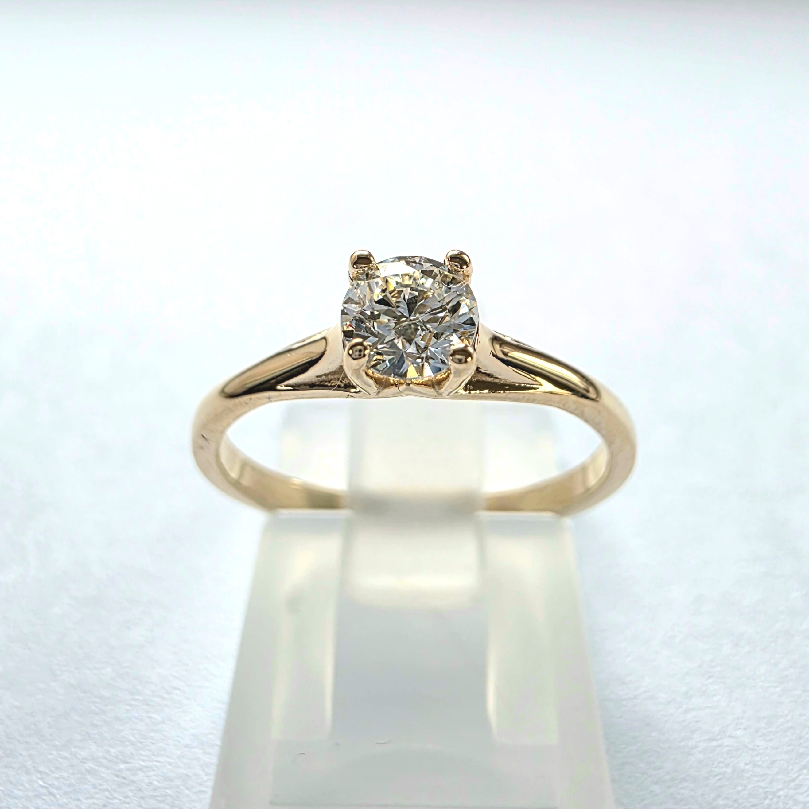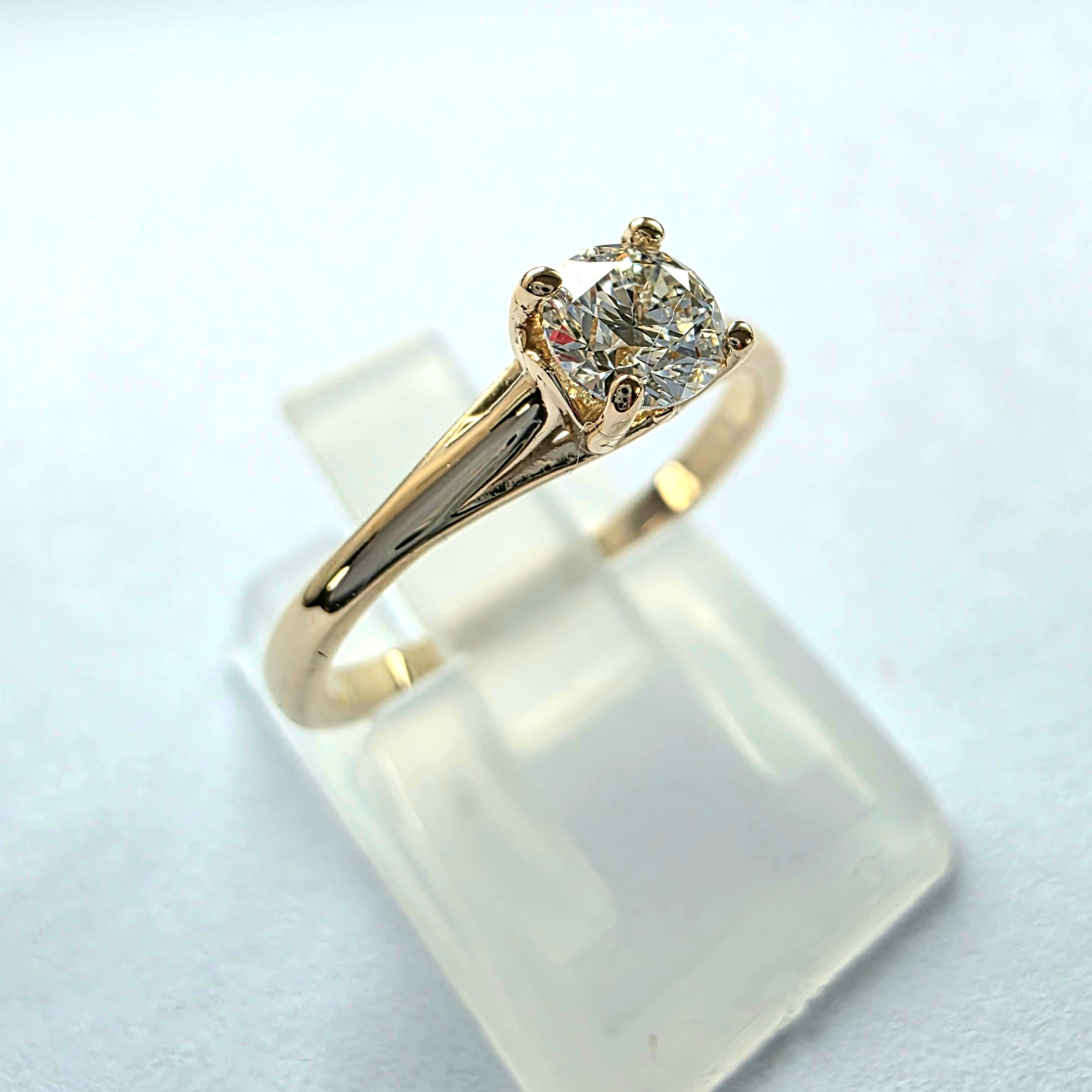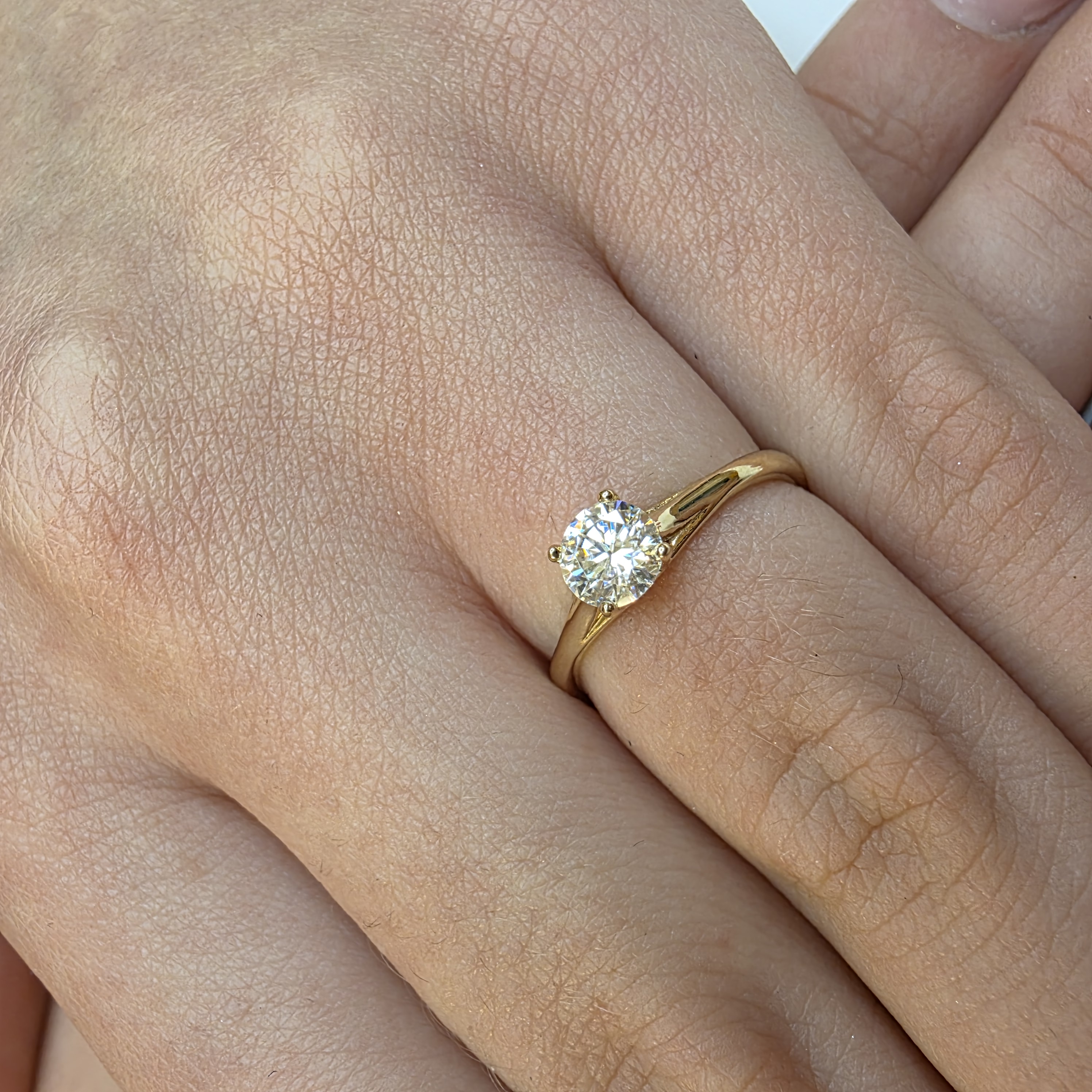 Model wykonany z żółtego złota 585, o masie około 1,60 g. W oprawie znajduje się wysokiej jakości moissanit 0,50 ct o średnicy 5,0 mm. Kamień oszlifowany jest w klasycznym brylantowym szlifie okrągłym, zapewniającym wyjątkowy połysk i idealne proporcje faset.