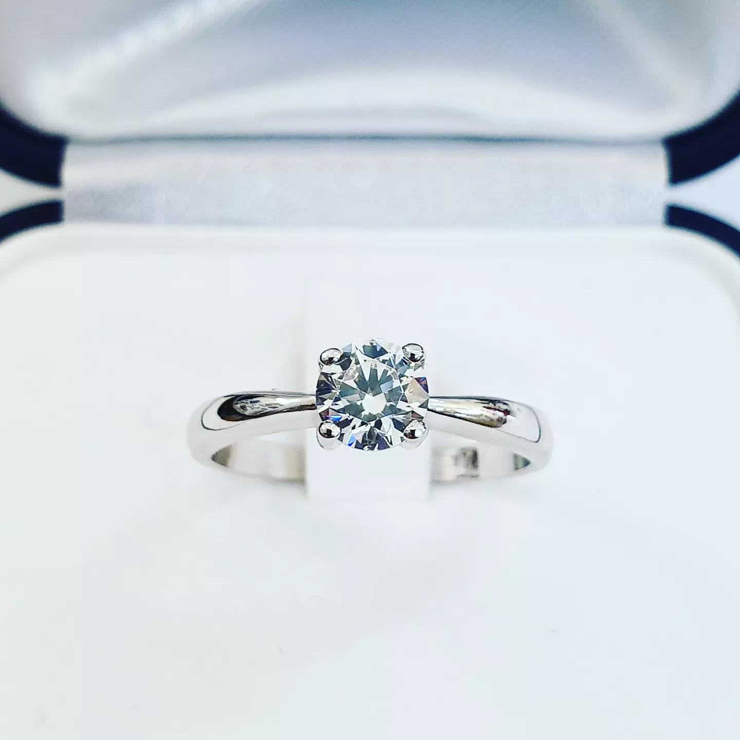 Klasyczny pierścionek z moissanitem 0,50 ct VVS1/D – białe złoto 585 – ABgold | Baczyński