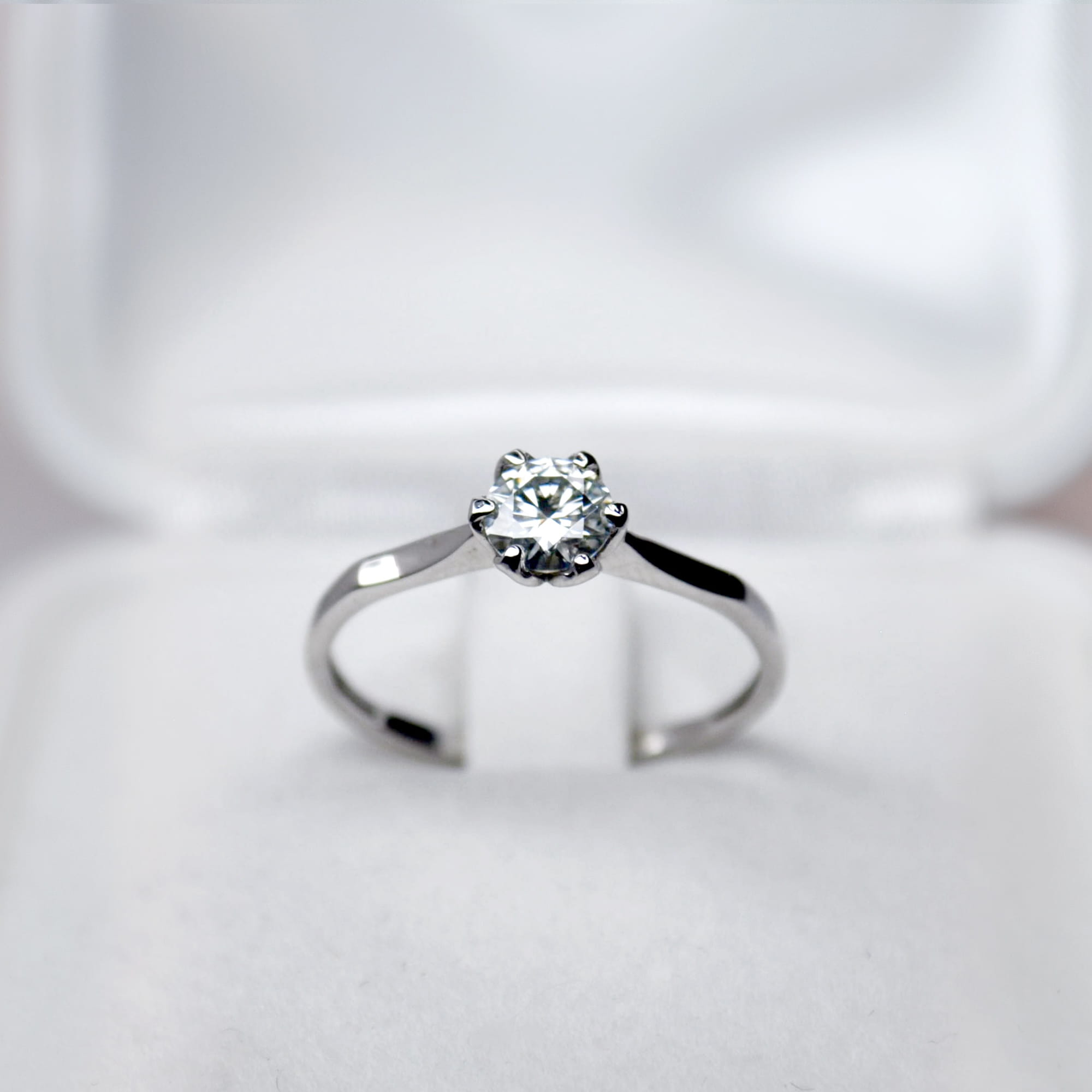 Jeden z naszych absolutnych bestsellerów – klasyczny, elegancki pierścionek wykonany z białego złota 585 (14K), ozdobiony moissanitem brylantowym 0,50 ct o średnicy 5,0 mm. Charakterystyczna kwiatowa oprawa nadaje mu romantyczny, ponadczasowy wygląd, dzięki czemu jest to wzór idealny na zaręczyny, ale również jako wyjątkowy prezent dla siebie lub bliskiej osoby. W naszej pracowni stosujemy moissanity o minimalnej czystości VS1, co gwarantuje spektakularny blask i nienaganną przejrzystość.