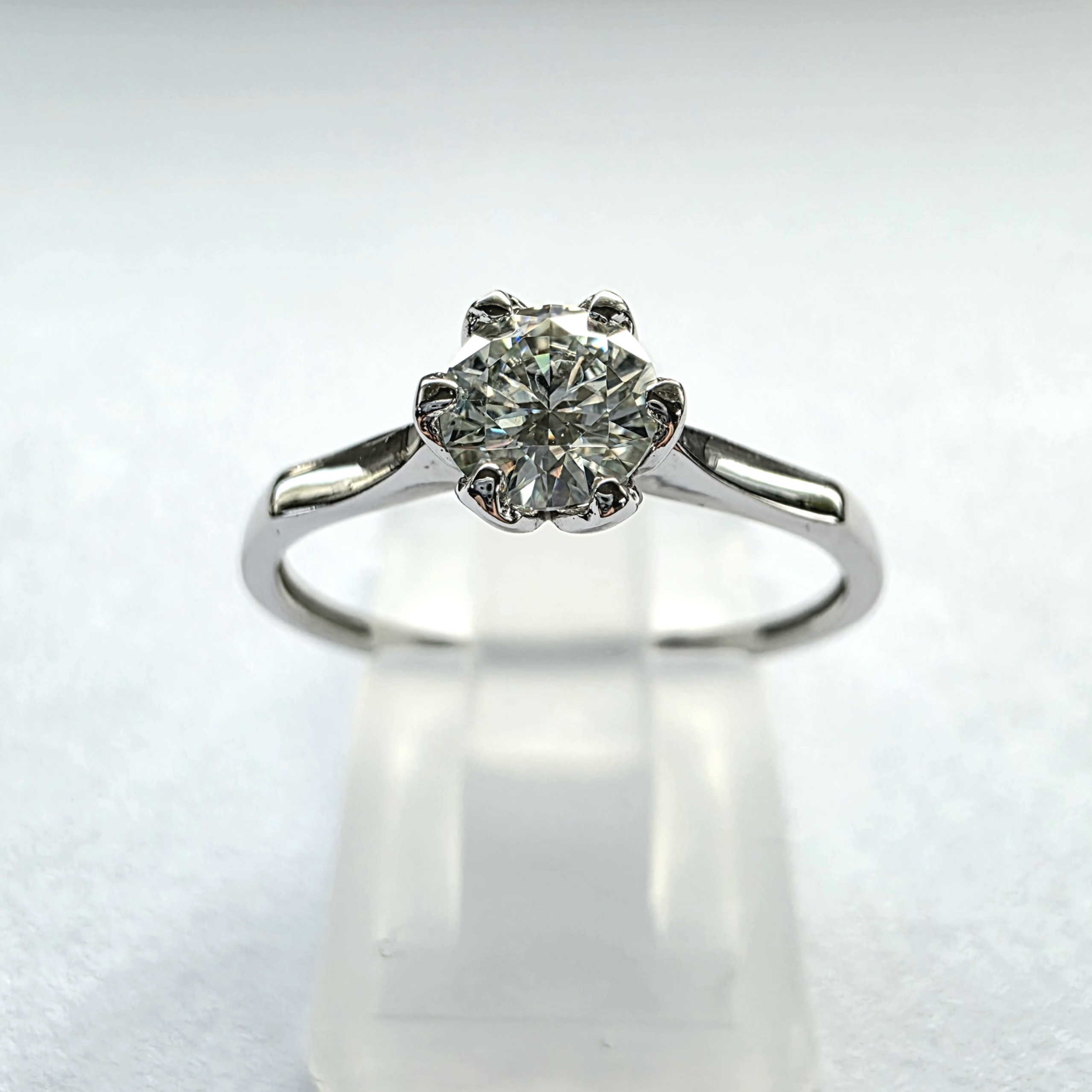 Pierścionek z moissanitem 0,50 ct w oprawie kwiatowej – białe złoto 585 – ponadczasowy bestseller – ABgold | Baczyński