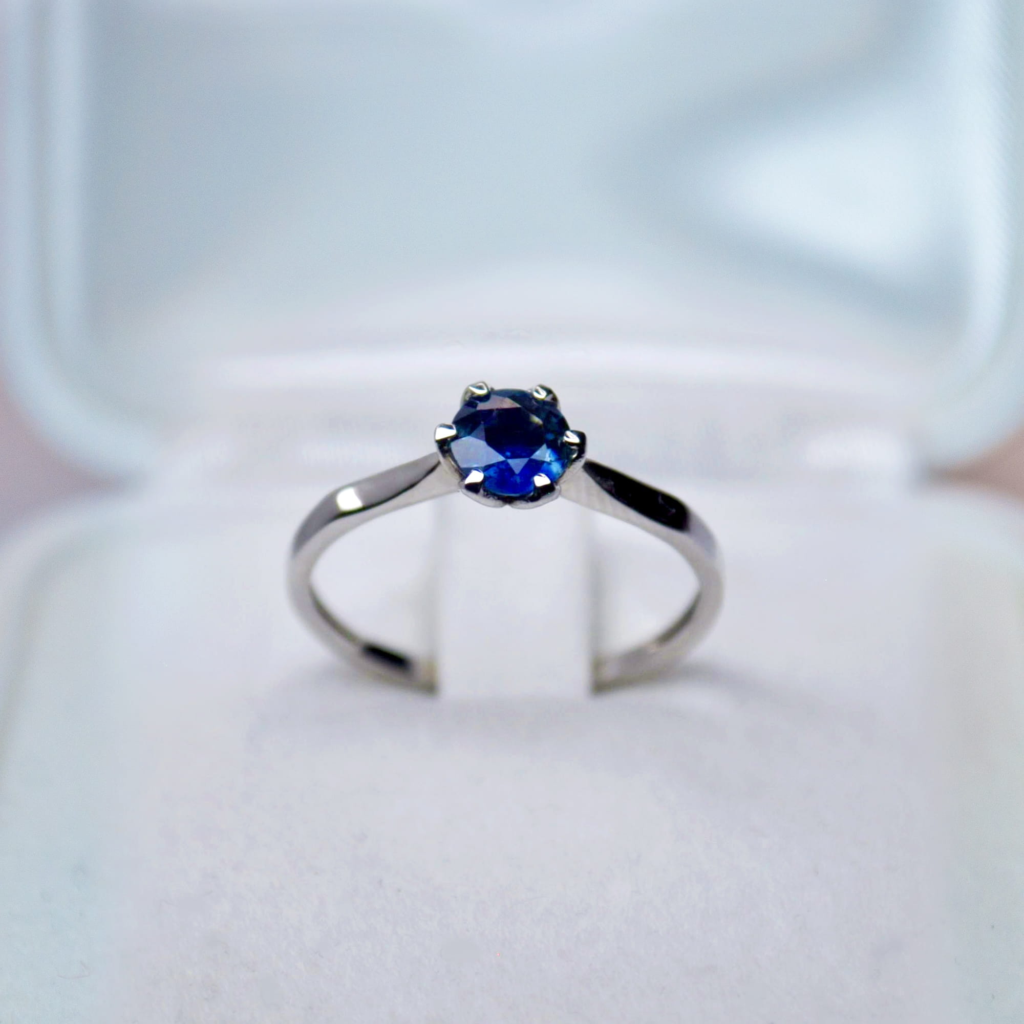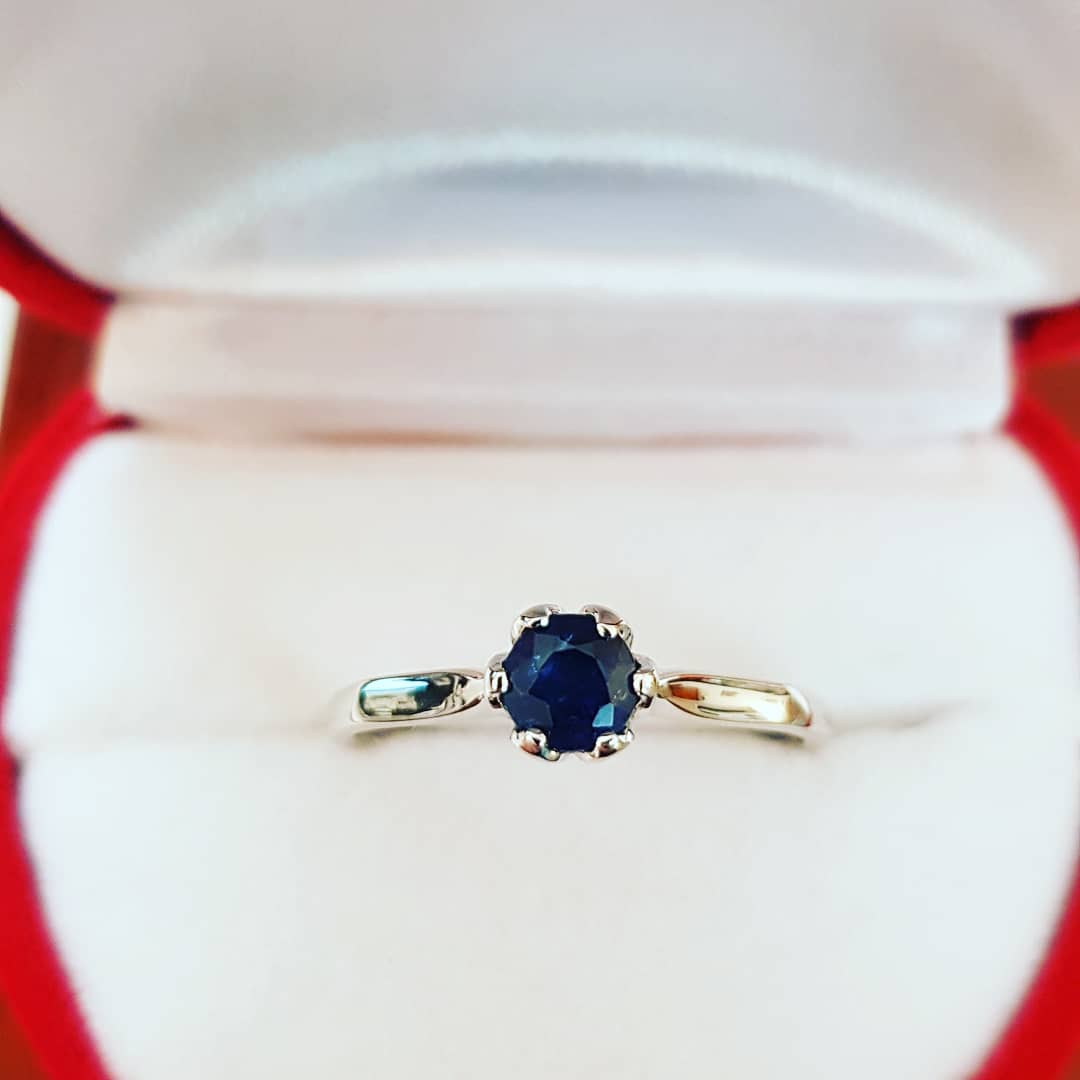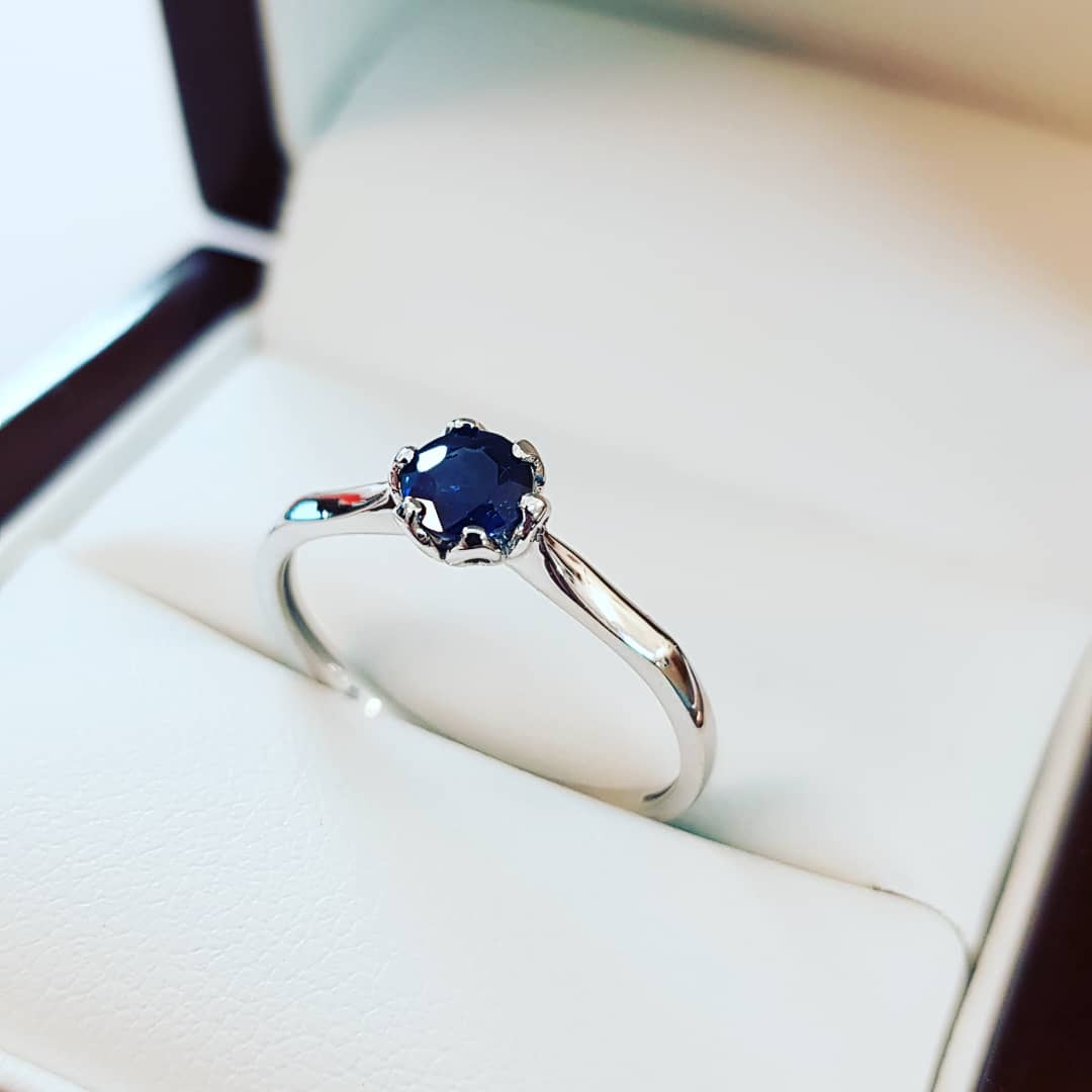 Pierścionek z naturalnym szafirem 0,40 ct w oprawie kwiatowej – białe złoto 585 – ABgold | Baczyński