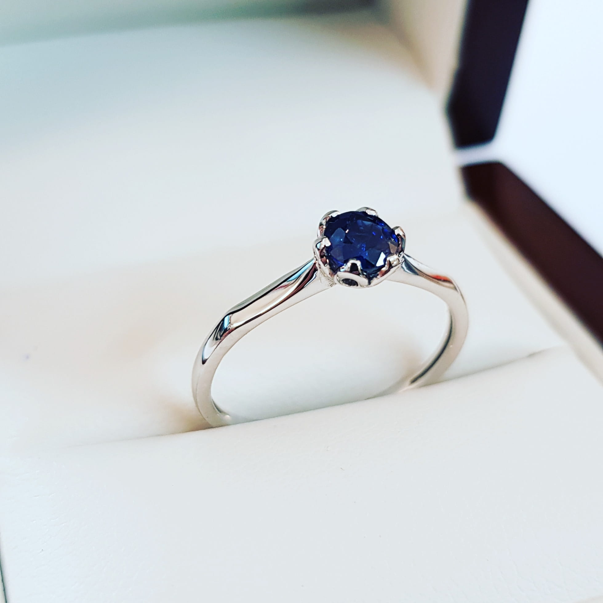 Pierścionek powstaje w naszej rodzinnej pracowni, gdzie korzystamy z własnych odlewów i ręcznej oprawy kamieni. Dzięki temu możemy dopracować każdy szczegół – od proporcji oprawy kwiatowej po idealne osadzenie szafiru.