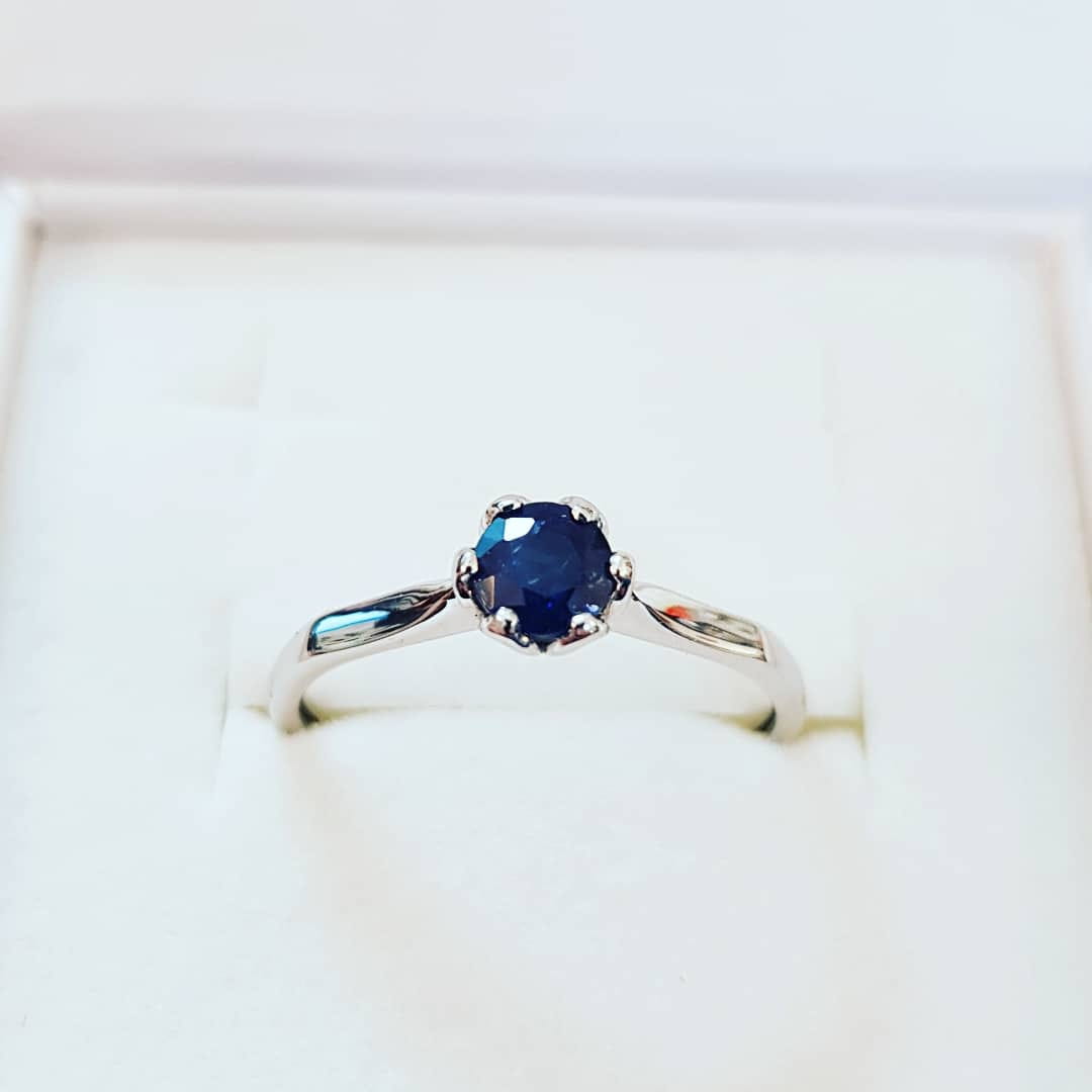 Naturalny szafir słynie ze swojej intensywnej, głębokiej barwy i wyjątkowej odporności na uszkodzenia, co czyni go jednym z najtrwalszych kamieni szlachetnych. Dzięki brylantowemu szlifowi kamień pięknie odbija światło, tworząc eleganckie, subtelne iskrzenie, idealne zarówno na co dzień, jak i na specjalne okazje.