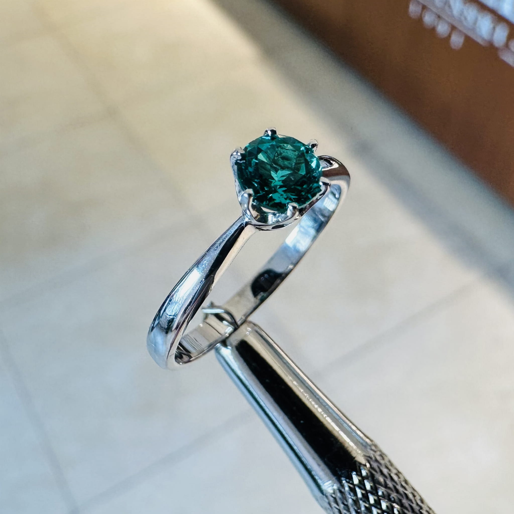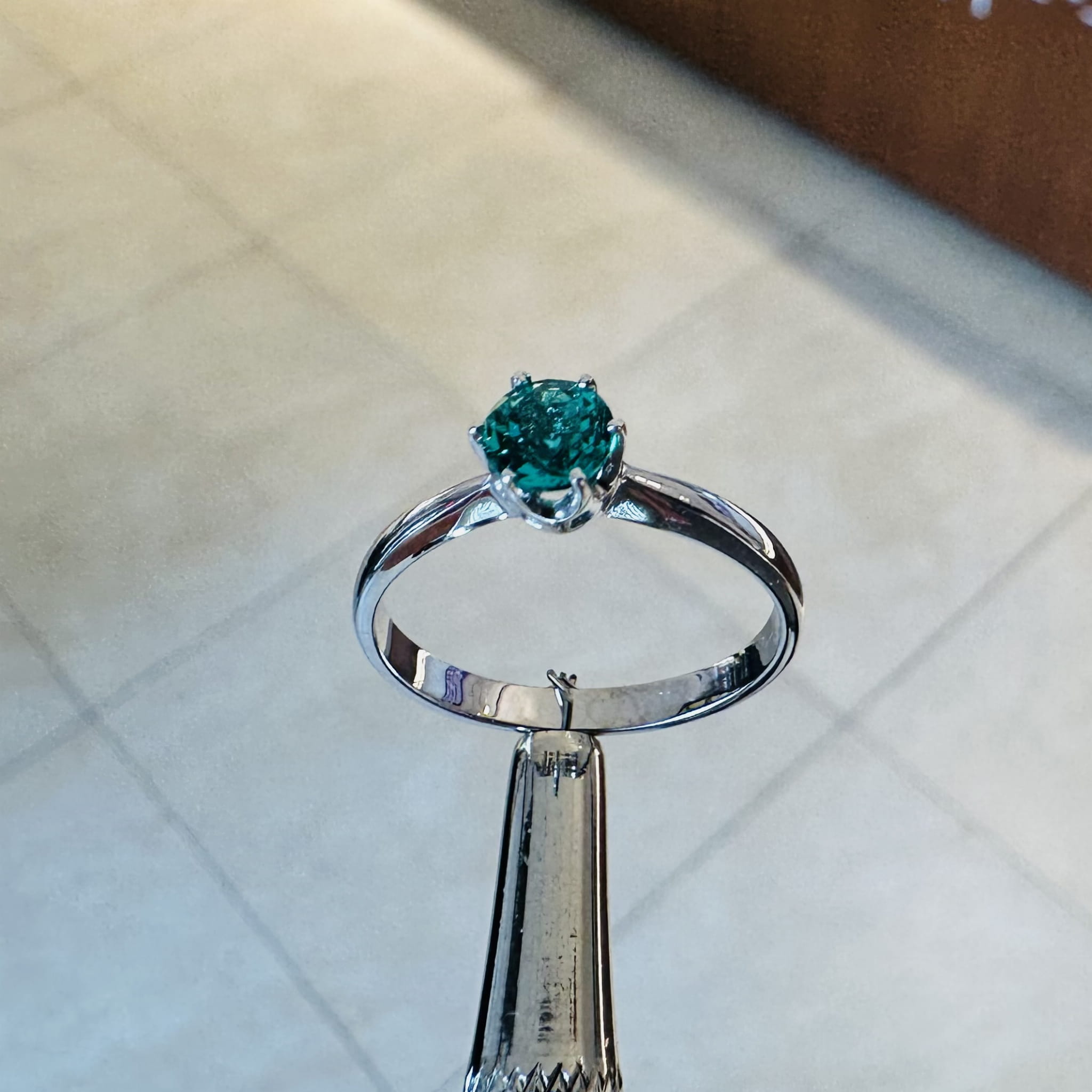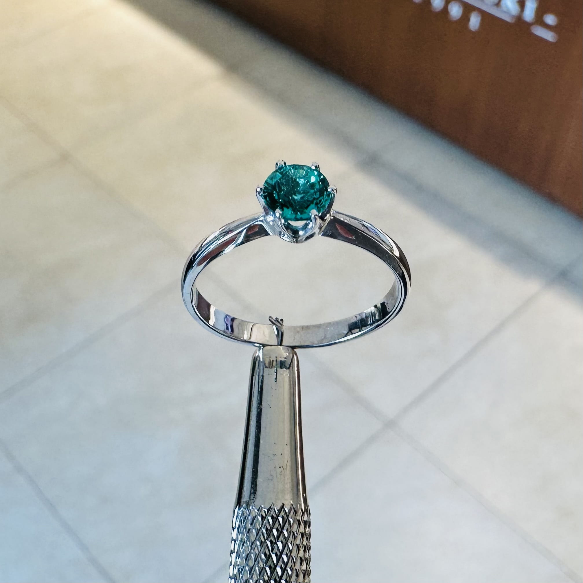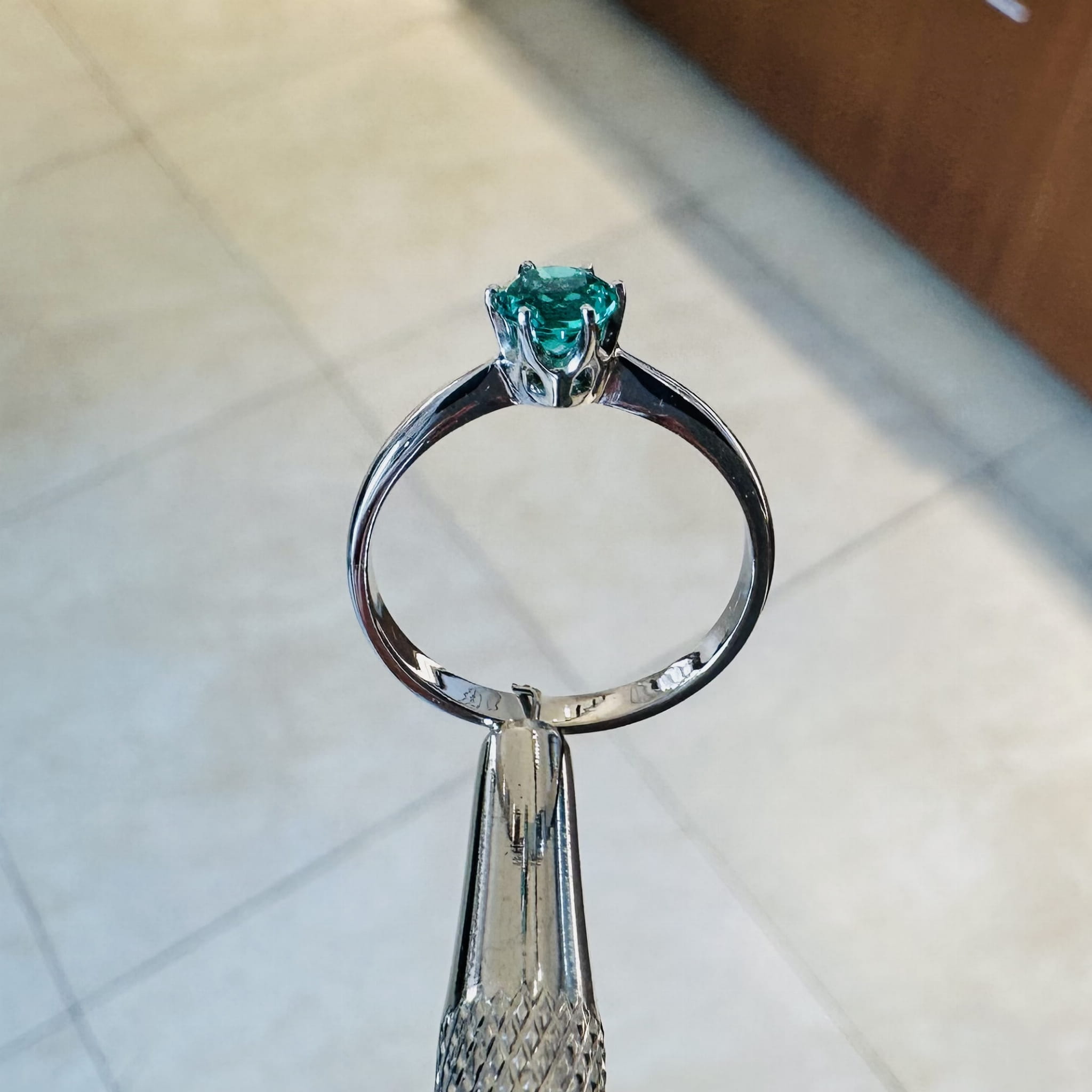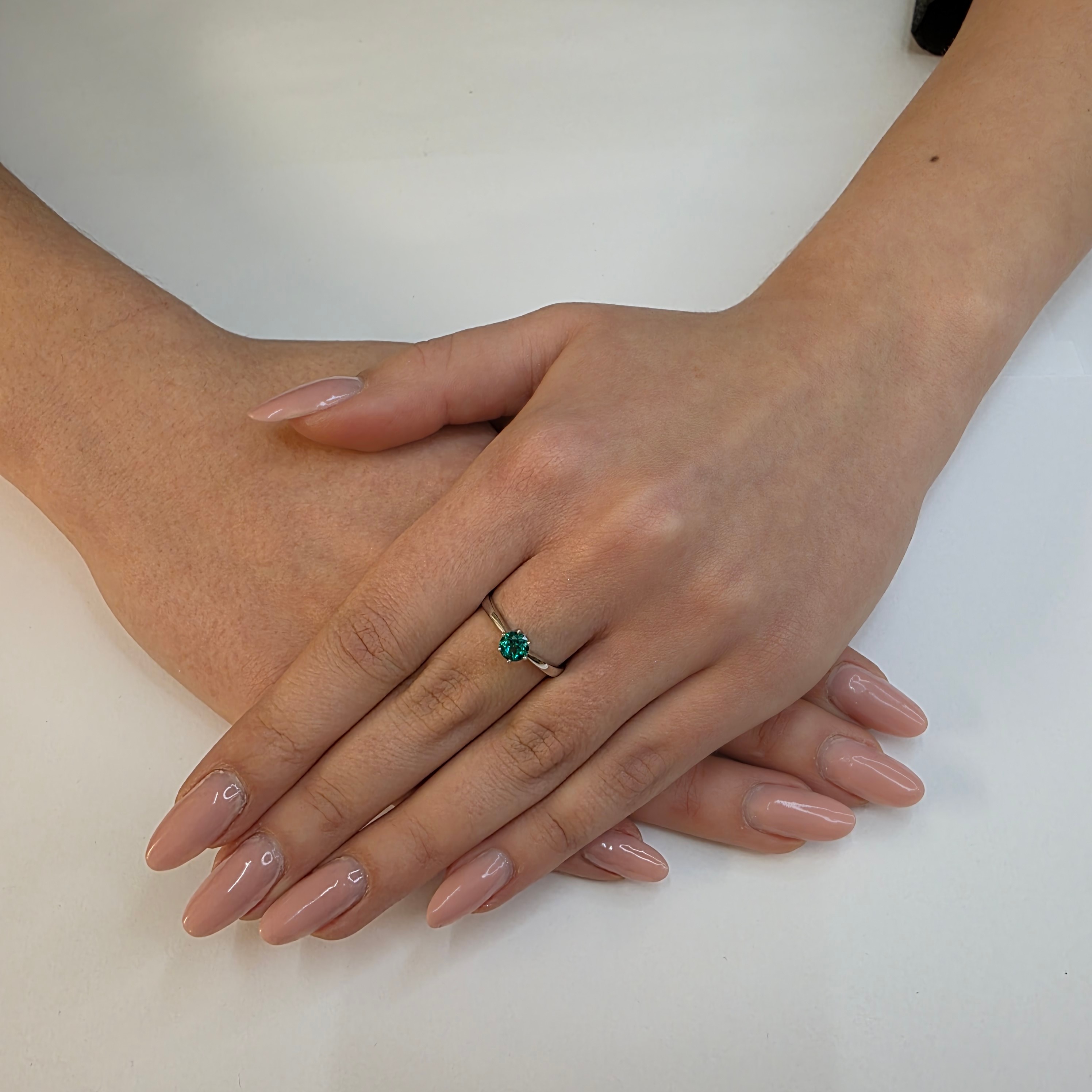 Białe złoto próby 585 idealnie kontrastuje z zielenią szmaragdu, podkreślając jego barwę i dodając pierścionkowi szlachetnej lekkości. To połączenie kolorów sprawia, że biżuteria prezentuje się niezwykle stylowo, a jednocześnie uniwersalnie — doskonale pasuje do wielu stylizacji i okazji.