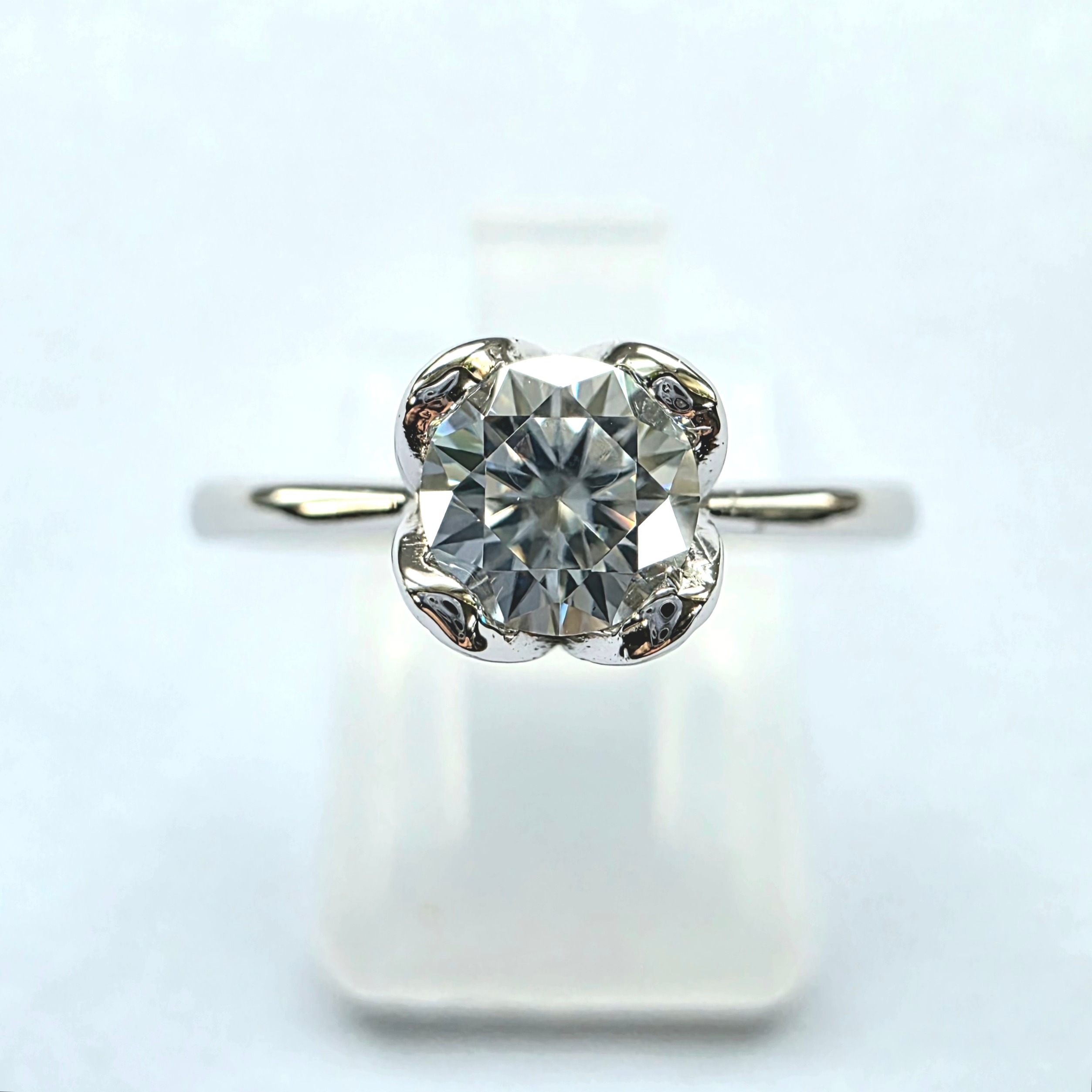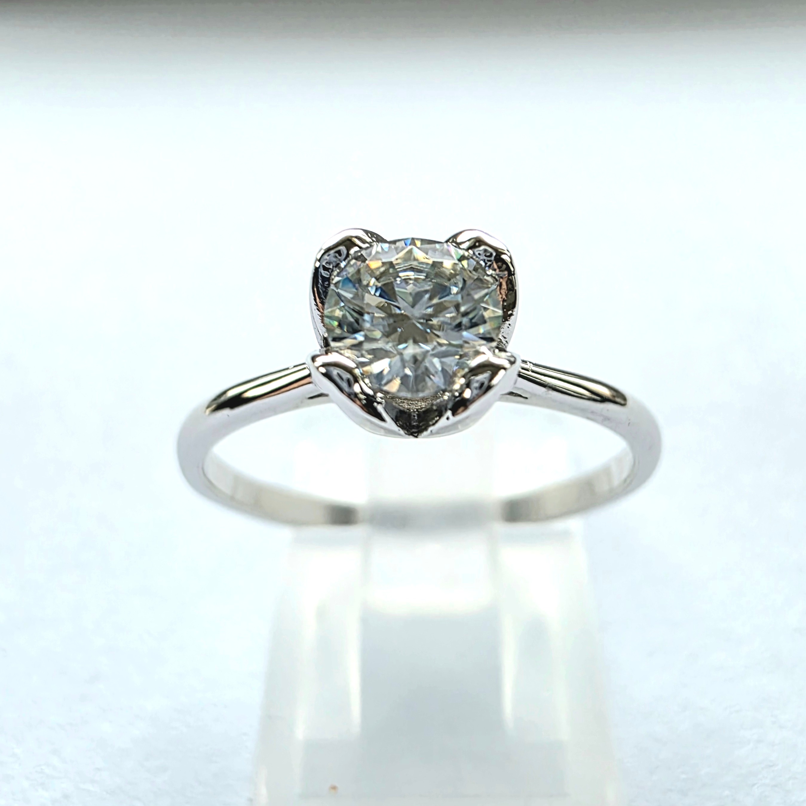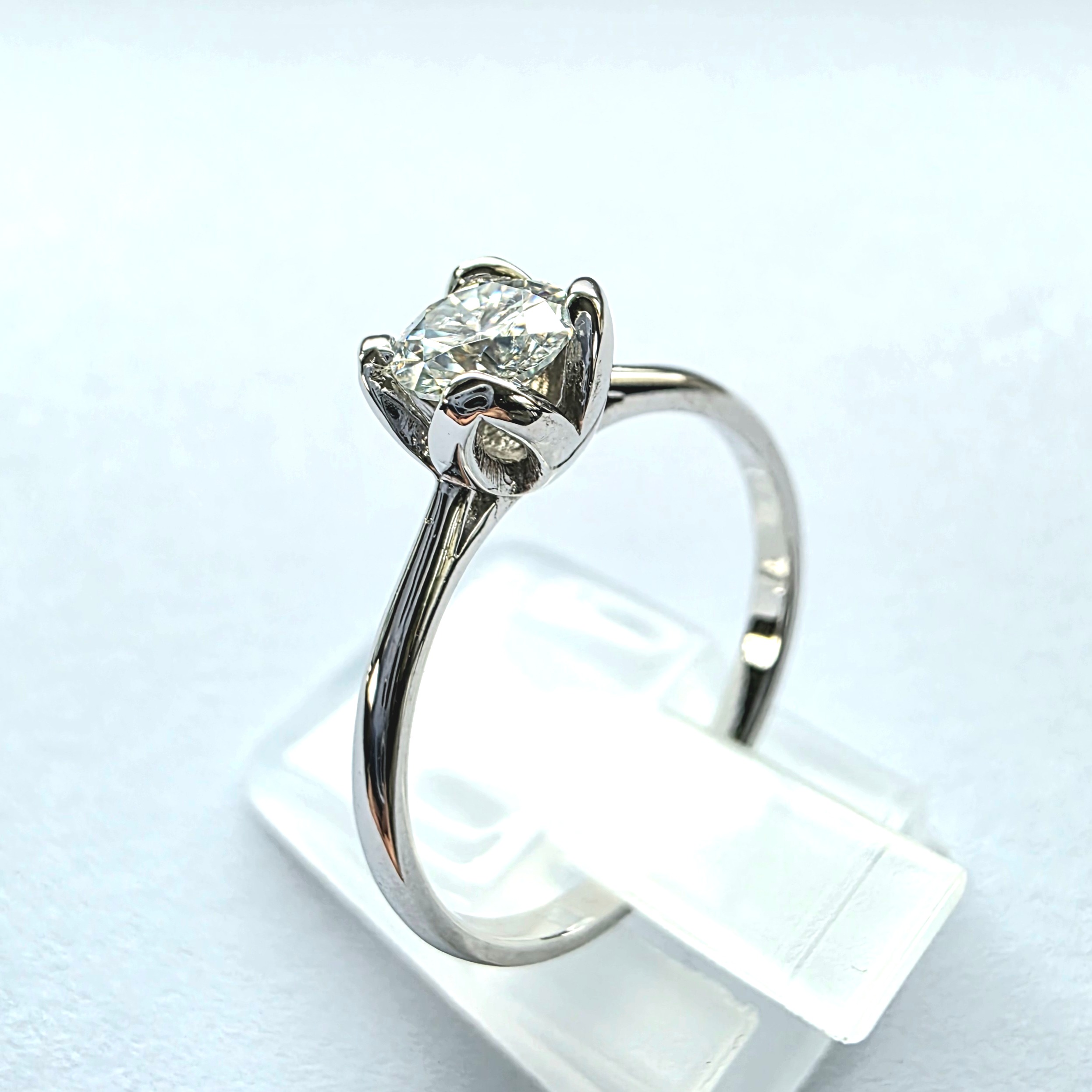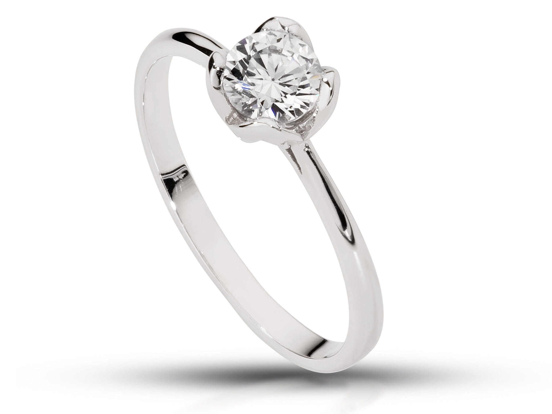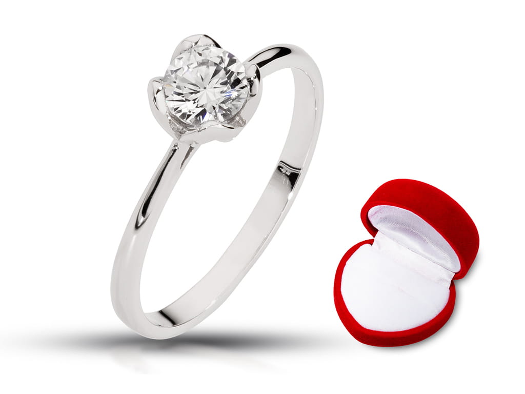 Oprawa inspirowana formą tulipana tworzy wokół diamentu harmonijną, kwiatową strukturę. Płatki otaczające kamień są estetyczne, ale także wyjątkowo funkcjonalne — doskonale chronią diament z każdej strony, co czyni ten model świetnym wyborem do codziennego użytkowania bez utraty elegancji.