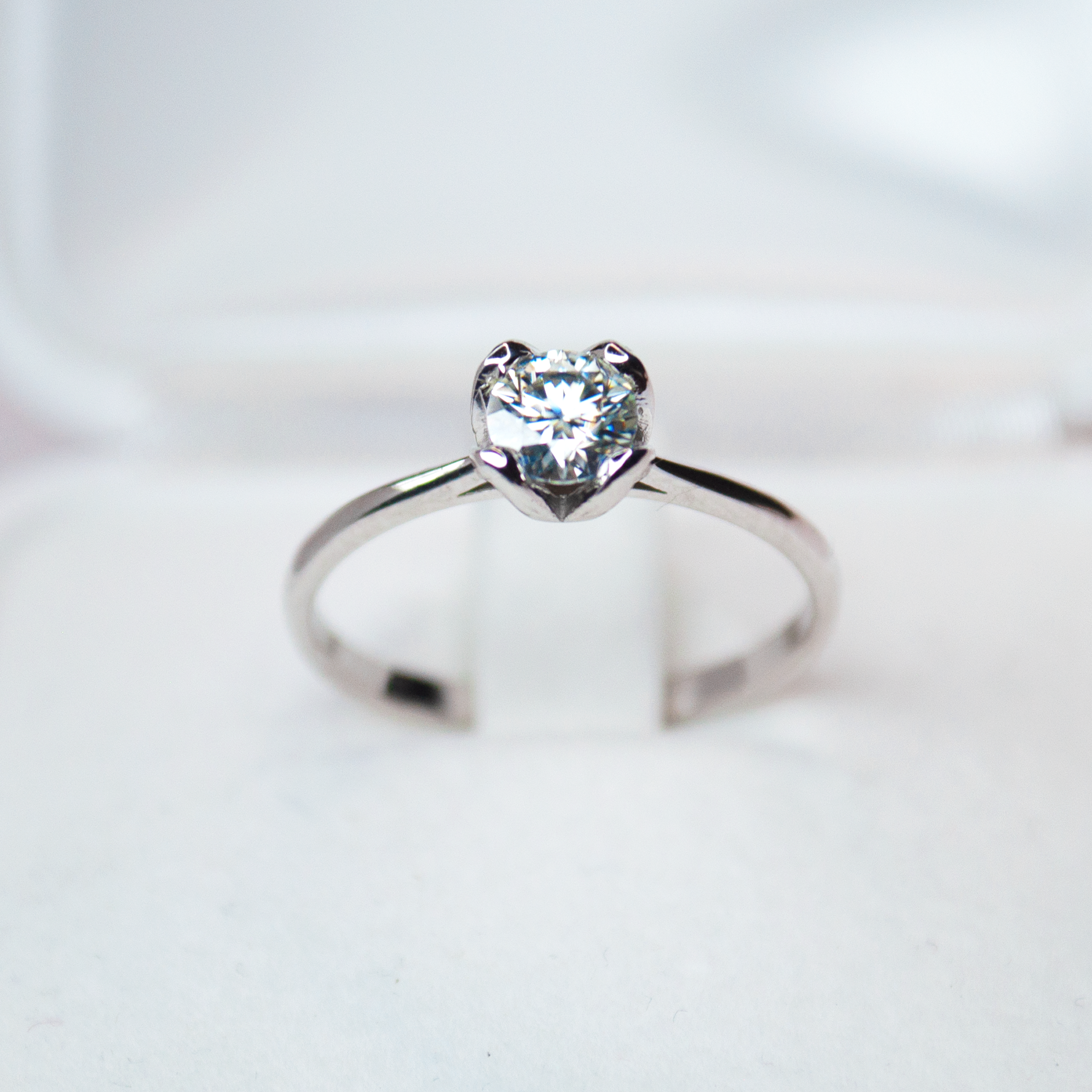 Pierścionek z naturalnym diamentem 0,50 ct – białe złoto 585 – tulipanowa oprawa – ABgold | Baczyński