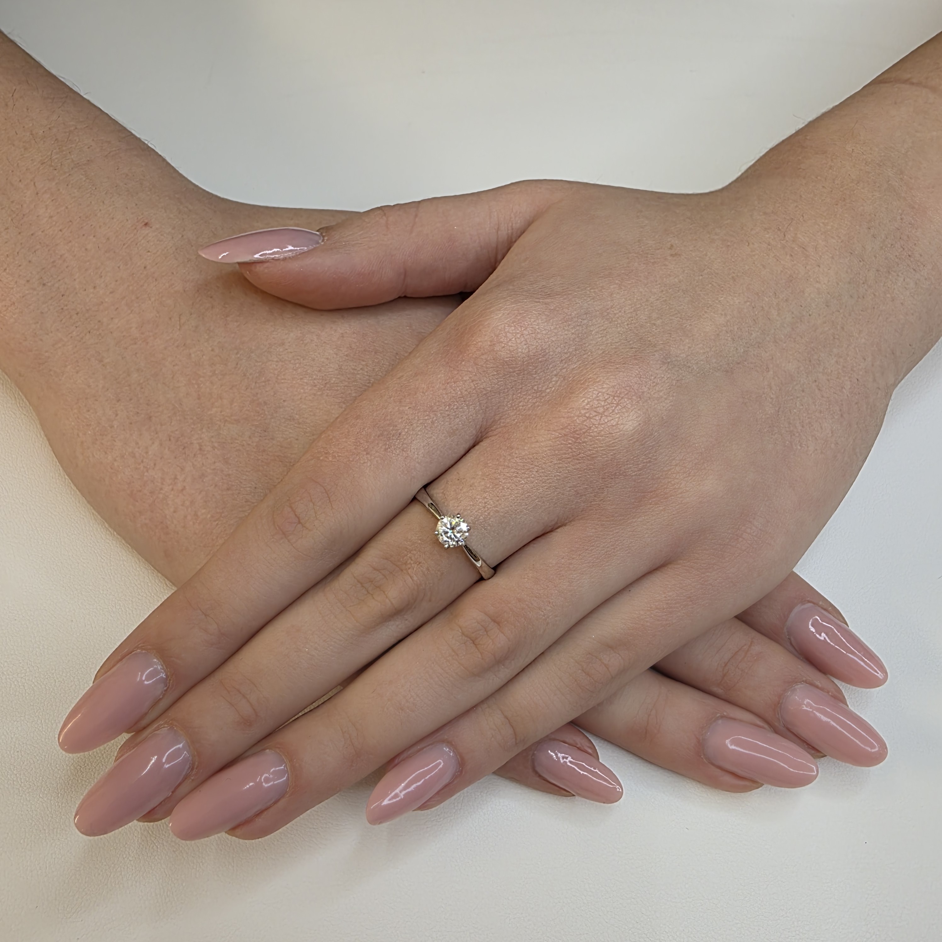 Ponadczasowy pierścionek z naturalnym diamentem 0,50 ct w oprawie 6-łapkowej – białe złoto 585 – ABgold | Baczyński