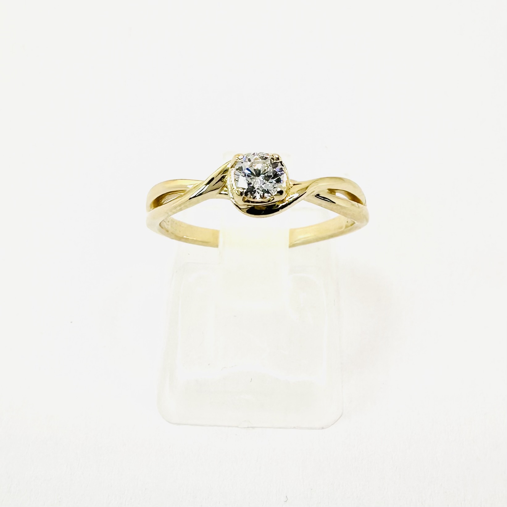 Wyjątkowy, artystyczny pierścionek wykonany z żółtego złota 585 (14K), ozdobiony naturalnym diamentem o masie ok. 0,25 ct i średnicy ok. 4,00 mm. Kamień dostępny jest w dwóch wariantach parametrów: VS/G lub Si/H. Model wyróżnia płynąca, subtelnie skręcona szyna, która oplata koronę z kamieniem, tworząc nowoczesną i dynamiczną formę. To idealna propozycja na zaręczyny, ale również wyjątkowy prezent dla siebie. Pierścionek powstał w naszej rodzinnej pracowni Baczyński z dbałością o każdy detal i proporcję.