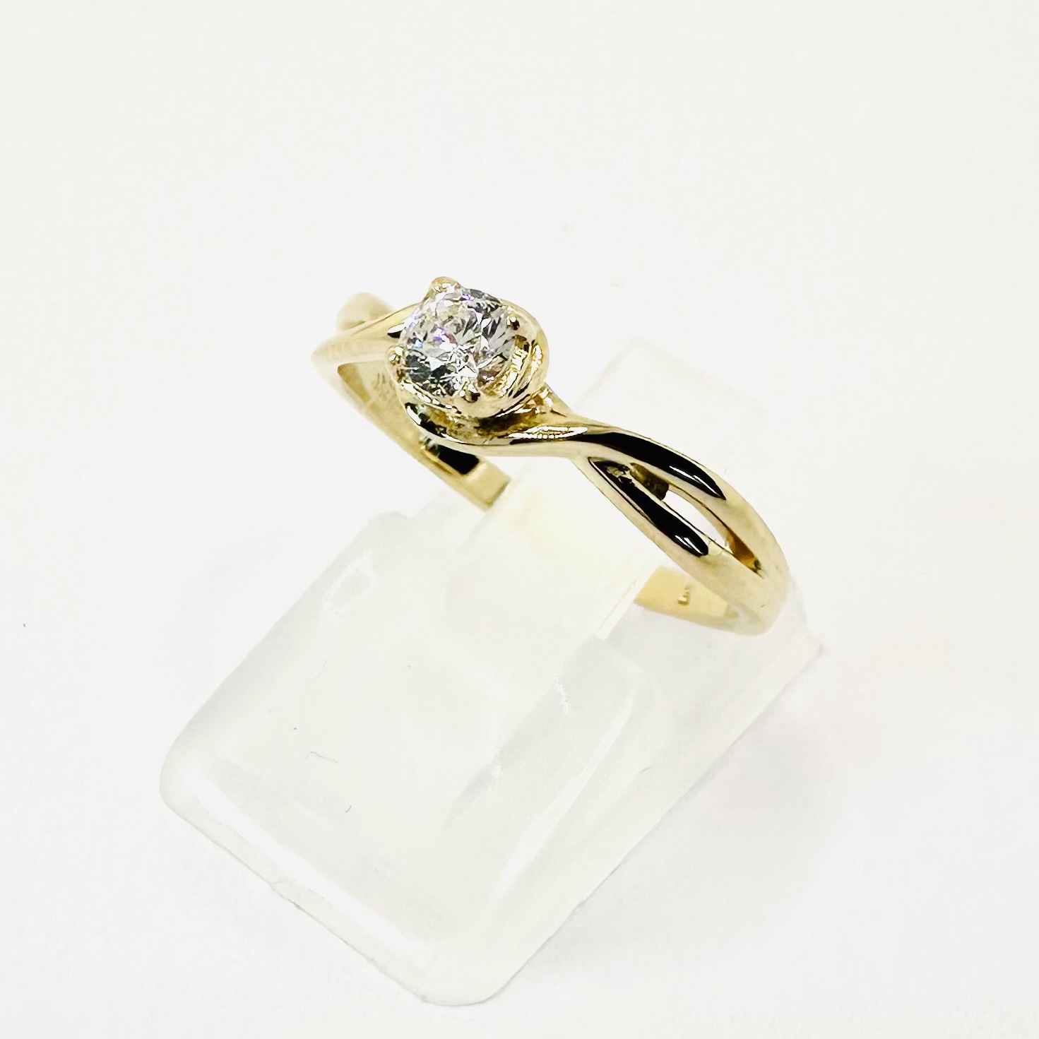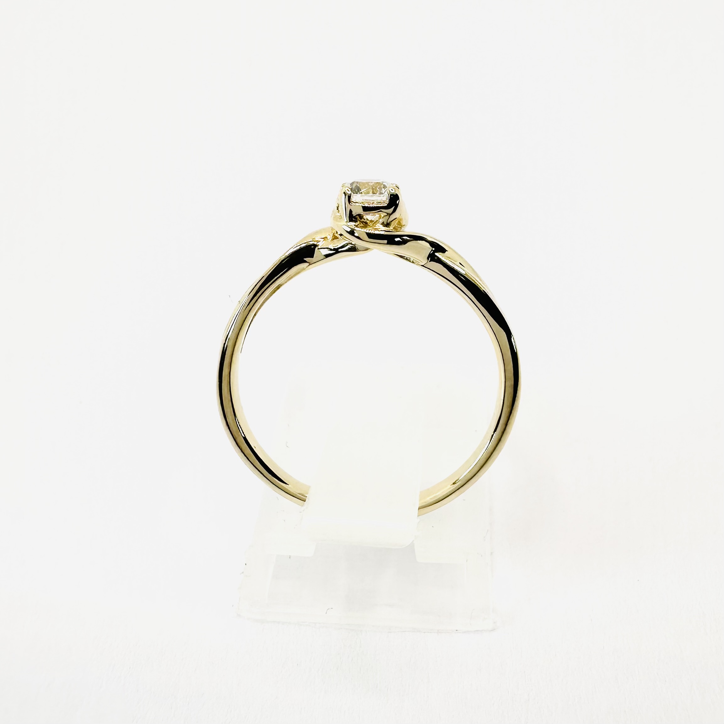 Pierścionek z naturalnym diamentem 0,25 ct – żółte złoto 585 – artystyczna „płynąca” szyna – ABgold | Baczyński