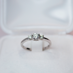 To pierścionek klasyczny, ale z nowoczesną nutą — dla osób, które preferują bardziej dekoracyjną oprawę. Połączenie trzech diamentów nadaje kompozycji dynamiki, a idealne proporcje sprawiają, że całość wygląda elegancko i harmonijnie. Model idealny na zaręczyny, a także jako prezent dla siebie.