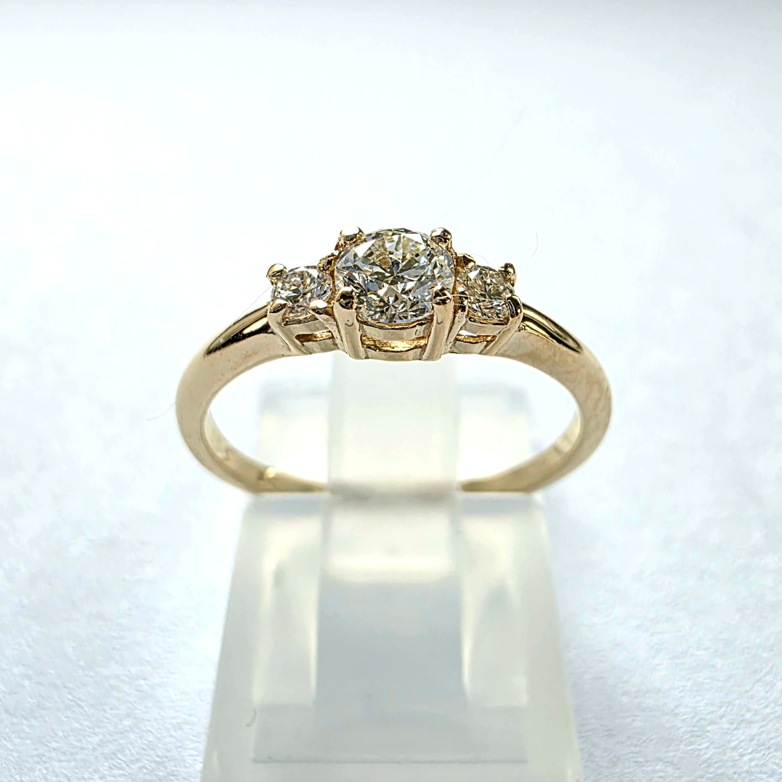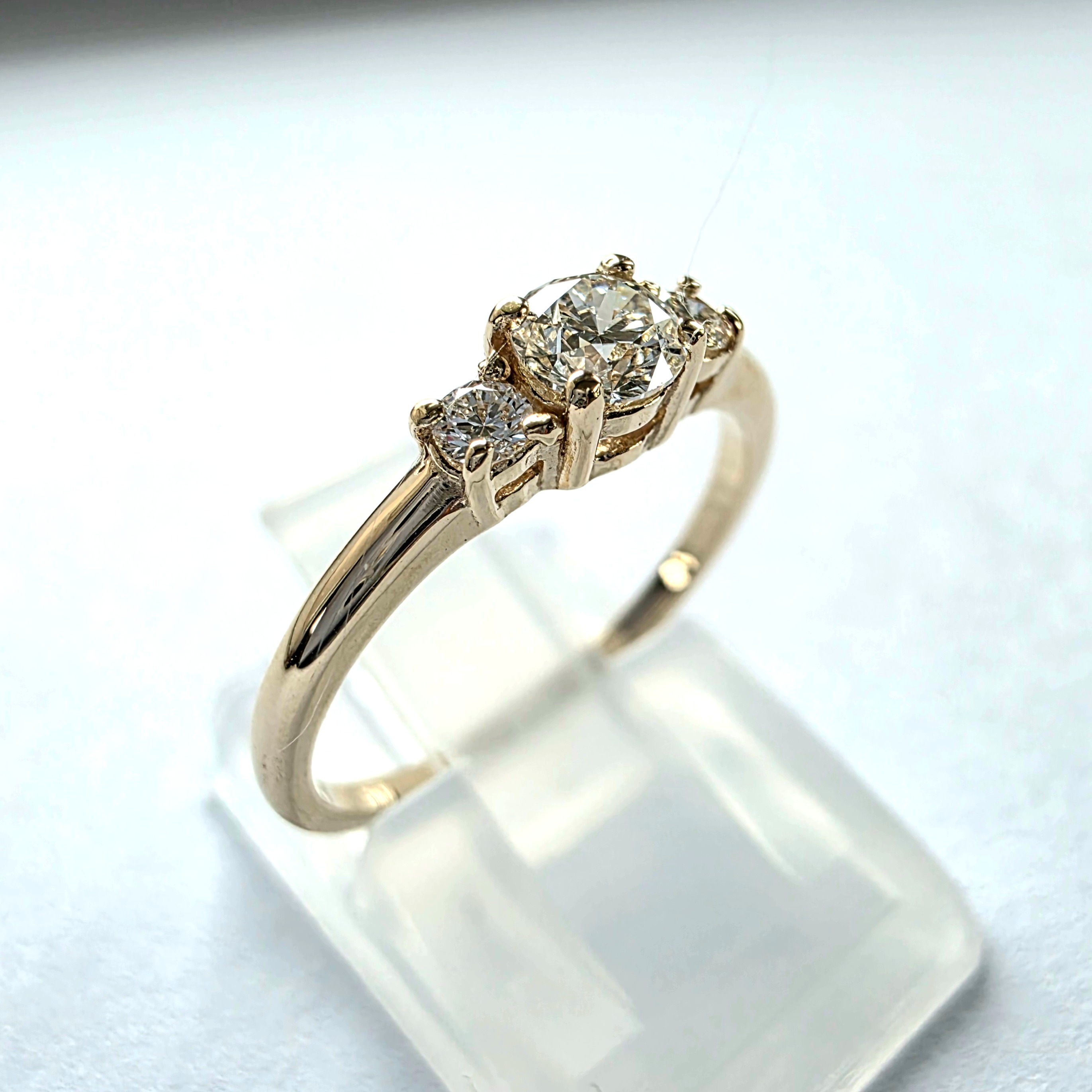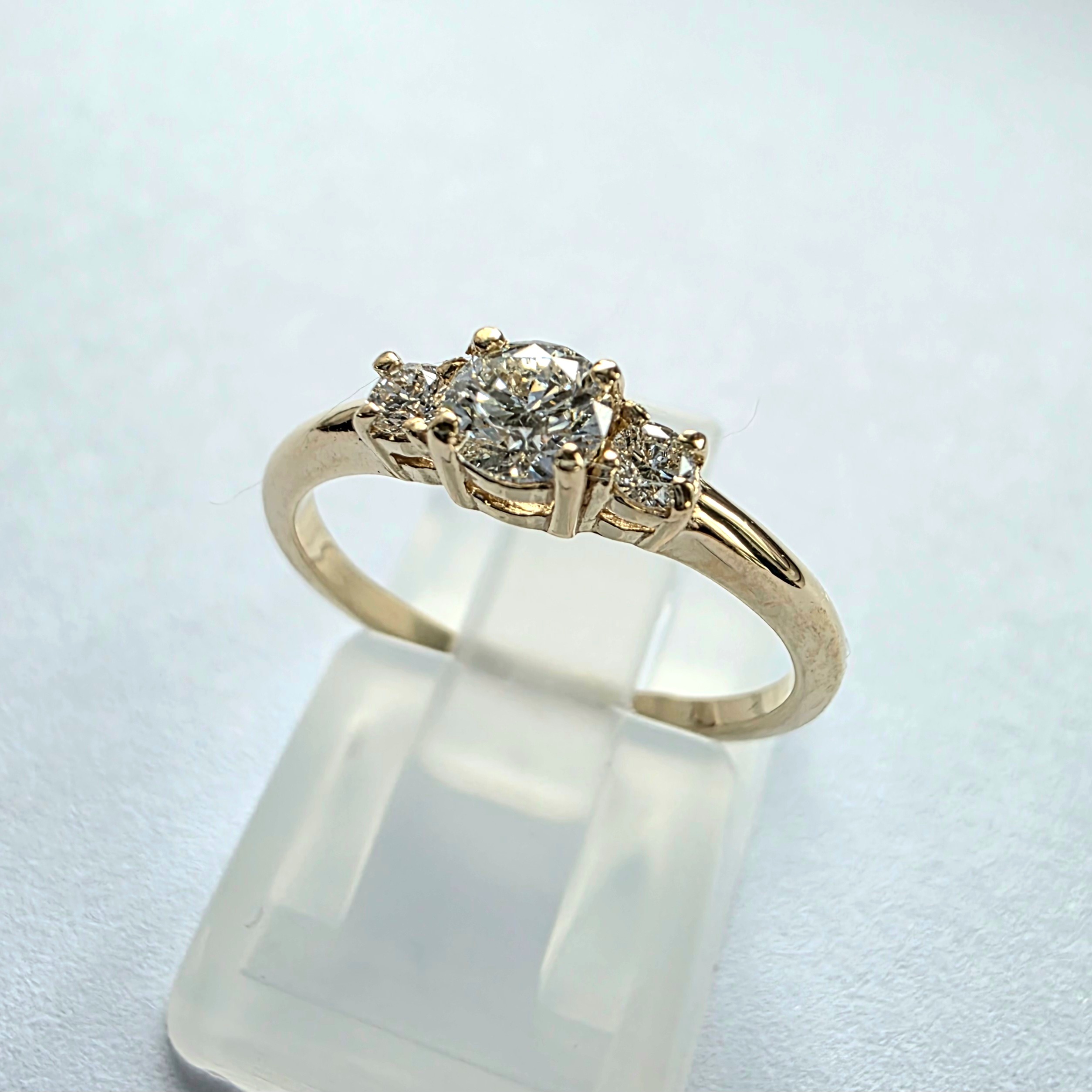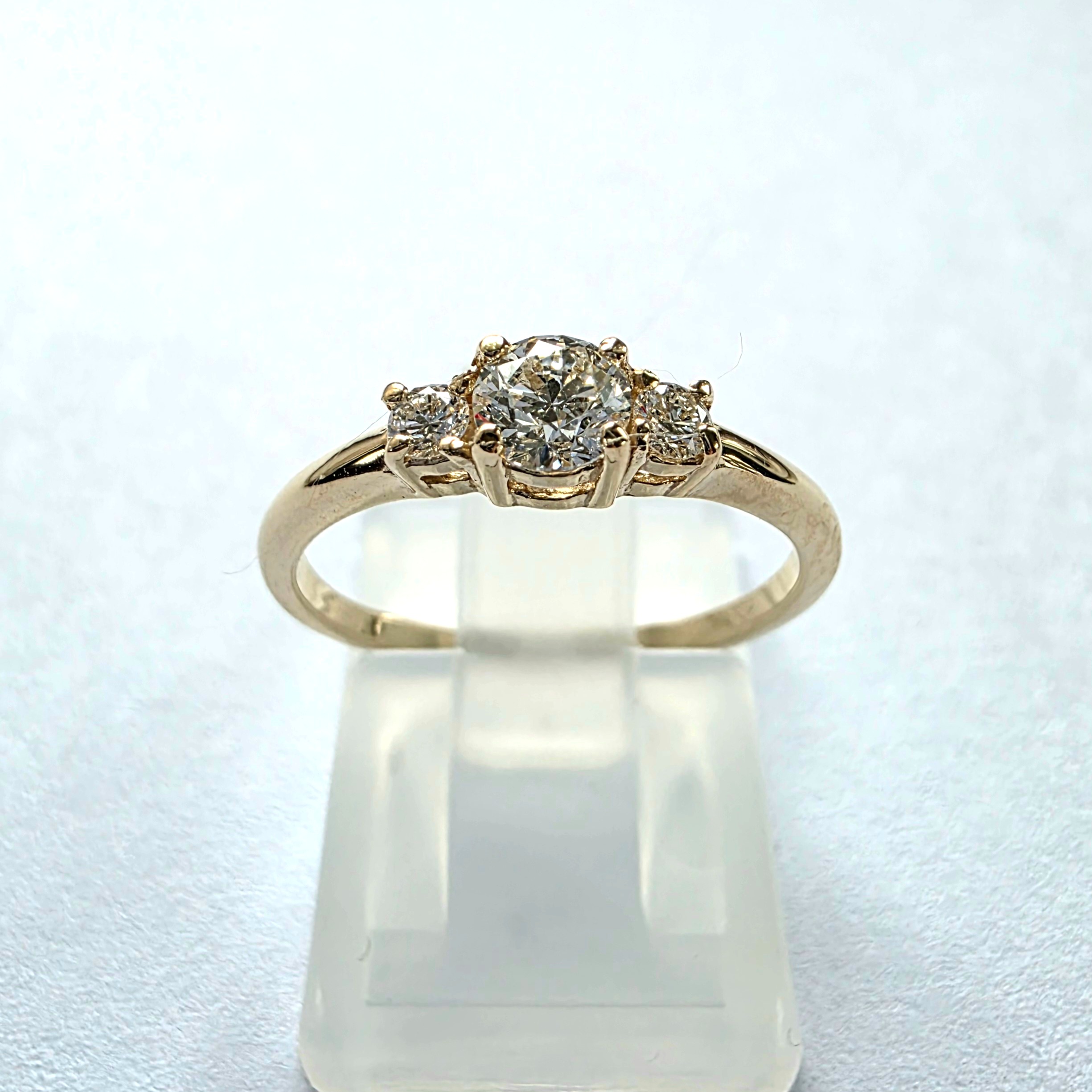 Elegancki pierścionek zaręczynowy wykonany z żółtego złota próby 585 (14K), ozdobiony kompozycją brylantów w okrągłym szlifie. Klasyczna forma, harmonijne proporcje oraz subtelny blask kamieni sprawiają, że jest to biżuteria ponadczasowa i pełna elegancji.
