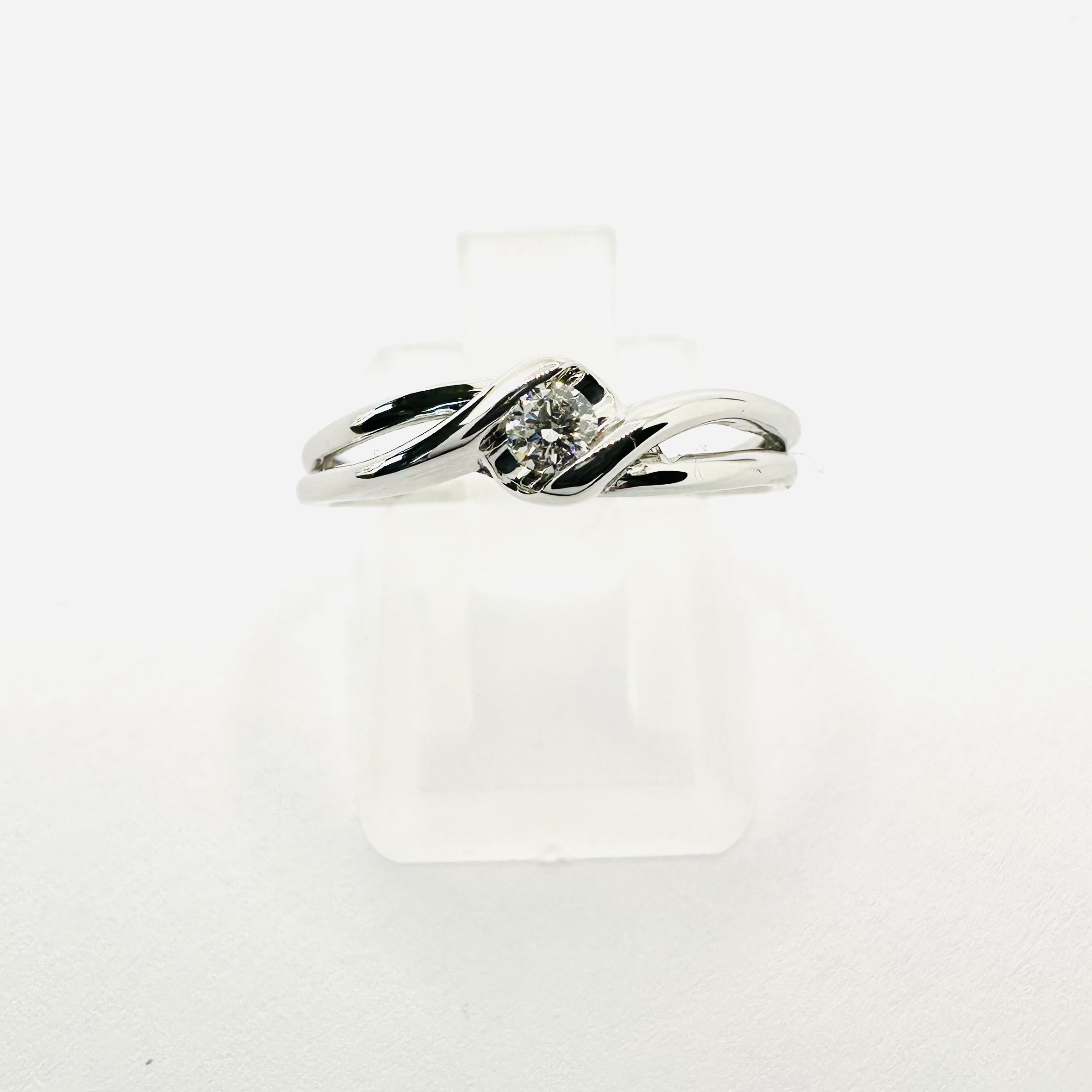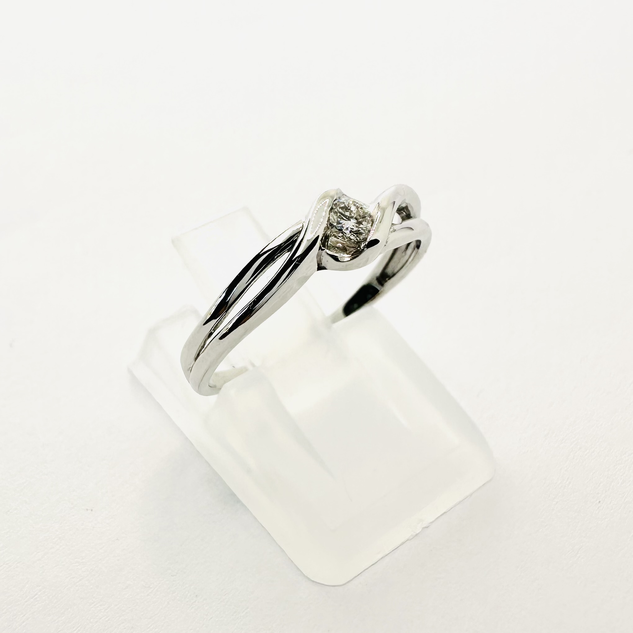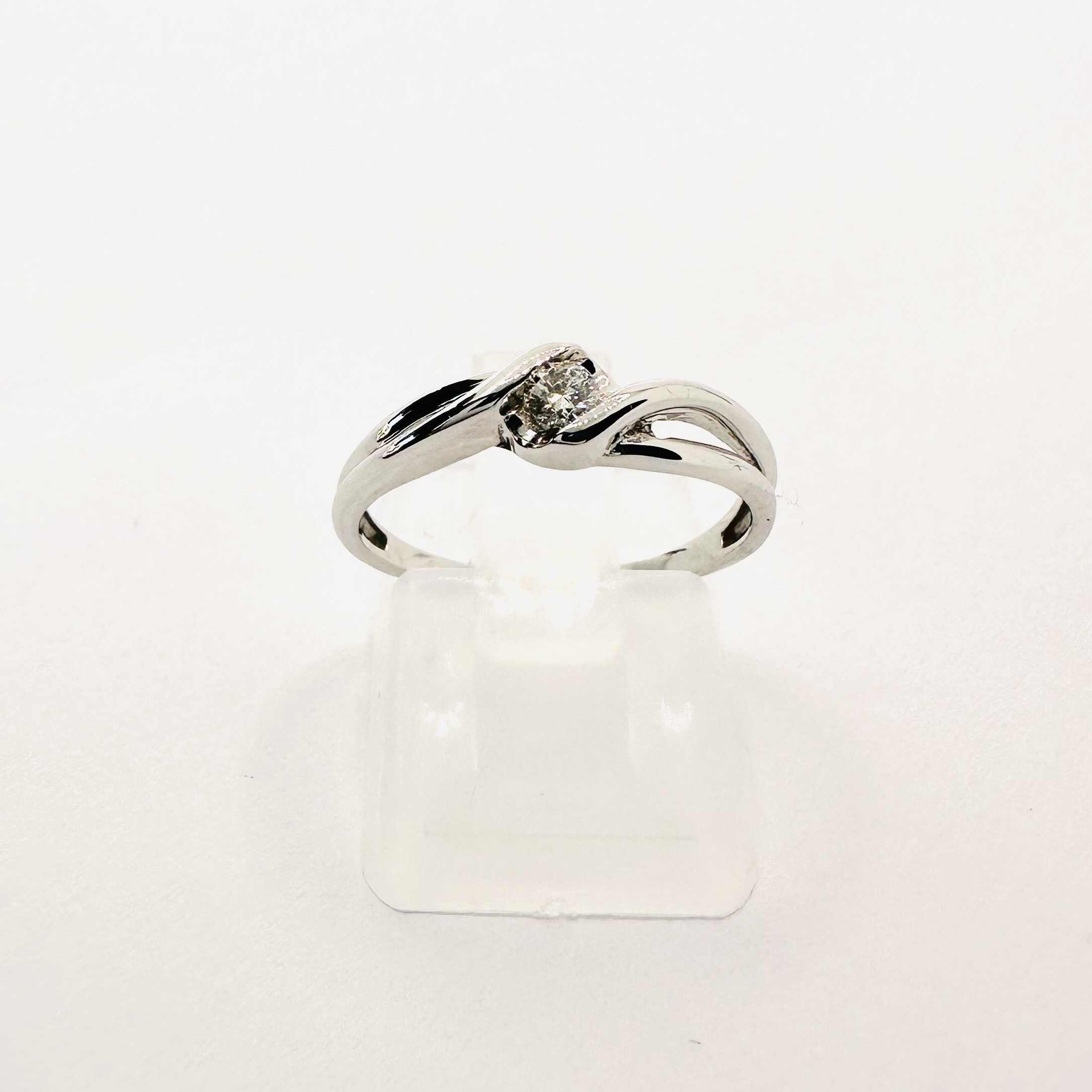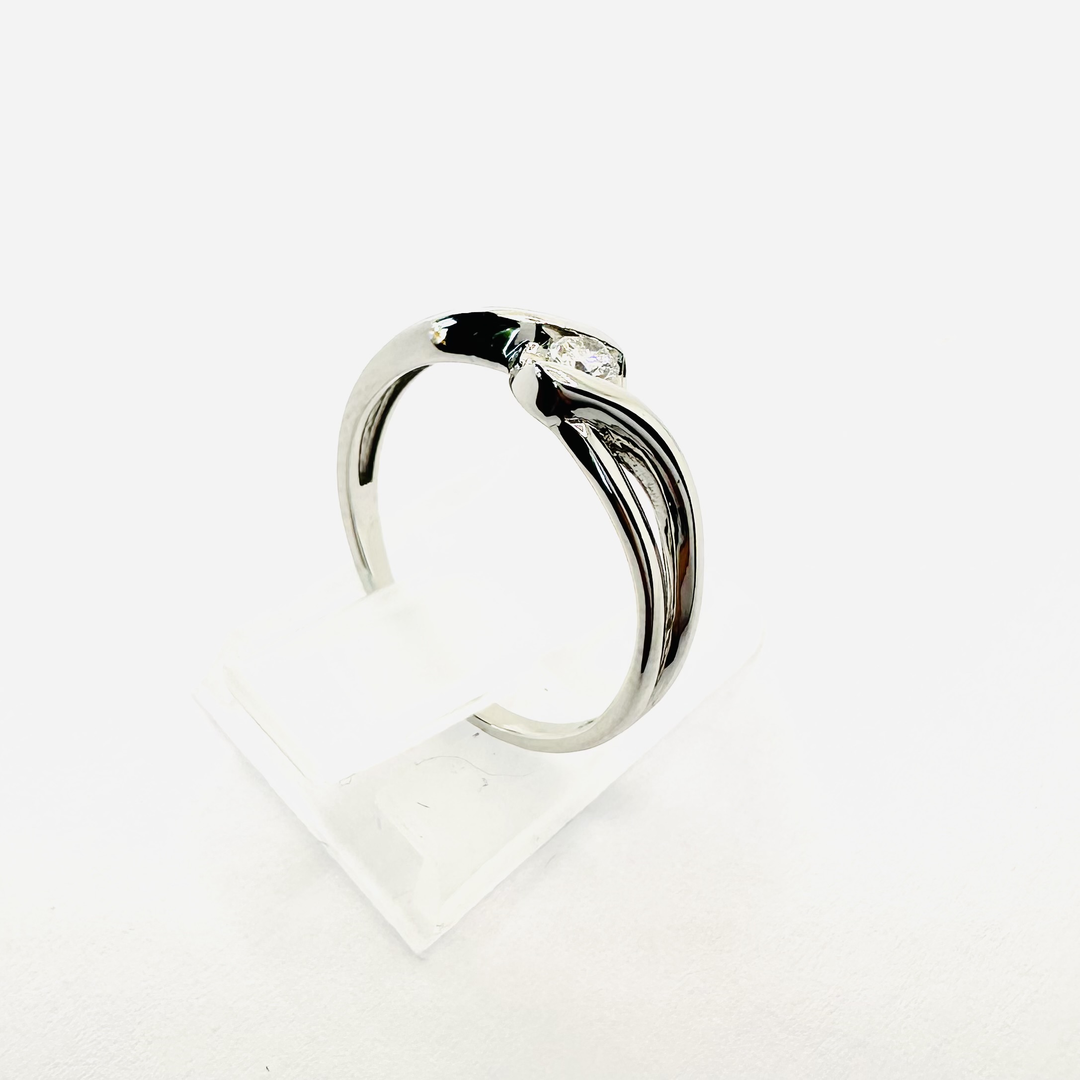 Pierścionek z diamentem 0,08 ct – białe złoto 585 – fala z oprawą w pełni zintegrowaną z szyną – ABgold | Baczyński