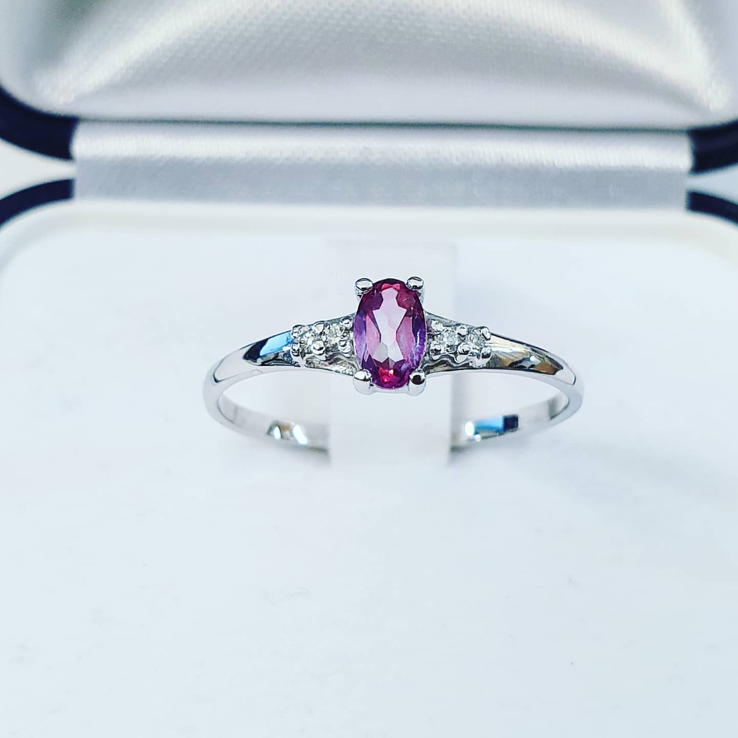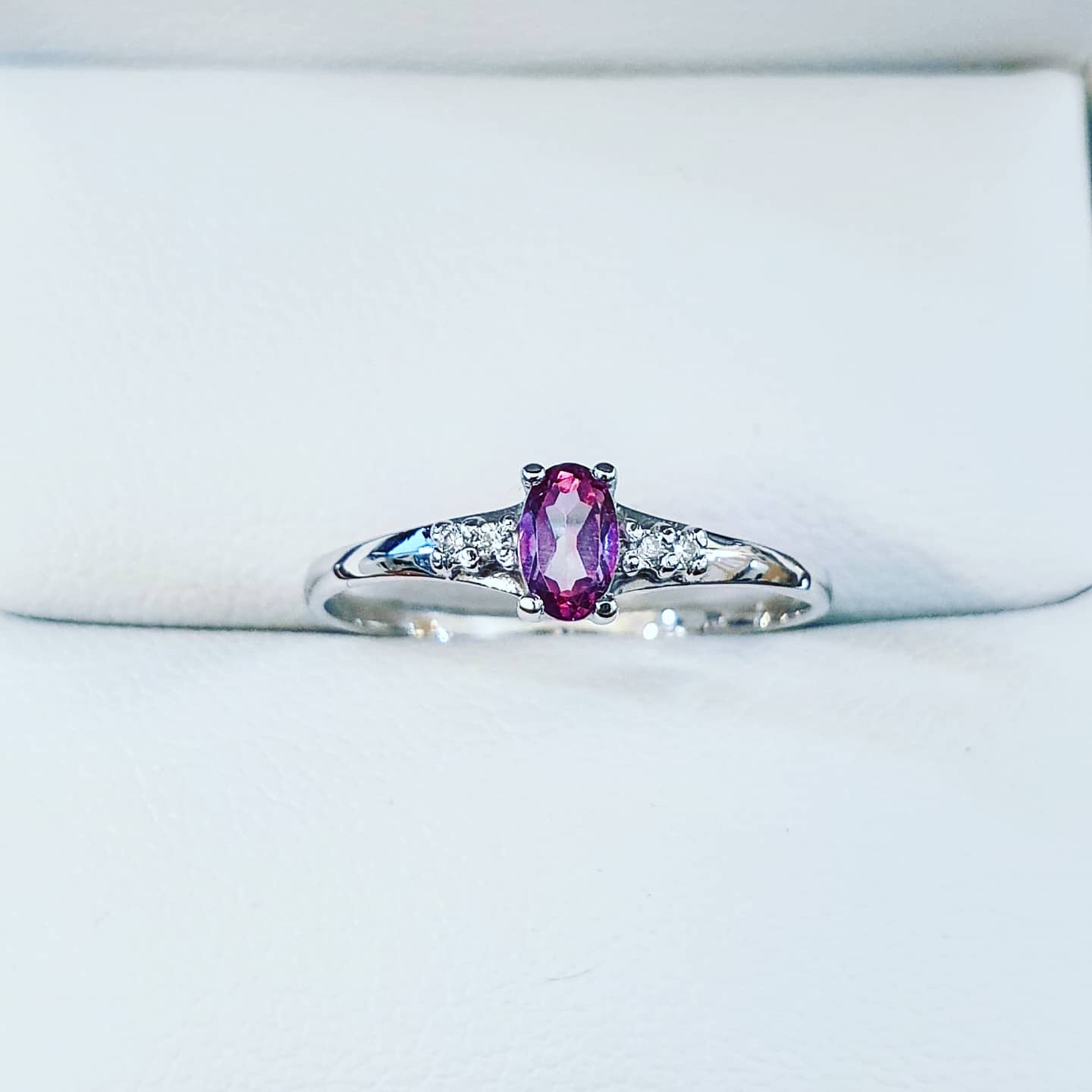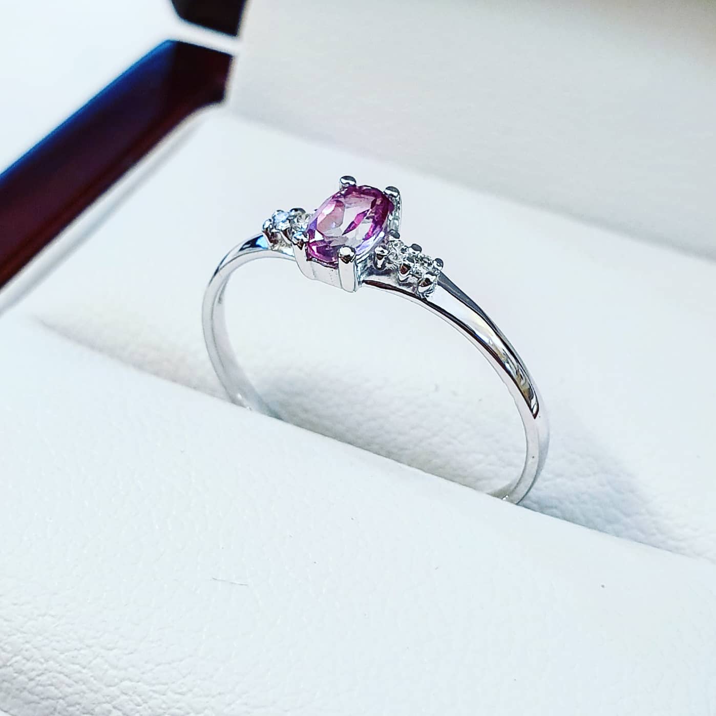 Pierścionek zaręczynowy z diamentami i różowym topazem