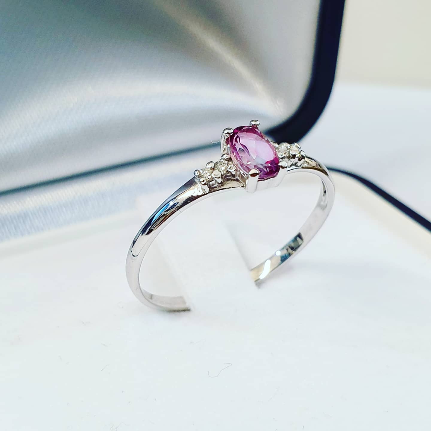Pierścionek zaręczynowy 585 z różowym topazem i diamentami – ABgold Baczyński