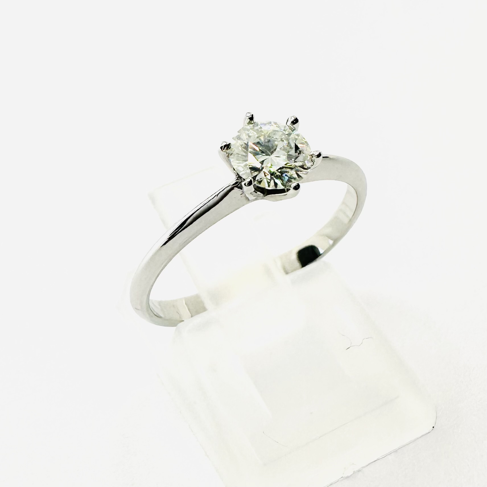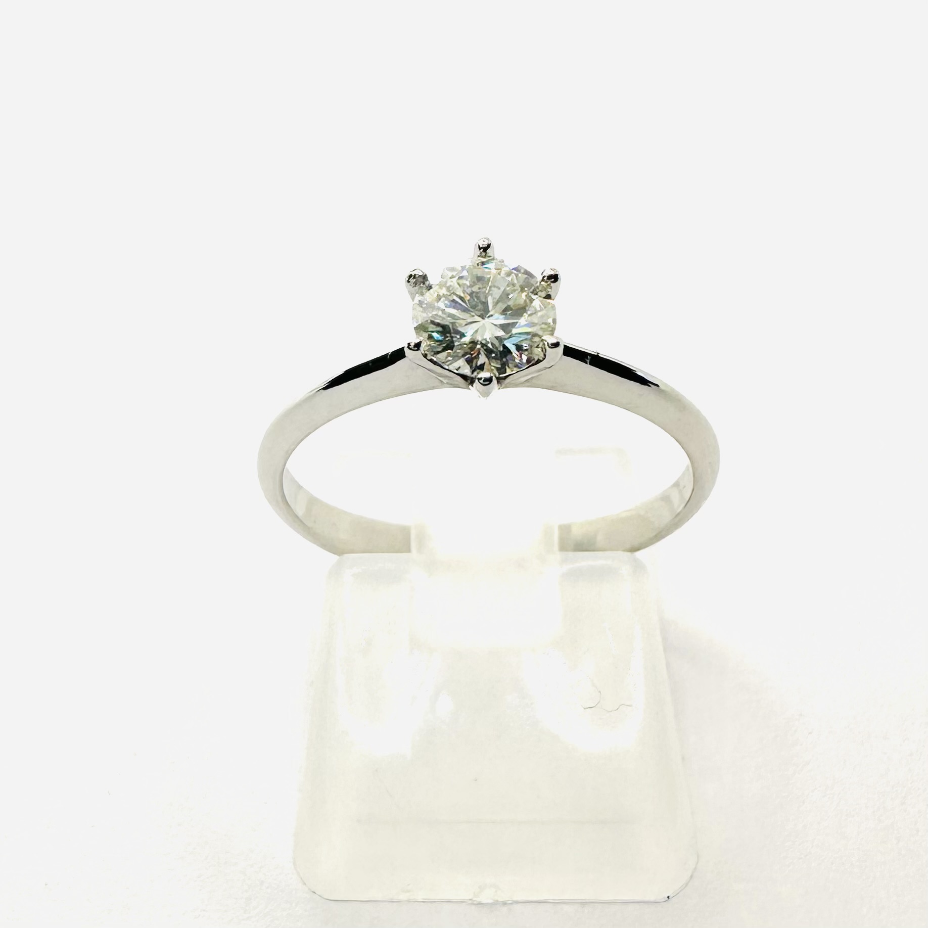 Białe złoto 585 nadaje projektowi luksusowej świeżości i czystej, nowoczesnej estetyki. Jego jasny odcień pięknie podkreśla blask diamentu VS1/E, tworząc elegancką, harmonijną kompozycję o prestiżowym charakterze.