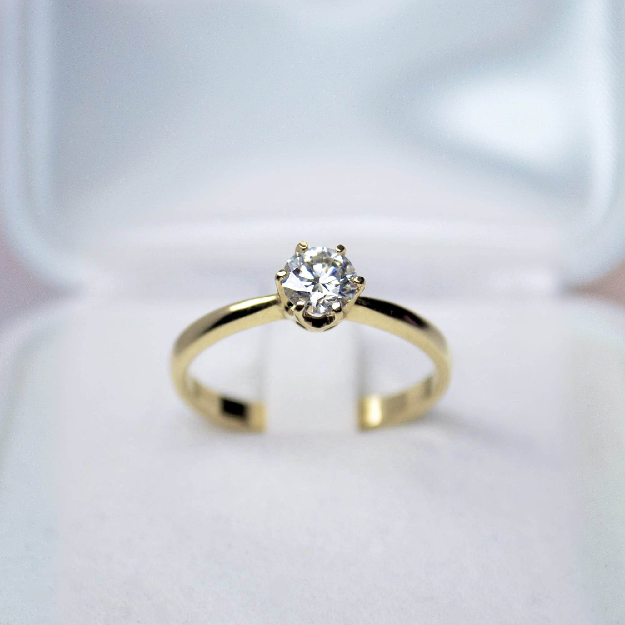 Pierścionek z moissanitem 0,50 ct – żółte złoto 585 – ponadczasowa klasyka z wyeksponowanym kamieniem – ABgold | Baczyński