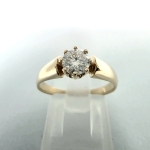 Klasyczny i wygodny w codziennym noszeniu pierścionek wykonany z żółtego złota 585 (14K), ozdobiony brylantowym moissanitem VS1/E o średnicy około 5,0 mm i masie ok. 0,50 ct. Charakterystyczną cechą tego modelu jest korona niemal całkowicie schowana w linii szyny, co zapewnia wyjątkowy komfort, praktyczność i ponadczasowy, minimalistyczny wygląd.