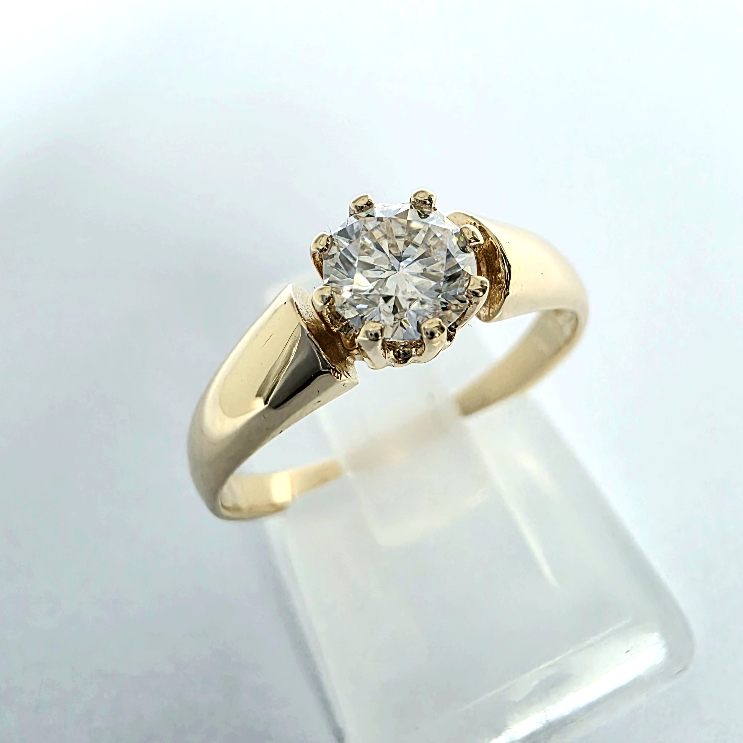 Klasyczny pierścionek z moissanitem 0,50 ct – żółte złoto 585 – korona schowana w szynie – ABgold | Baczyński