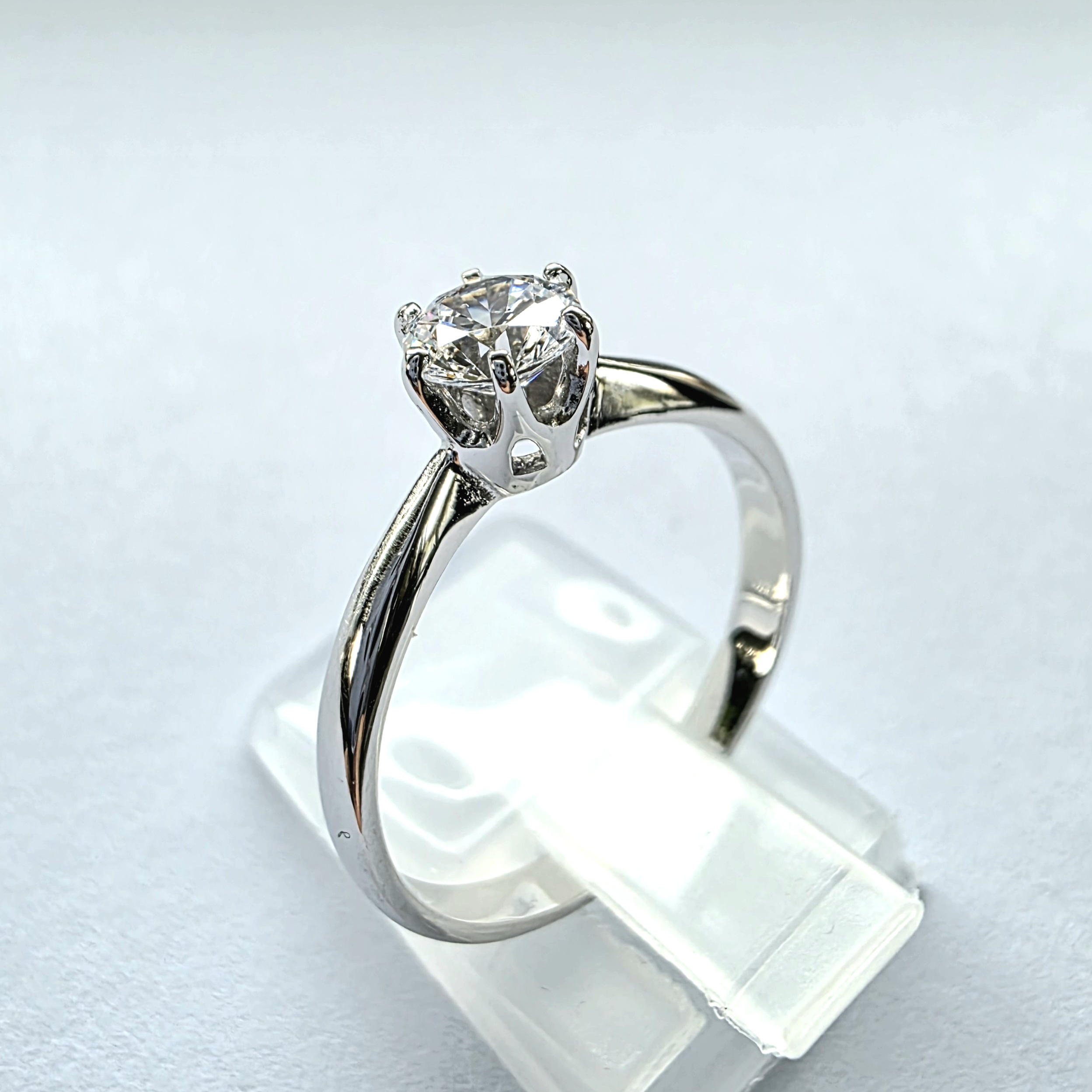 Pierścionek klasyczny z moissanitem 0,50 ct – białe złoto 585 – ponadczasowy i trwały – ABgold | Baczyński