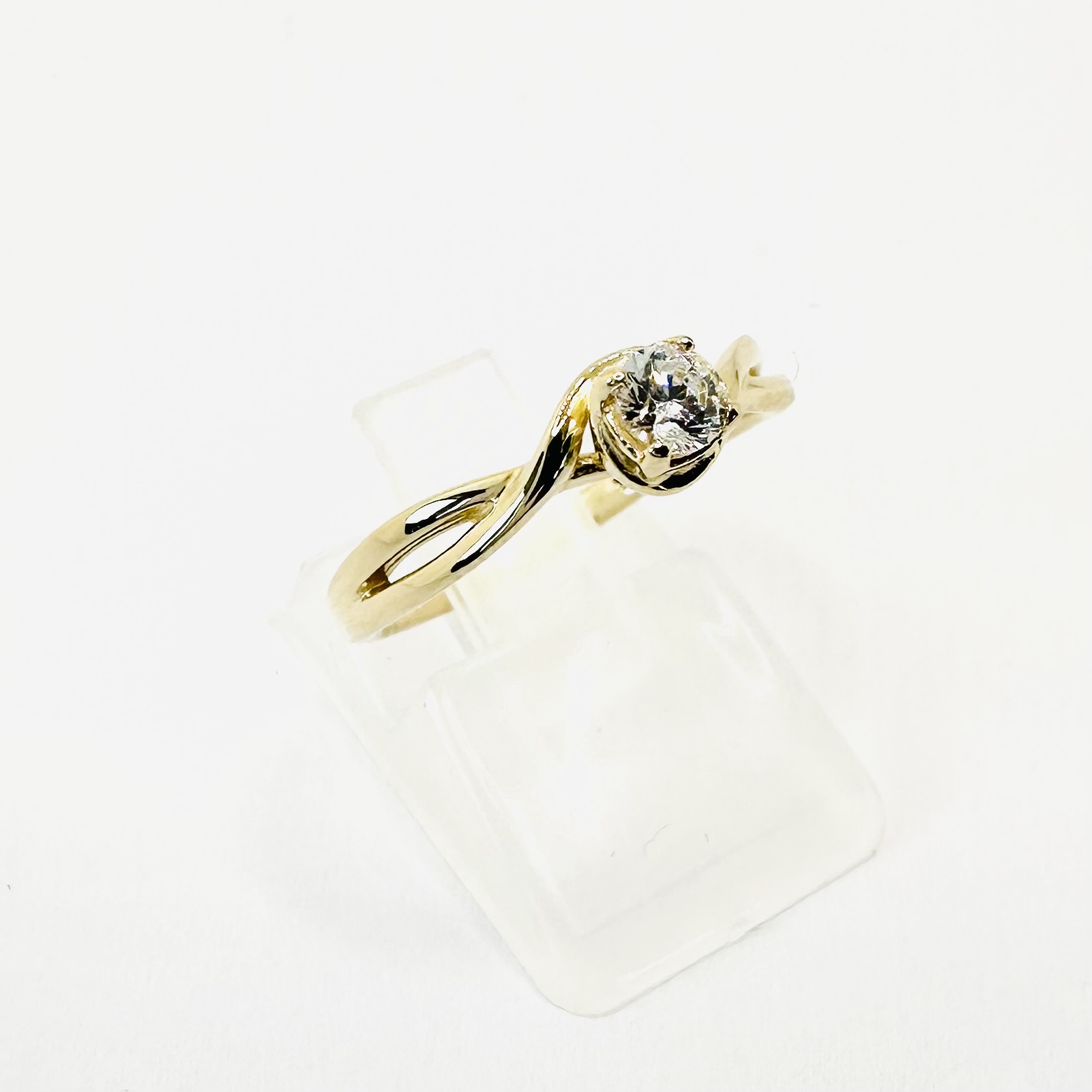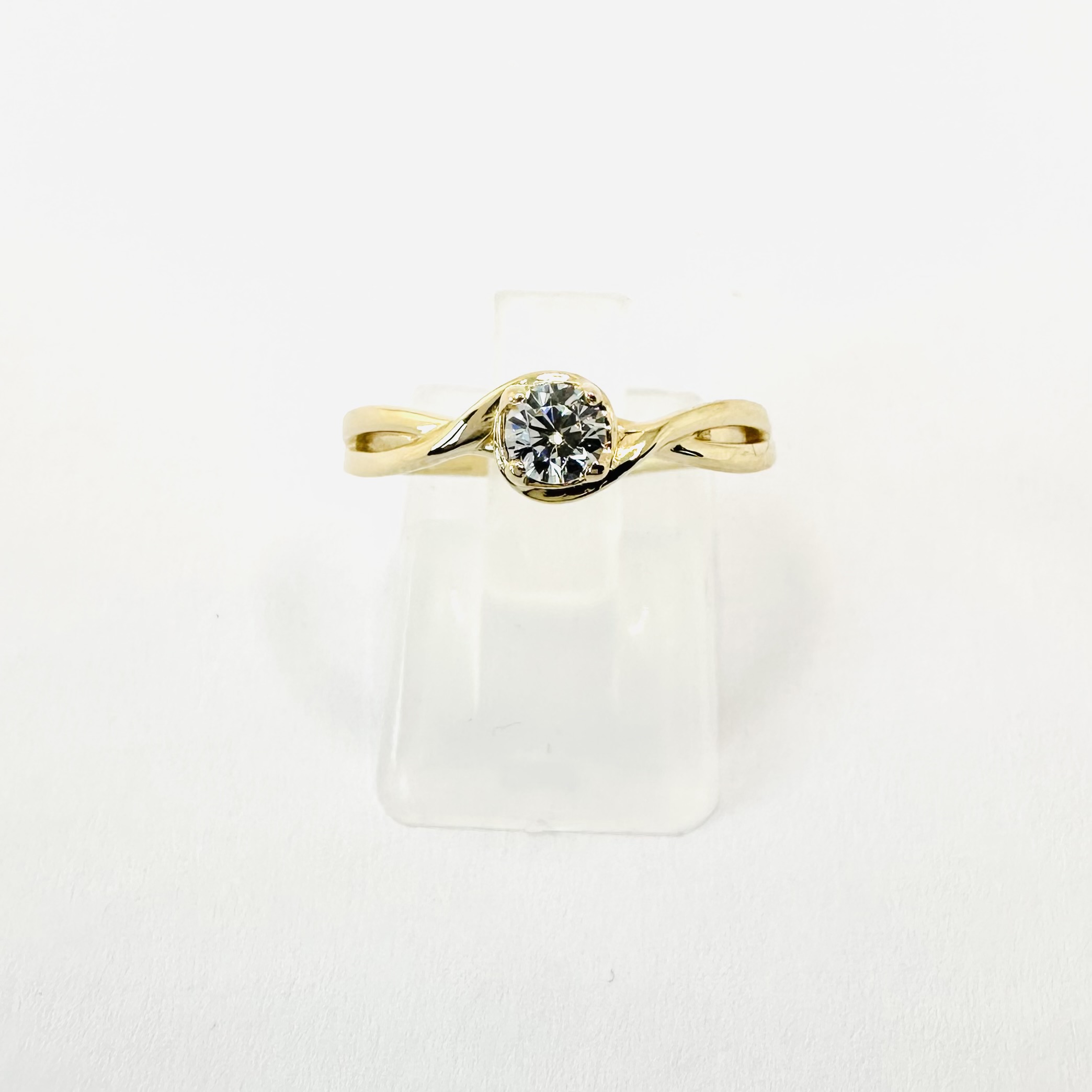 Pierścionek z moissanitem 0,25 ct – finezyjna wijąca się szyna – żółte złoto 585 – ABgold | Baczyński