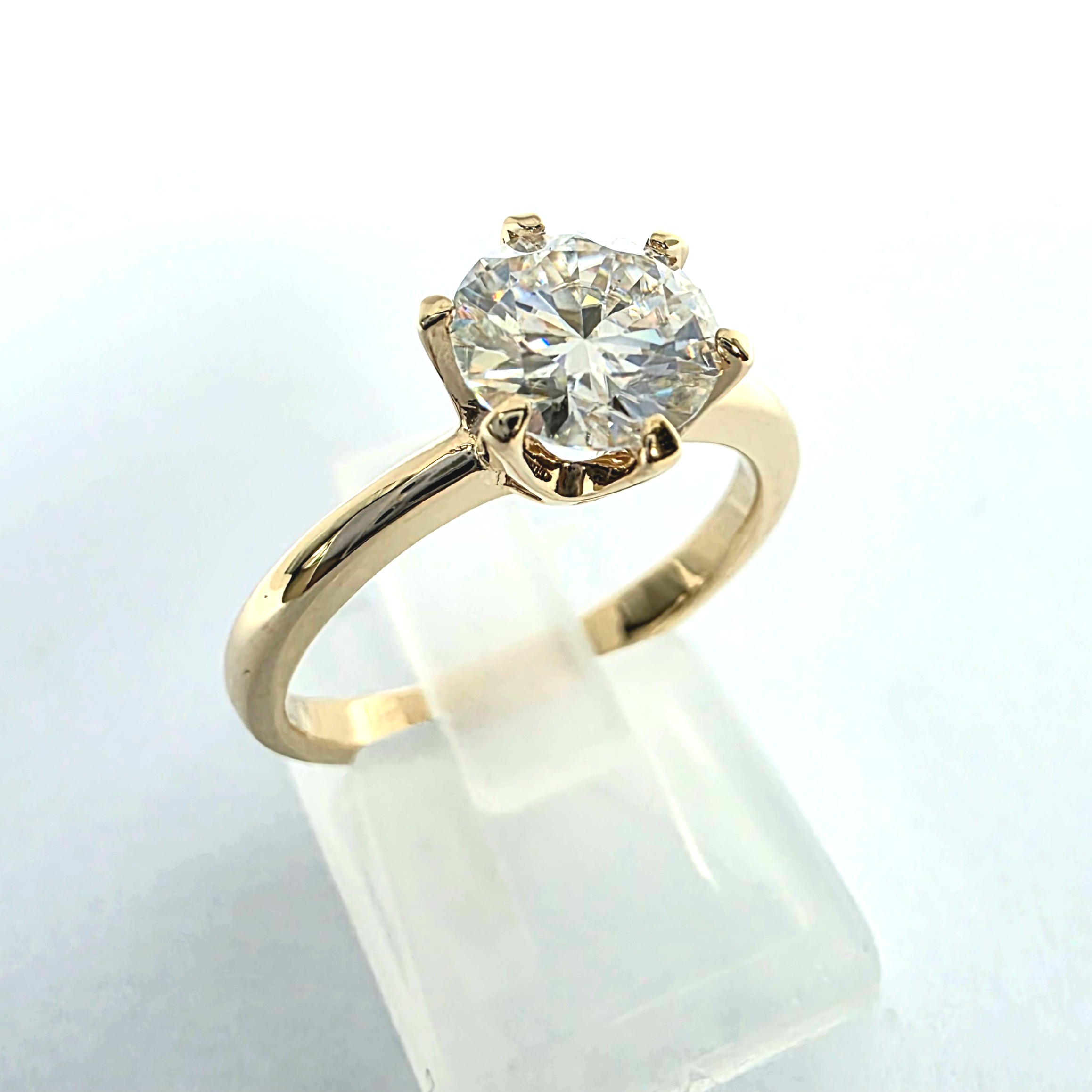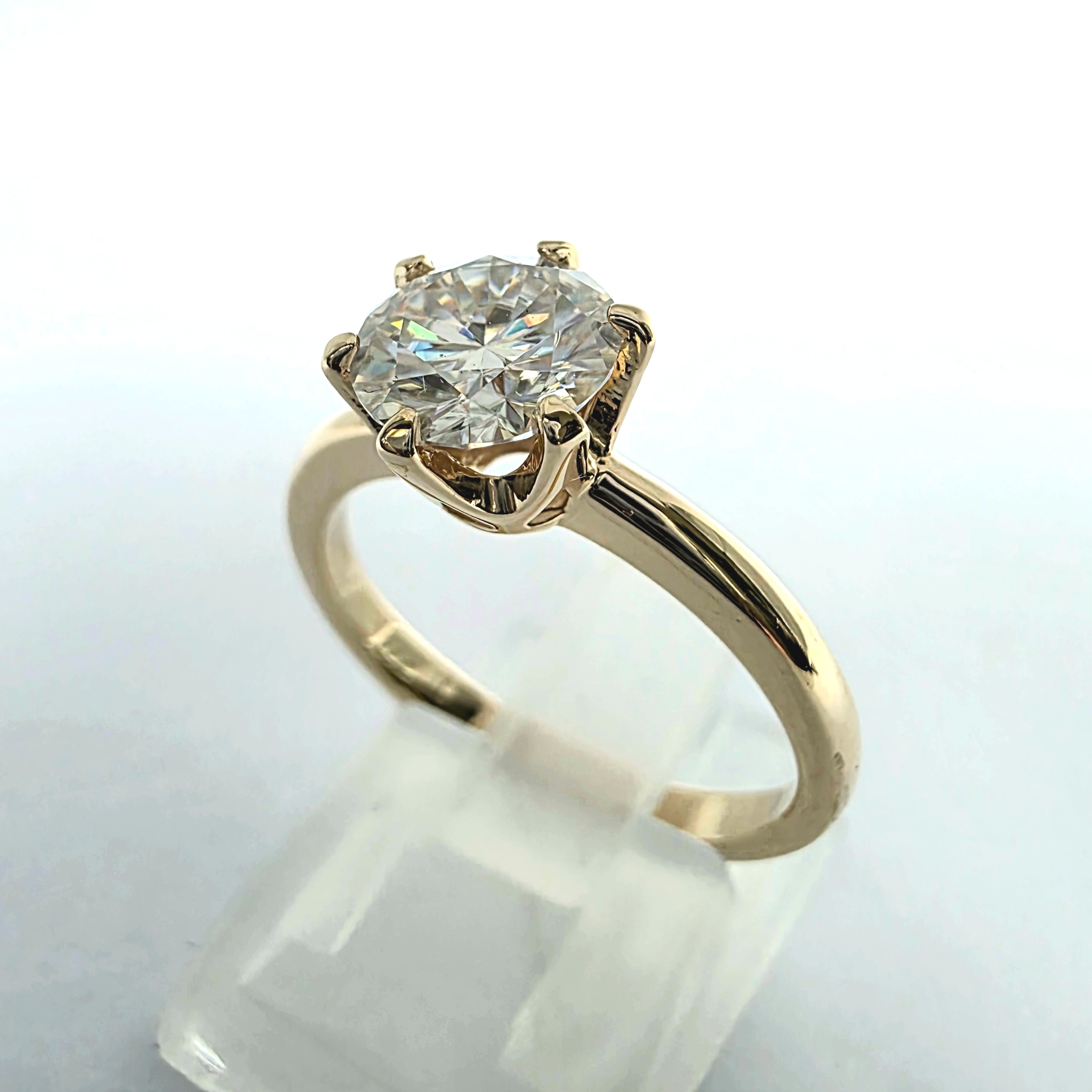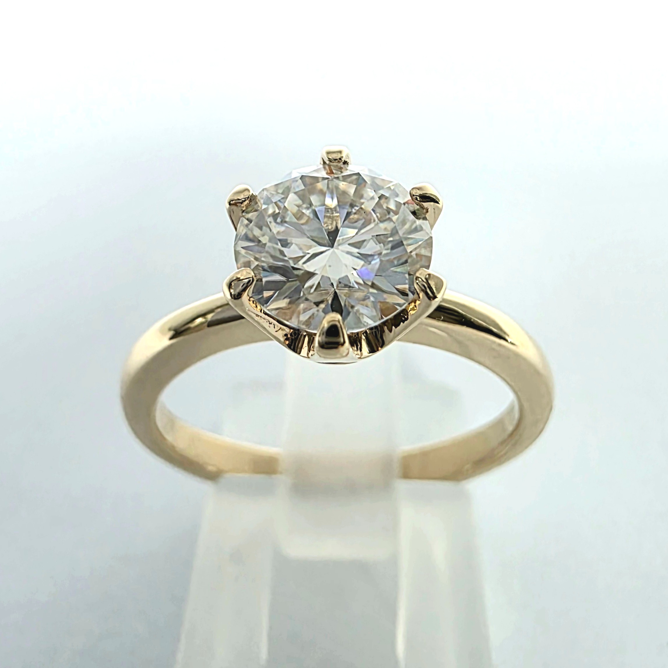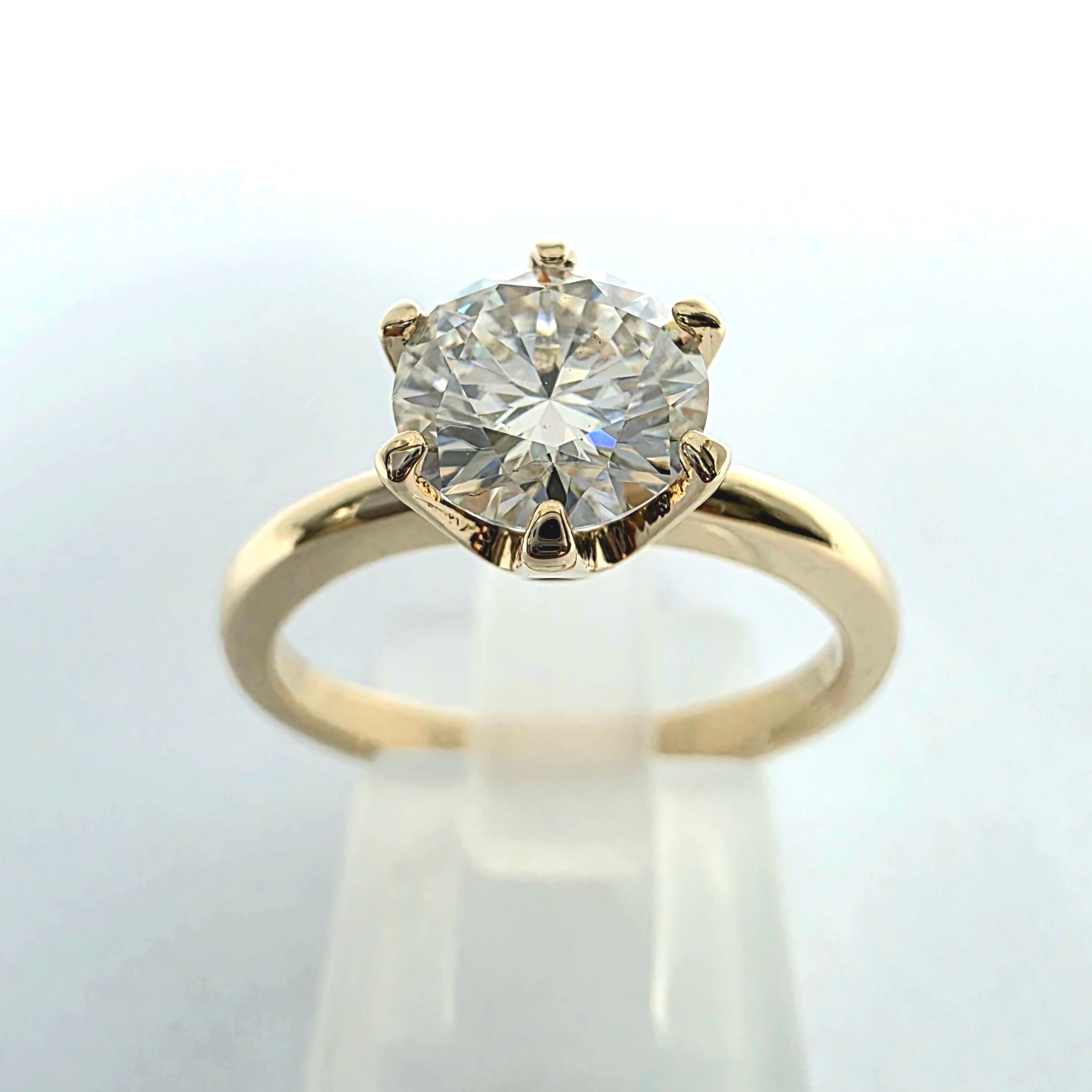 Solidny pierścionek z moissanitem 1,20 ct – żółte złoto 585 – mocna szyna i trwała oprawa na 6 łap – ABgold | Baczyński