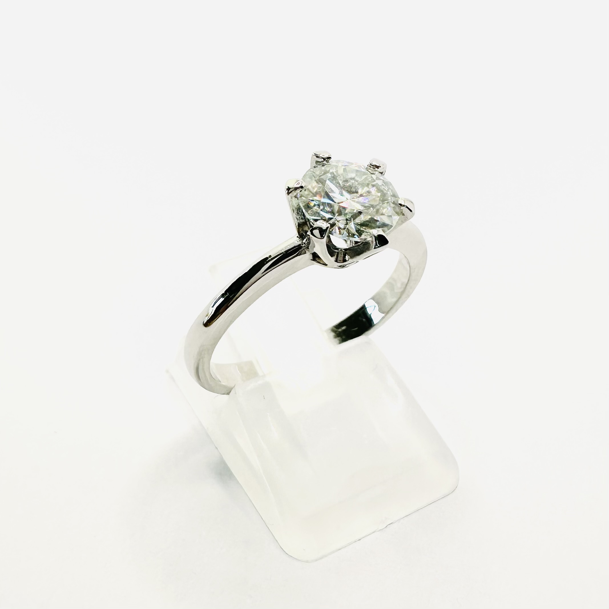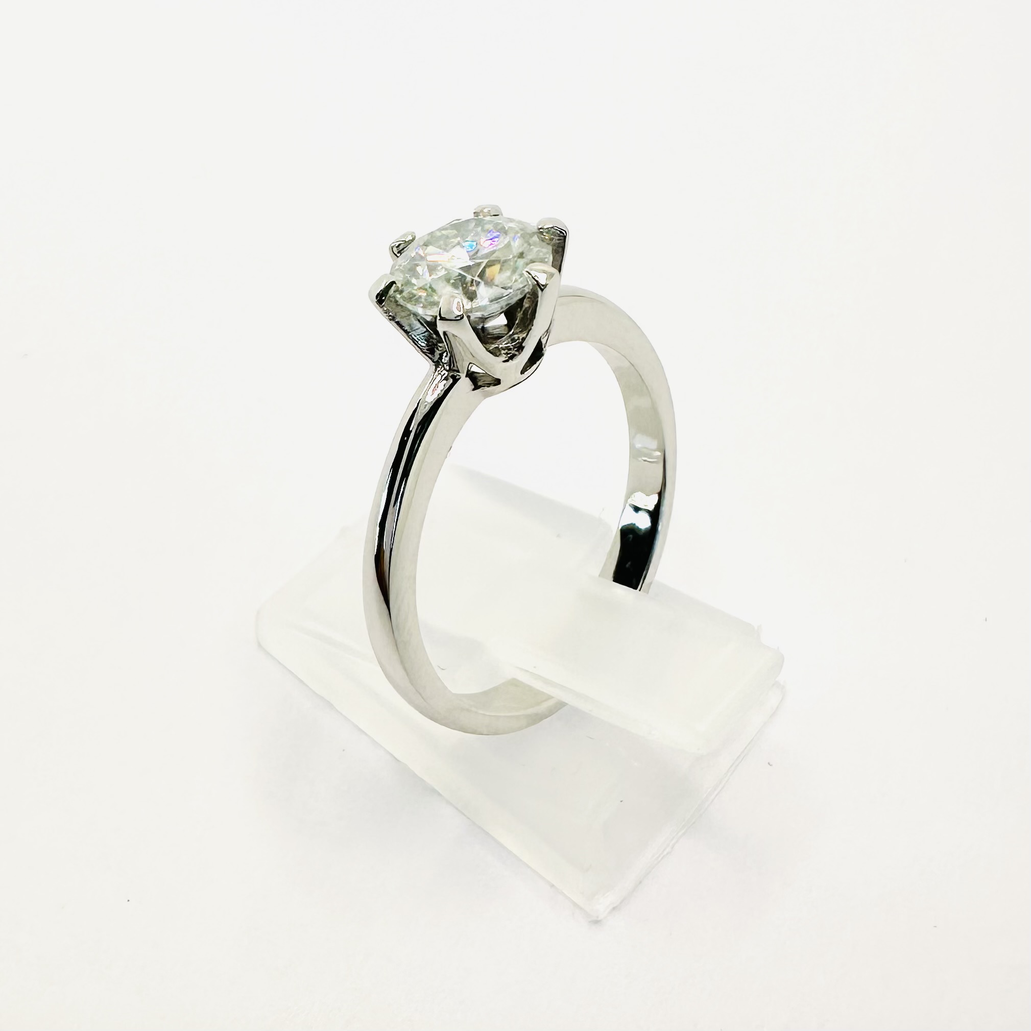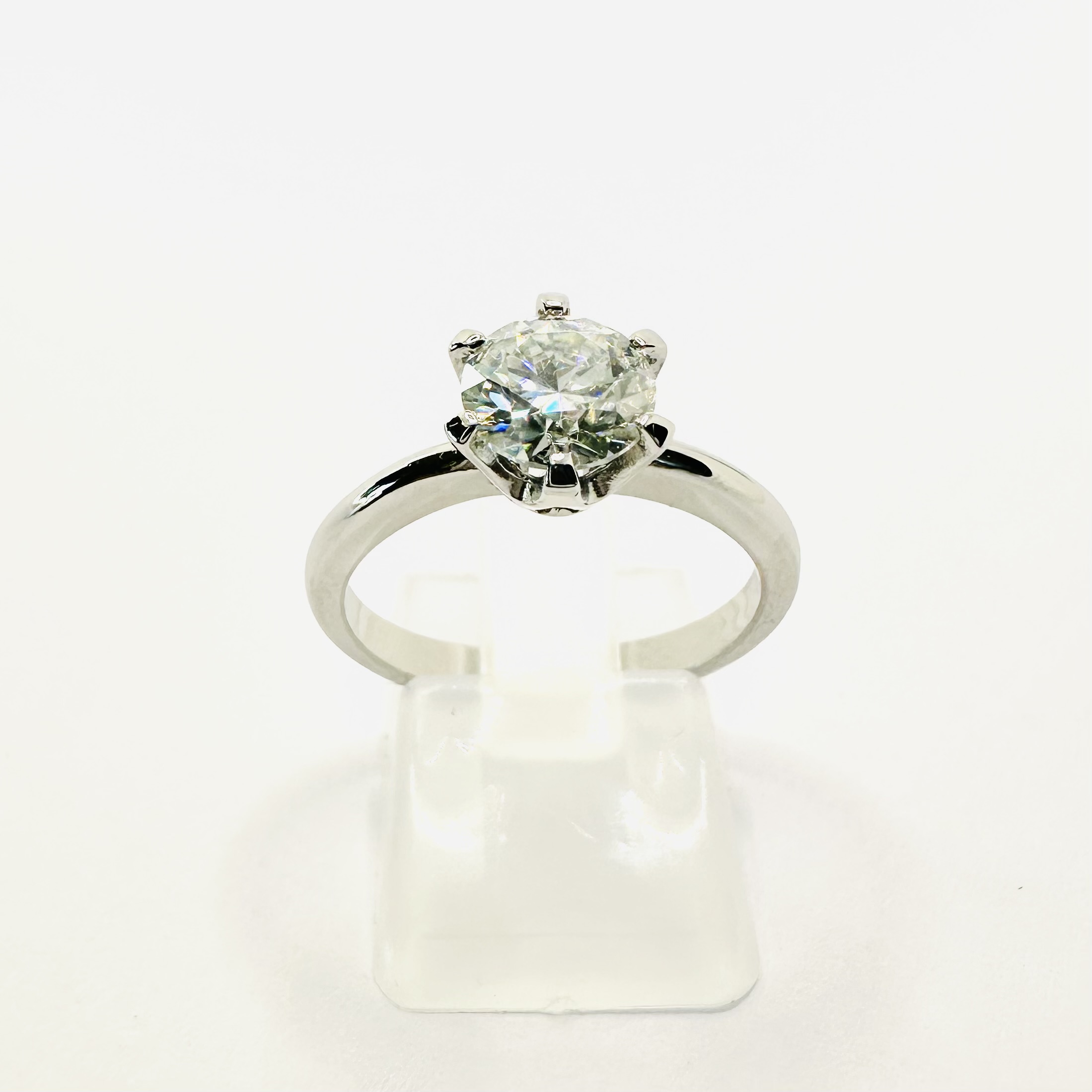 Solidny pierścionek z moissanitem 1,20 ct – białe złoto 585 – trwała oprawa na 6 łap – ABgold | Baczyński