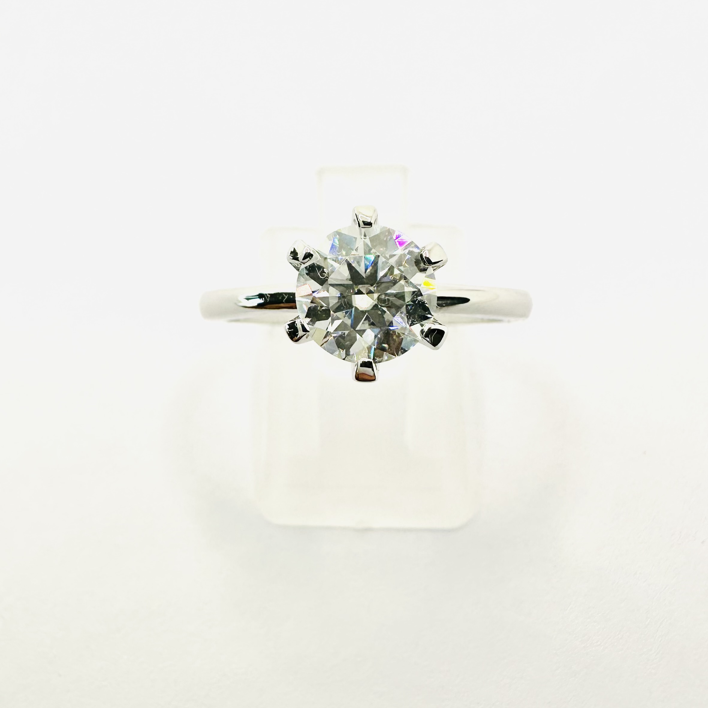 Imponujący, trwały pierścionek wykonany z białego złota 585 (14K), osadzony z brylantowym moissanitem VS1/E o średnicy około 7,0 mm i masie ok. 1,20 ct. To model stworzony z myślą o wieloletnim użytkowaniu — posiada masywną szynę, znaczną ilość złota oraz stabilną oprawę na 6 łap, która pewnie utrzymuje kamień. To pierścionek, który może być przekazywany z pokolenia na pokolenie.