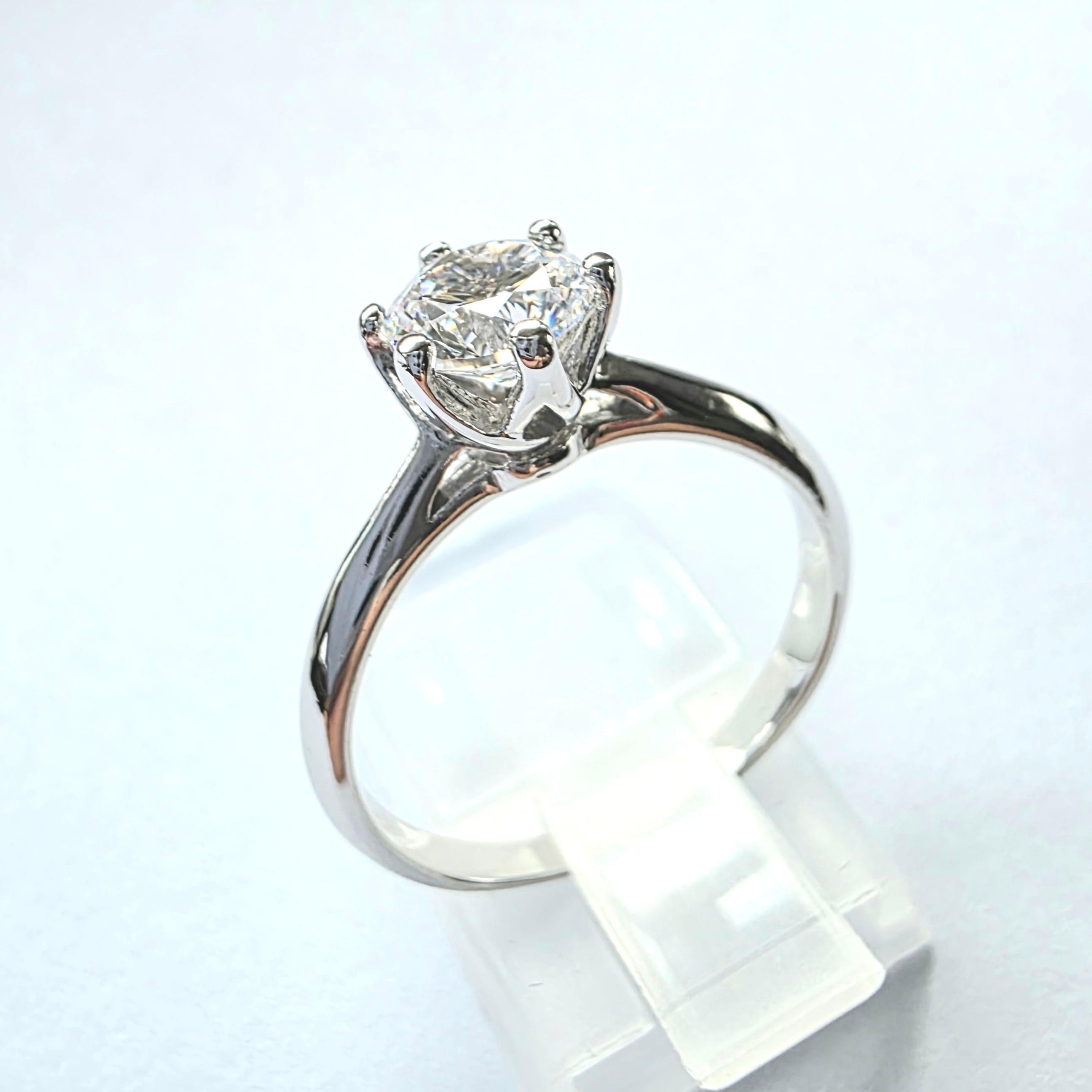 Klasyczny pierścionek z moissanitem 0,80 ct – białe złoto 585 – lekko wyeksponowana oprawa – ABgold | Baczyński