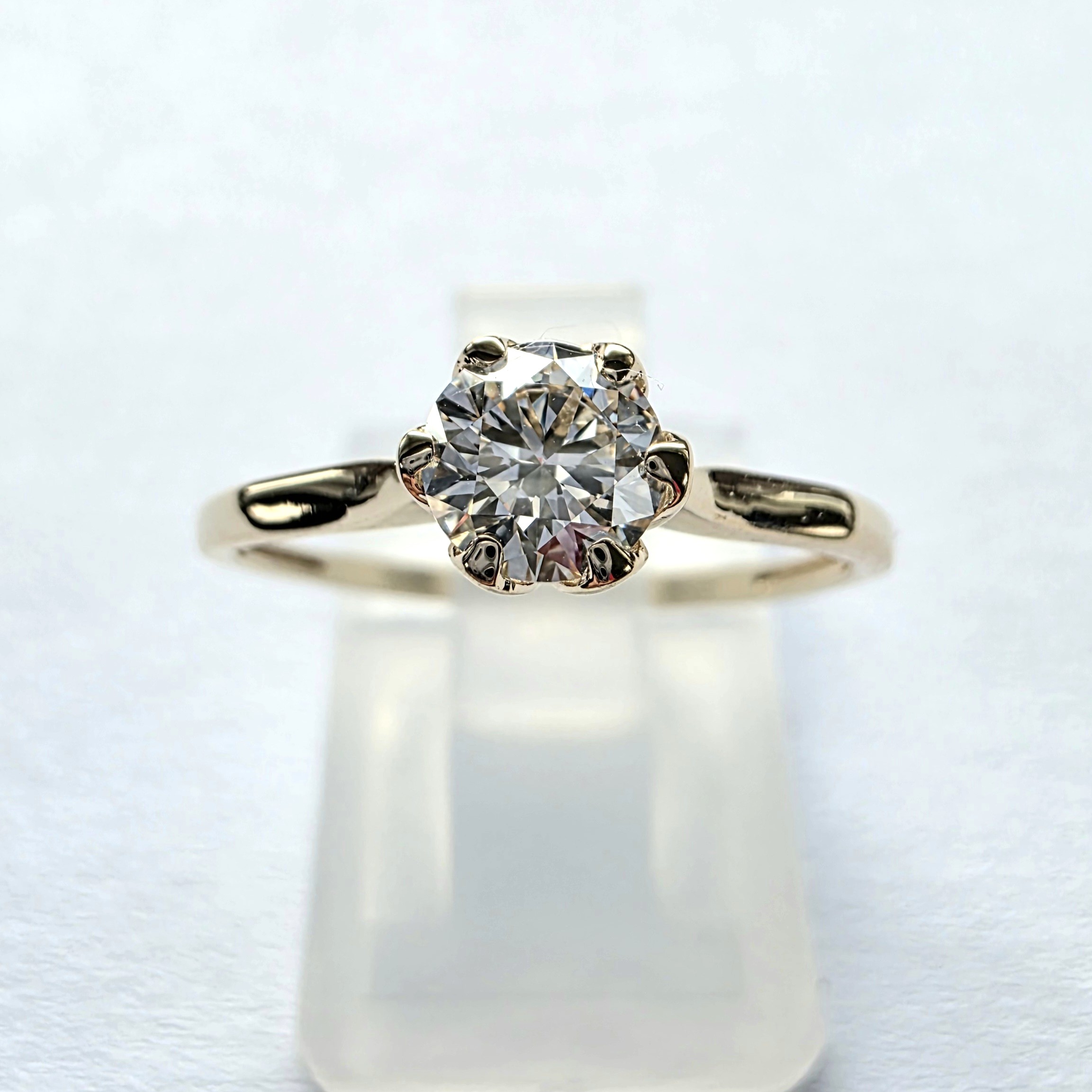 Pierścionek z moissanitem 0,50 ct w oprawie kwiatowej – żółte złoto 585 – ponadczasowy bestseller – ABgold | Baczyński