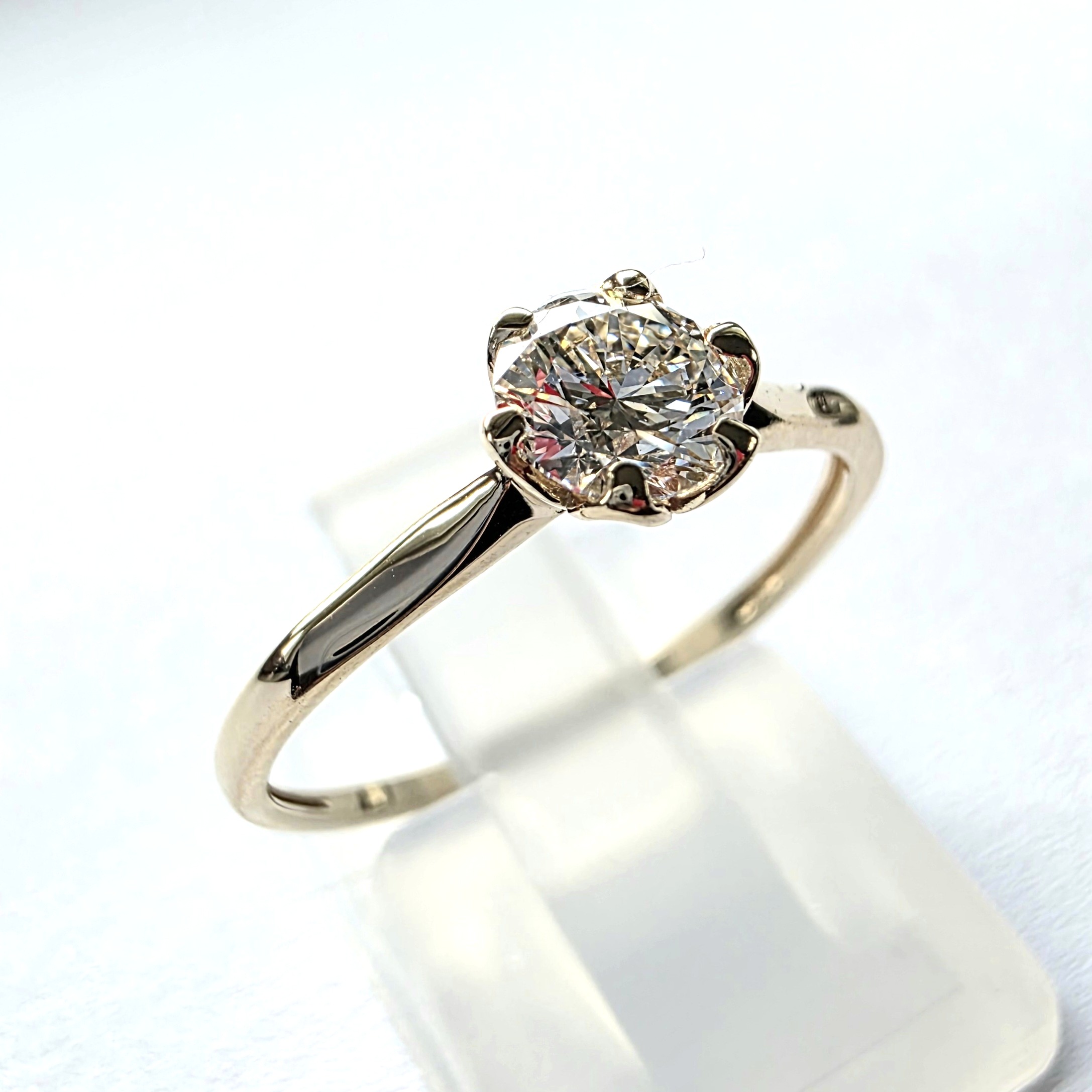 Masa produktu wynosi około 1,20 g, a całość wykonano z żółtego złota próby 585. Centralny moissanit brylantowy ma masę ok. 0,50 ct i średnicę 5,0 mm, osadzony w efektownej oprawie stylizowanej na kwiat. To konstrukcja, która świetnie prezentuje się na dłoni i zachowuje wygodę codziennego użytkowania.