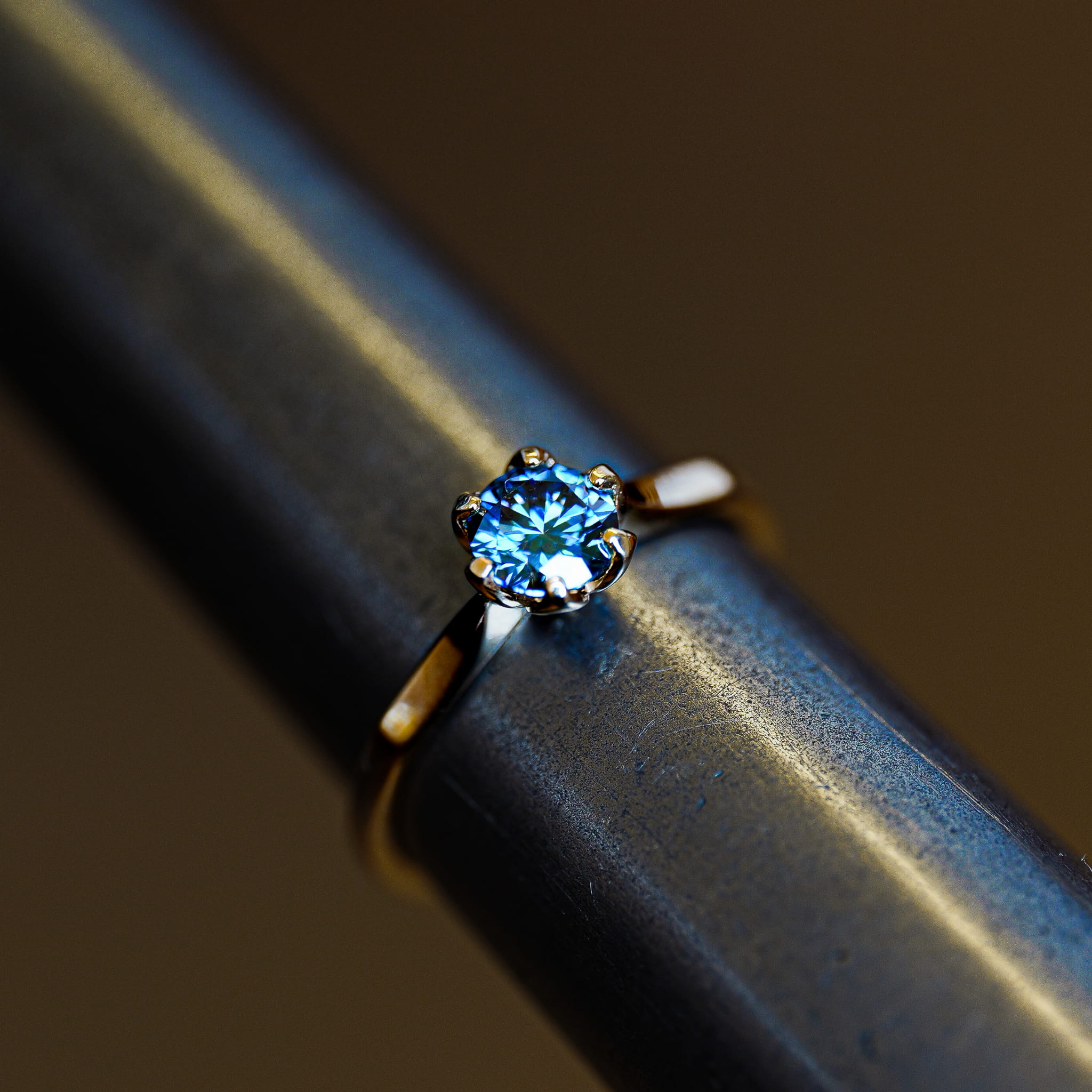 Szlif brylantowy wydobywa pełnię piękna moissanitu, dzięki 57 fasetom zaprojektowanym do maksymalnego odbijania światła. Połączenie intensywnej niebieskiej barwy z mocnym brylantowym błyskiem daje efekt prawdziwie luksusowy.