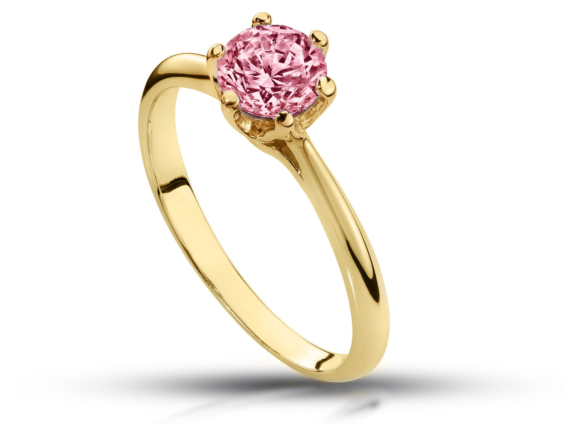 Klasyczny pierścionek z różowym moissanitem 0,80 ct – żółte złoto 585 – solidna, wyeksponowana oprawa – ABgold | Baczyński