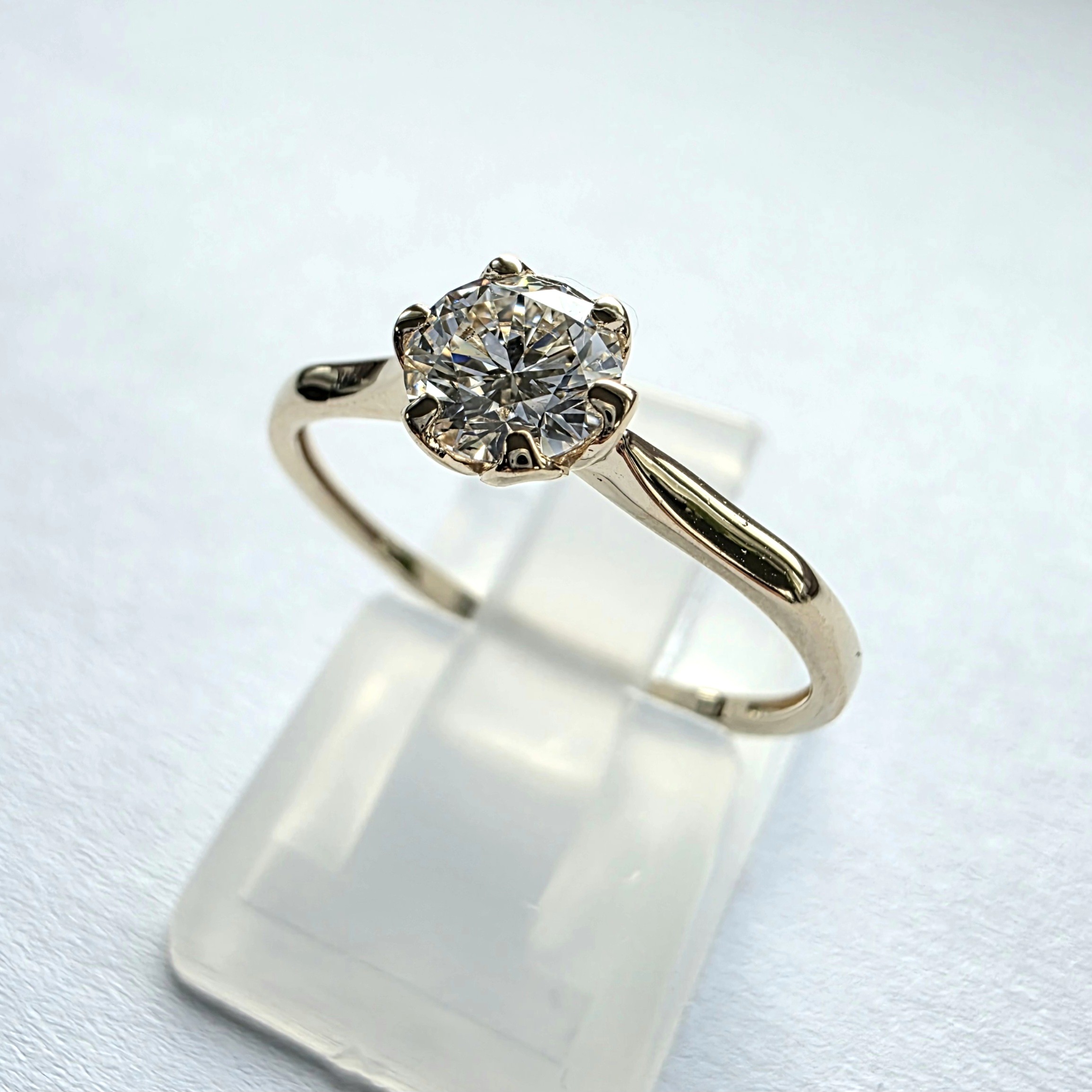 Klasyczny pierścionek wykonany z żółtego złota próby 585 (14K), ozdobiony diamentem laboratoryjnym o masie ok. 0,50 ct i średnicy ok. 5,00 mm. Kamień posiada minimalne parametry VS1/E, dzięki czemu zachwyca czystością, jasną barwą i wyrazistym blaskiem. Ponadczasowa forma oraz staranne wykonanie czynią ten model idealnym na zaręczyny oraz jako wyjątkowy prezent dla siebie.