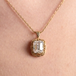 Złota zawieszka z moissanitem szlif szmaragdowy 585