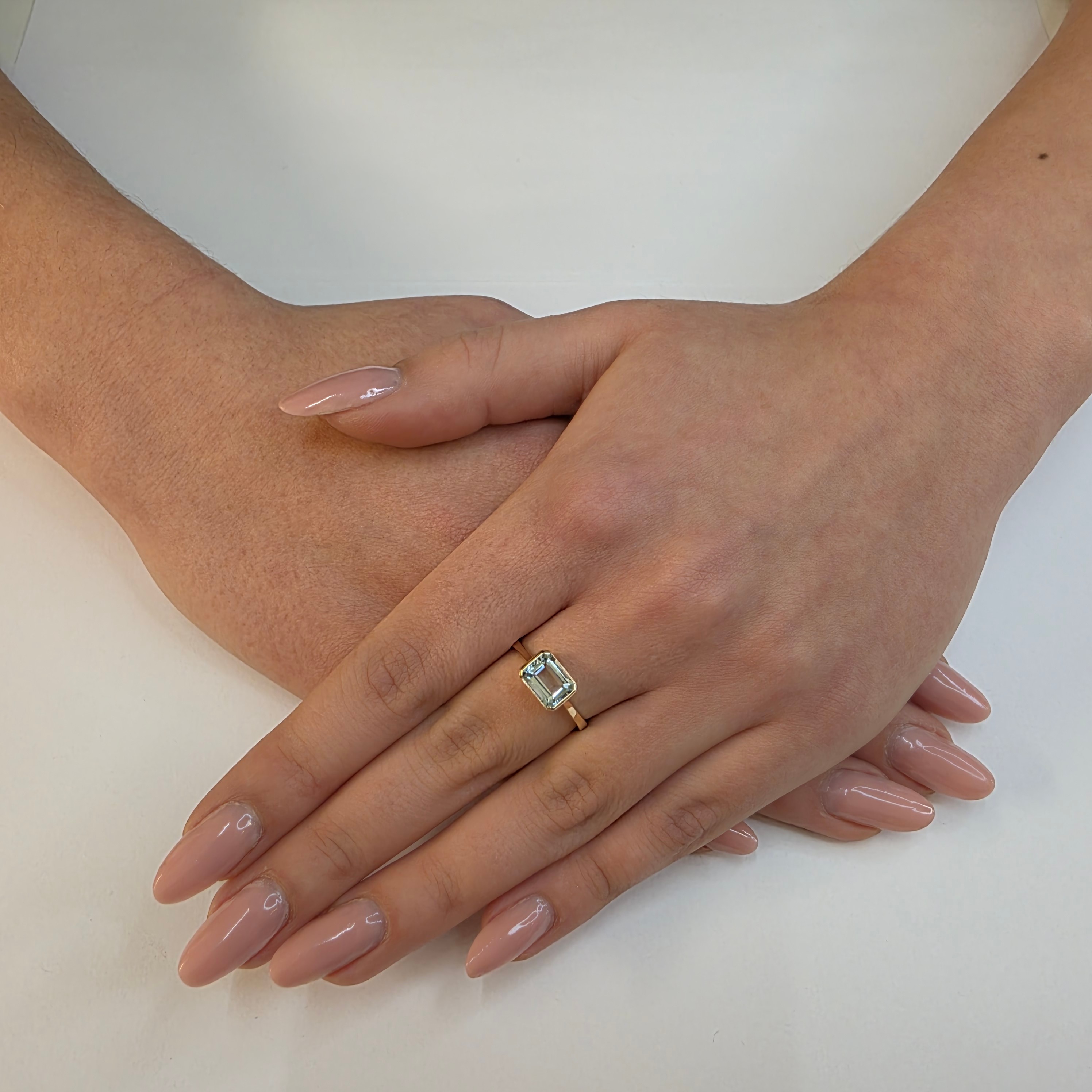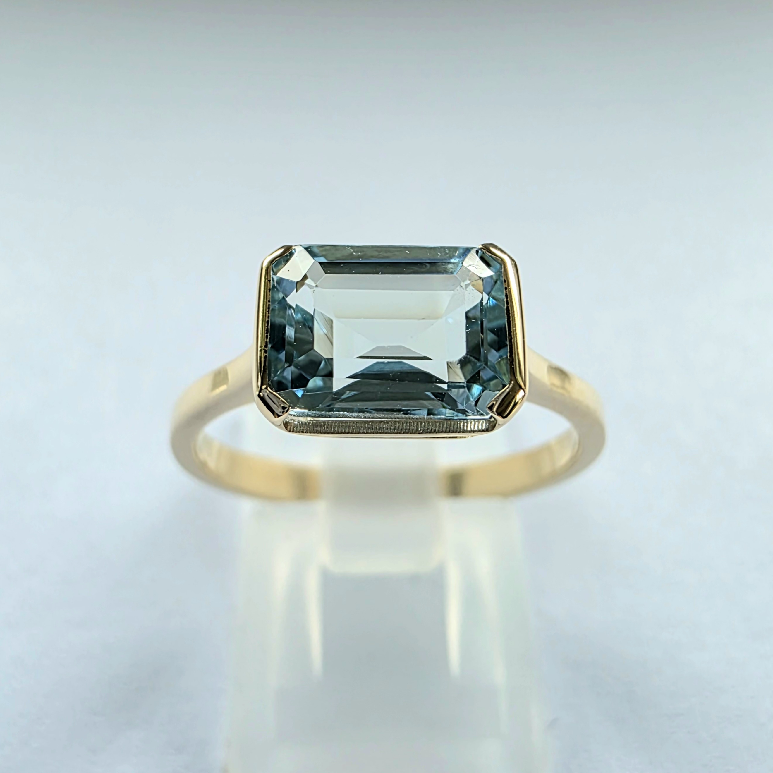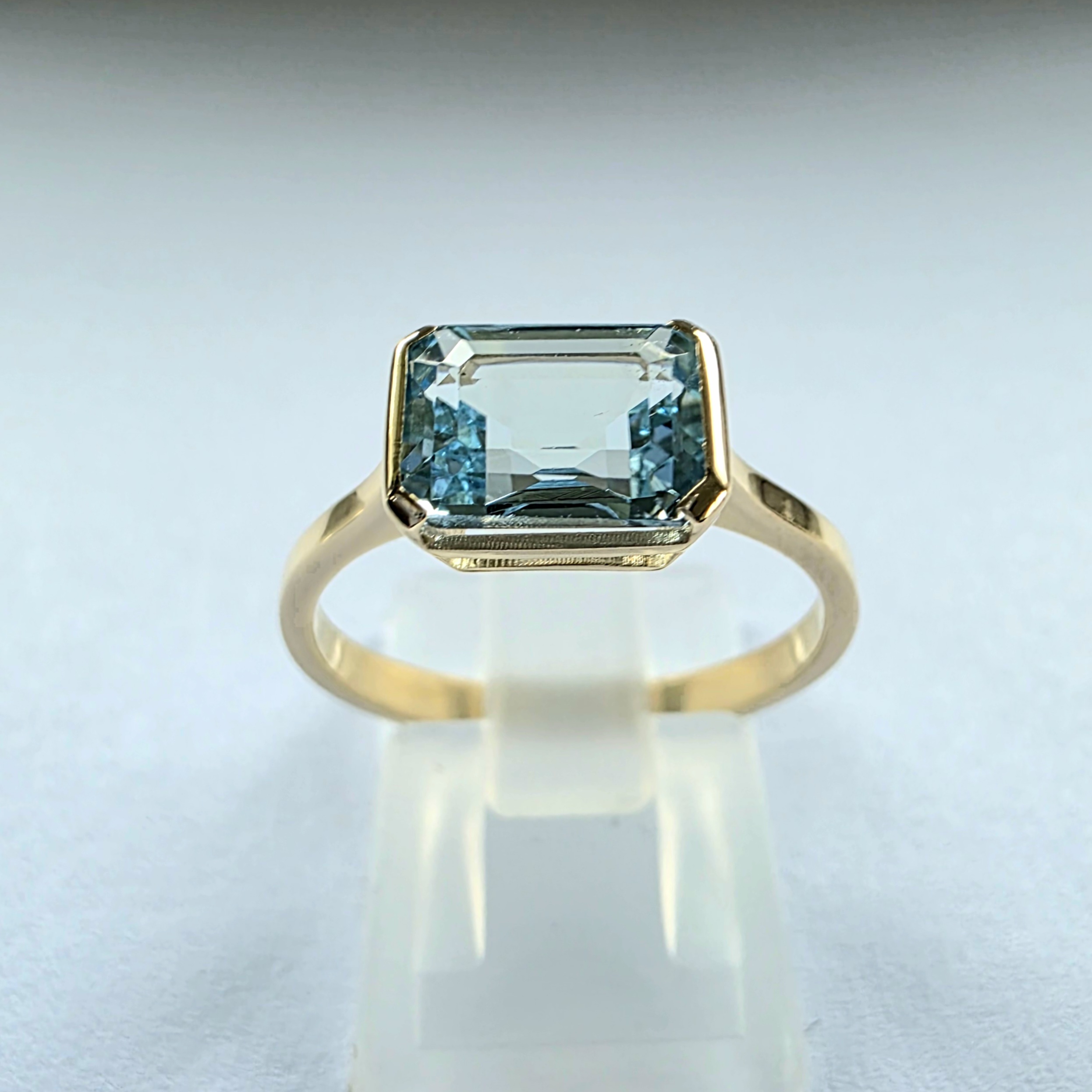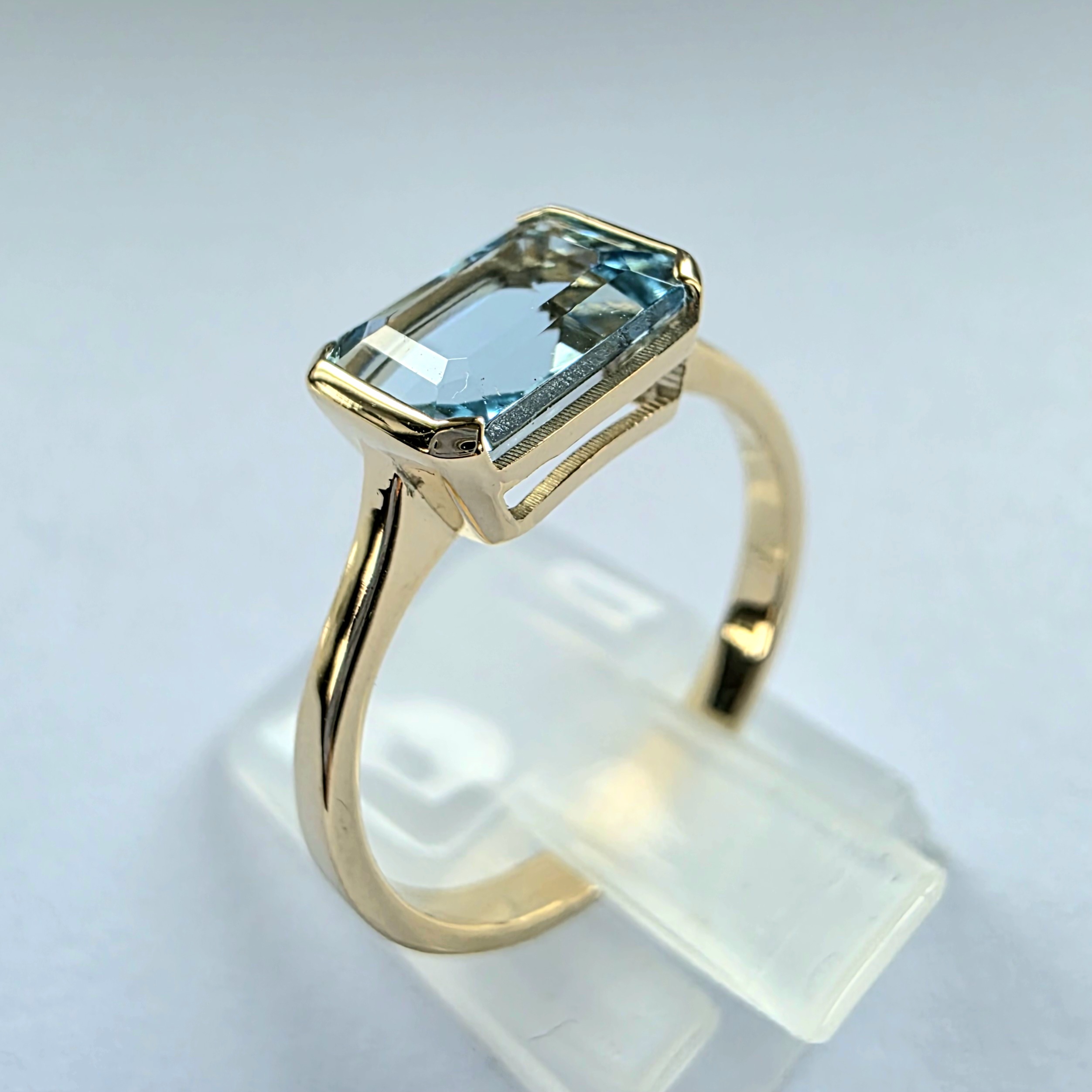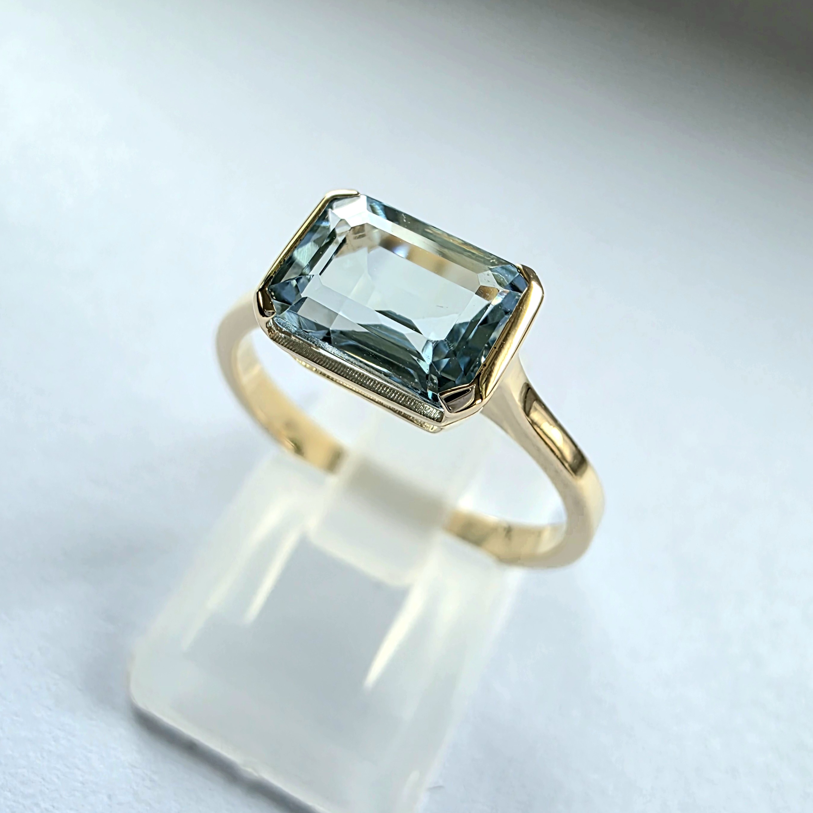 Nowoczesny pierścionek z naturalnym akwamarynem 1,2 ct w szlifie Emerald – żółte złoto 585 – ABgold | Baczyński