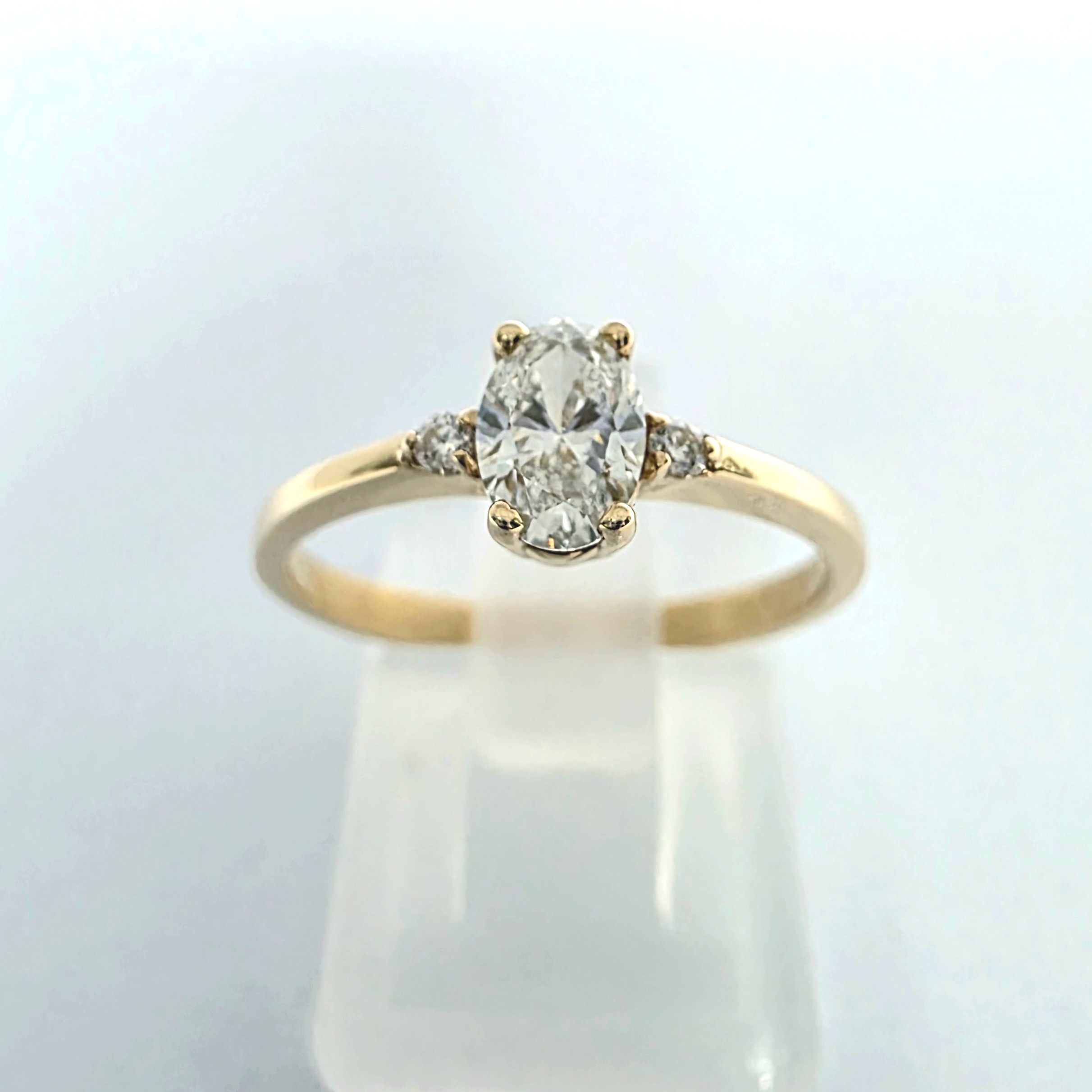 Pierścionek z owalnym moissanitem 0,45 ct i diamentami 0,03 ct – żółte złoto 585 – bestsellerowa klasyka – ABgold | Baczyński