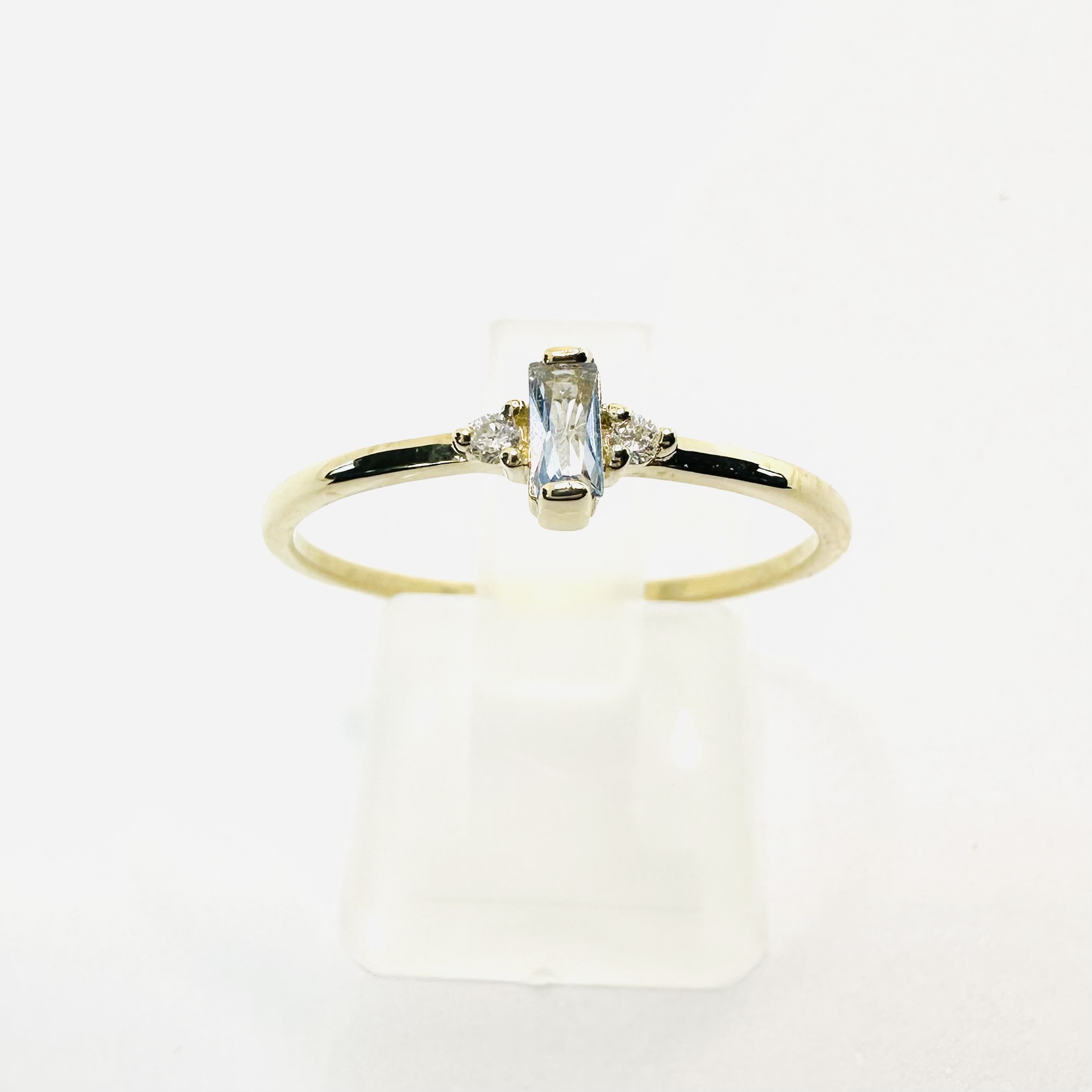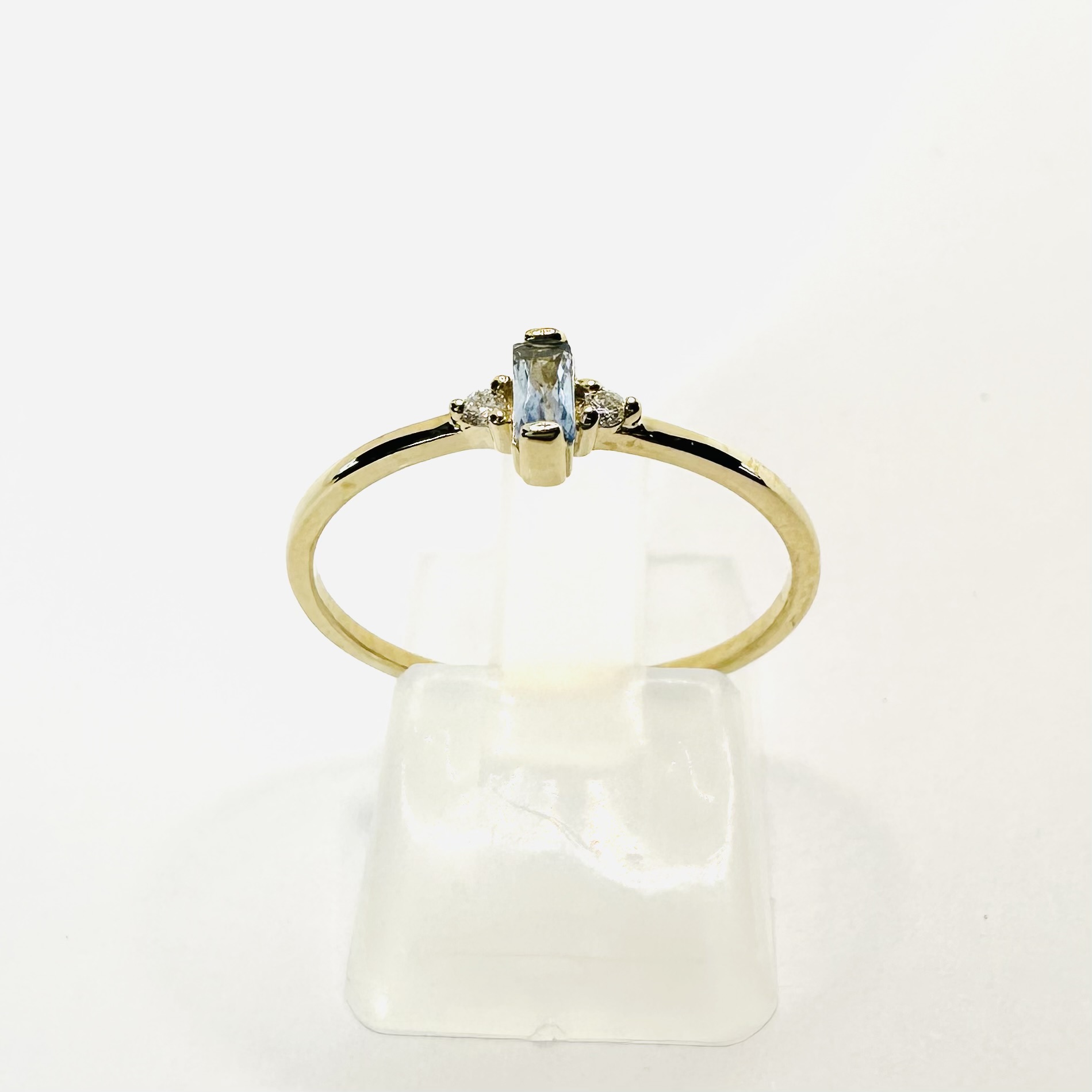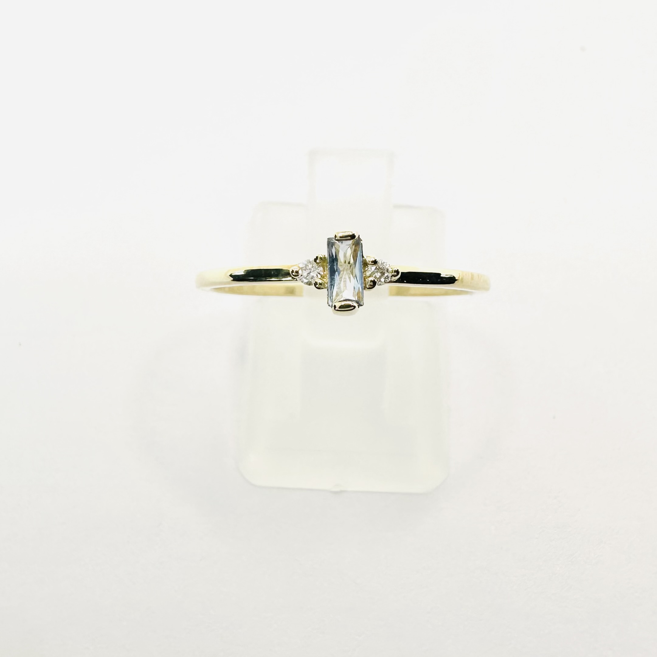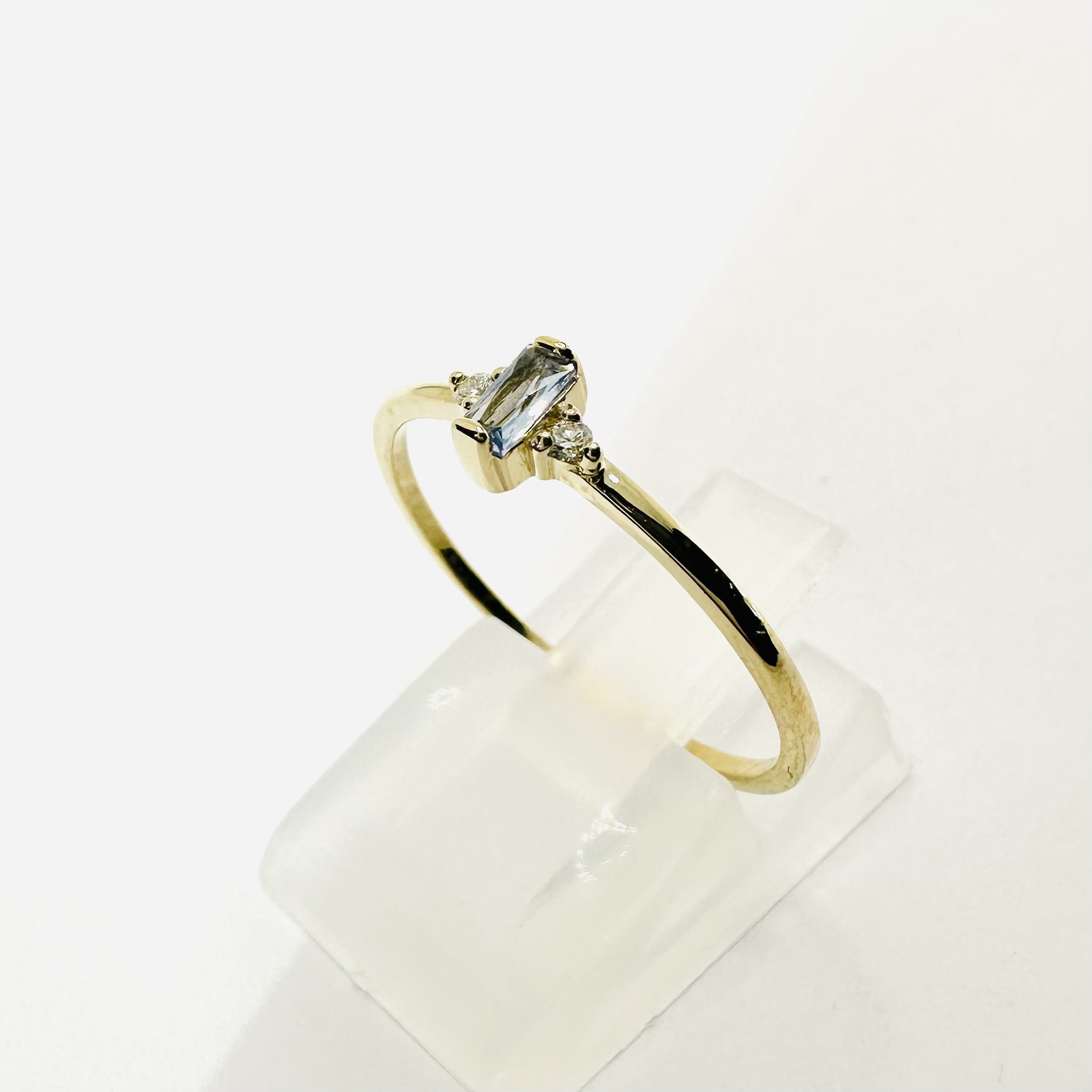 Delikatny pierścionek z akwamarynem emerald i naturalnymi diamentami – żółte złoto 585 – ABgold | Baczyński