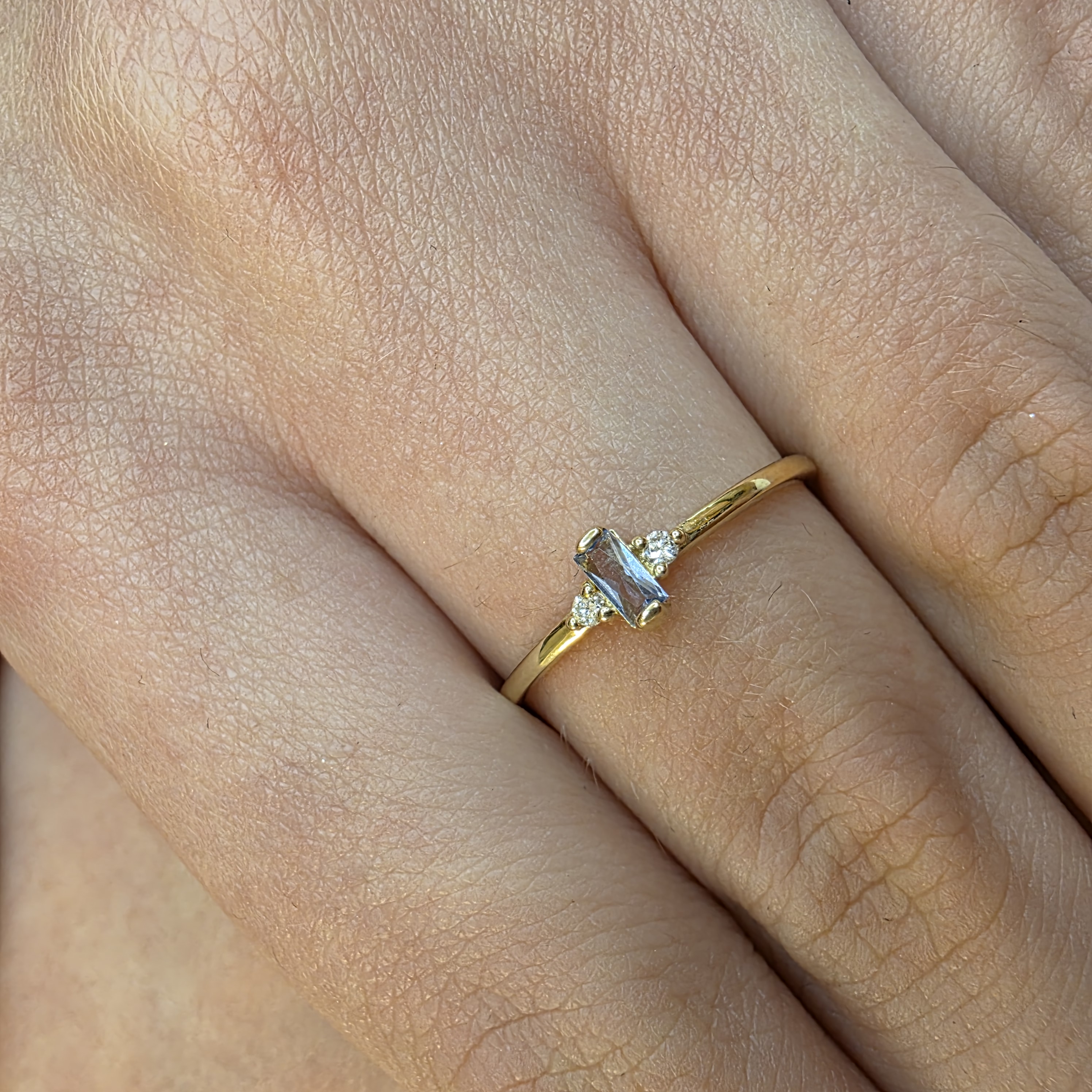 Subtelny, ponadczasowy pierścionek wykonany z żółtego złota 585 (14K), zaprojektowany z myślą o osobach, które cenią elegancką, minimalistyczną biżuterię z kamieniami naturalnymi. W naszej rodzinnej pracowni ABgold | Baczyński tworzymy go z wykorzystaniem własnych odlewów, co pozwala uzyskać idealne proporcje oraz precyzyjnie dopracowaną oprawę.
