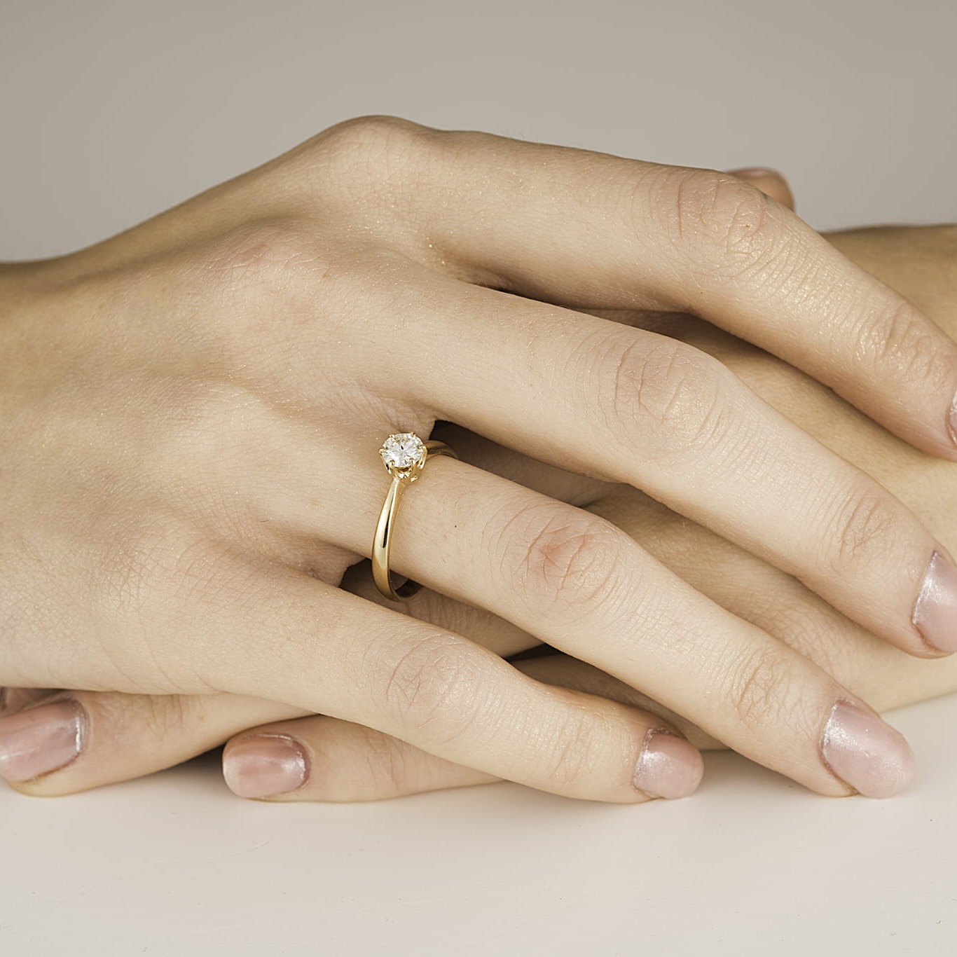 Średnica kamienia to około 5,0 mm, co zapewnia elegancki i dobrze widoczny efekt na dłoni.