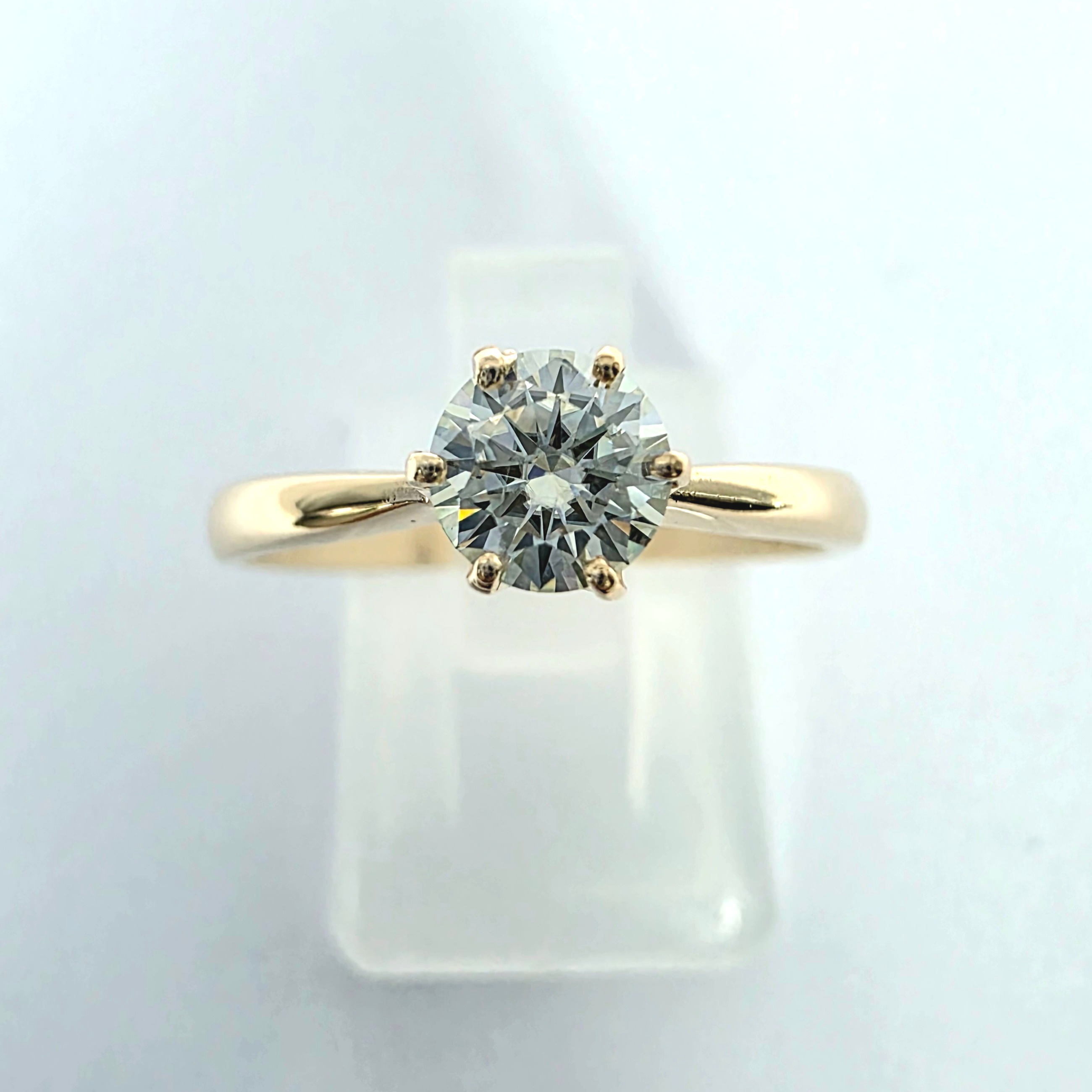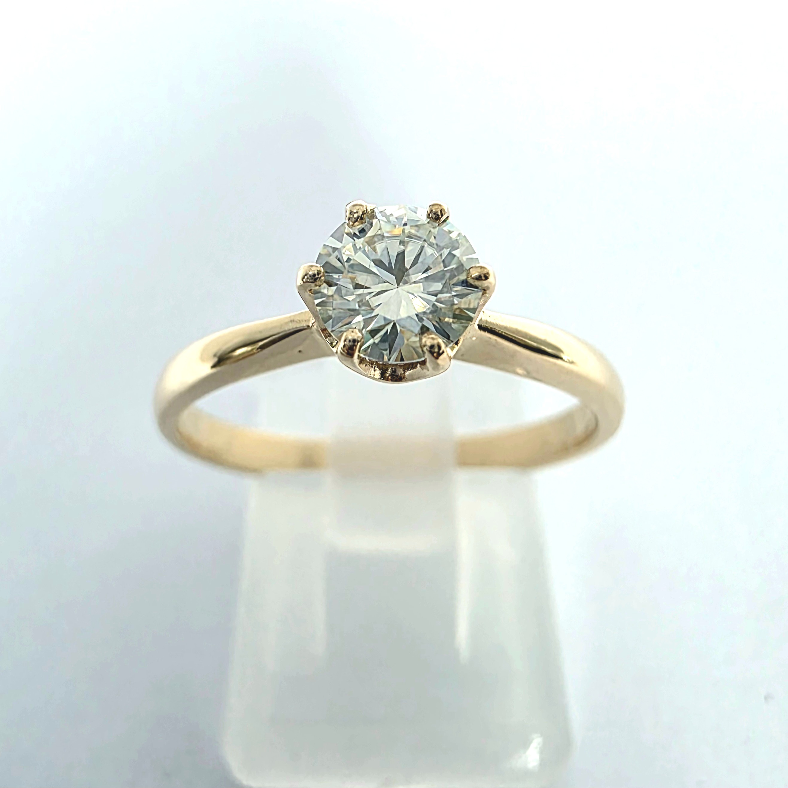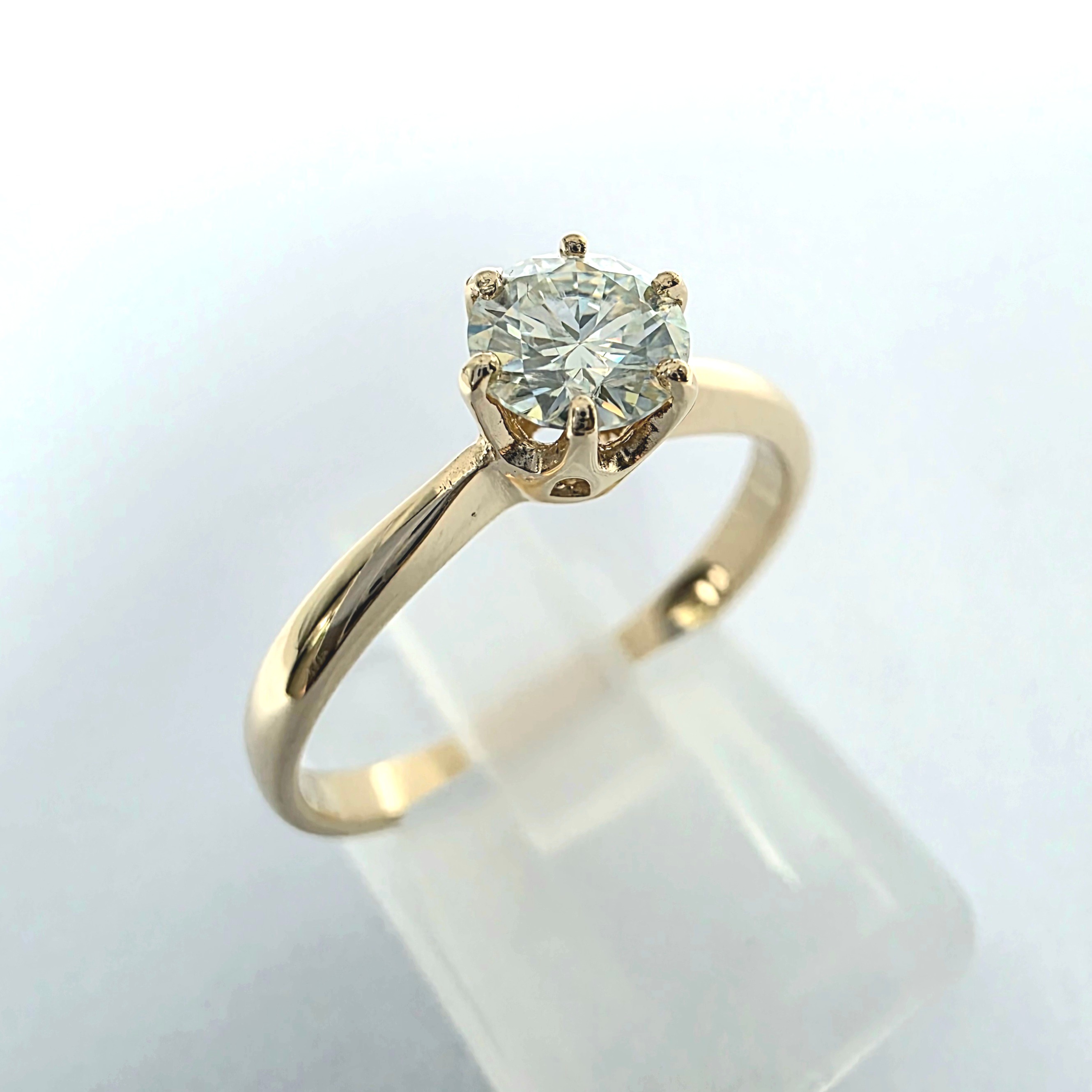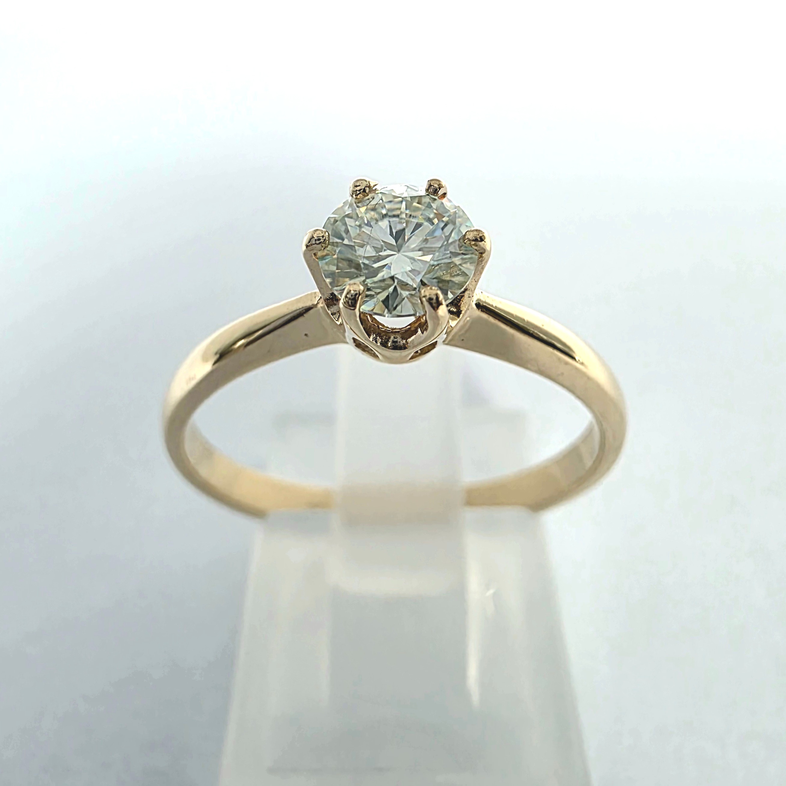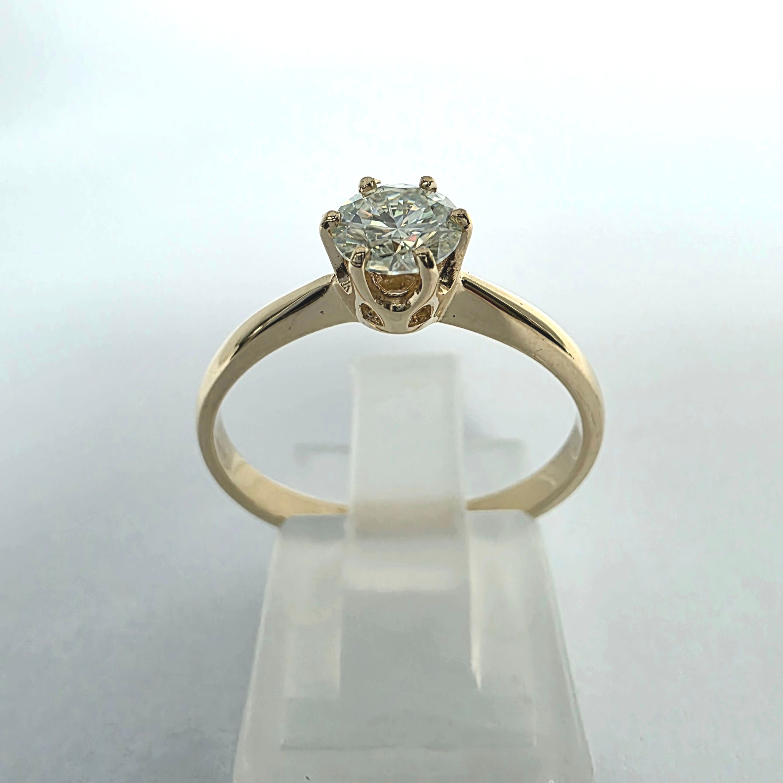 Pierścionek wykonano z żółtego złota próby 585, a jego masa wynosi około 2,0 g.