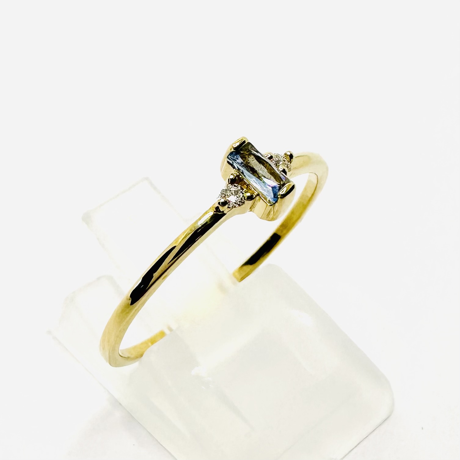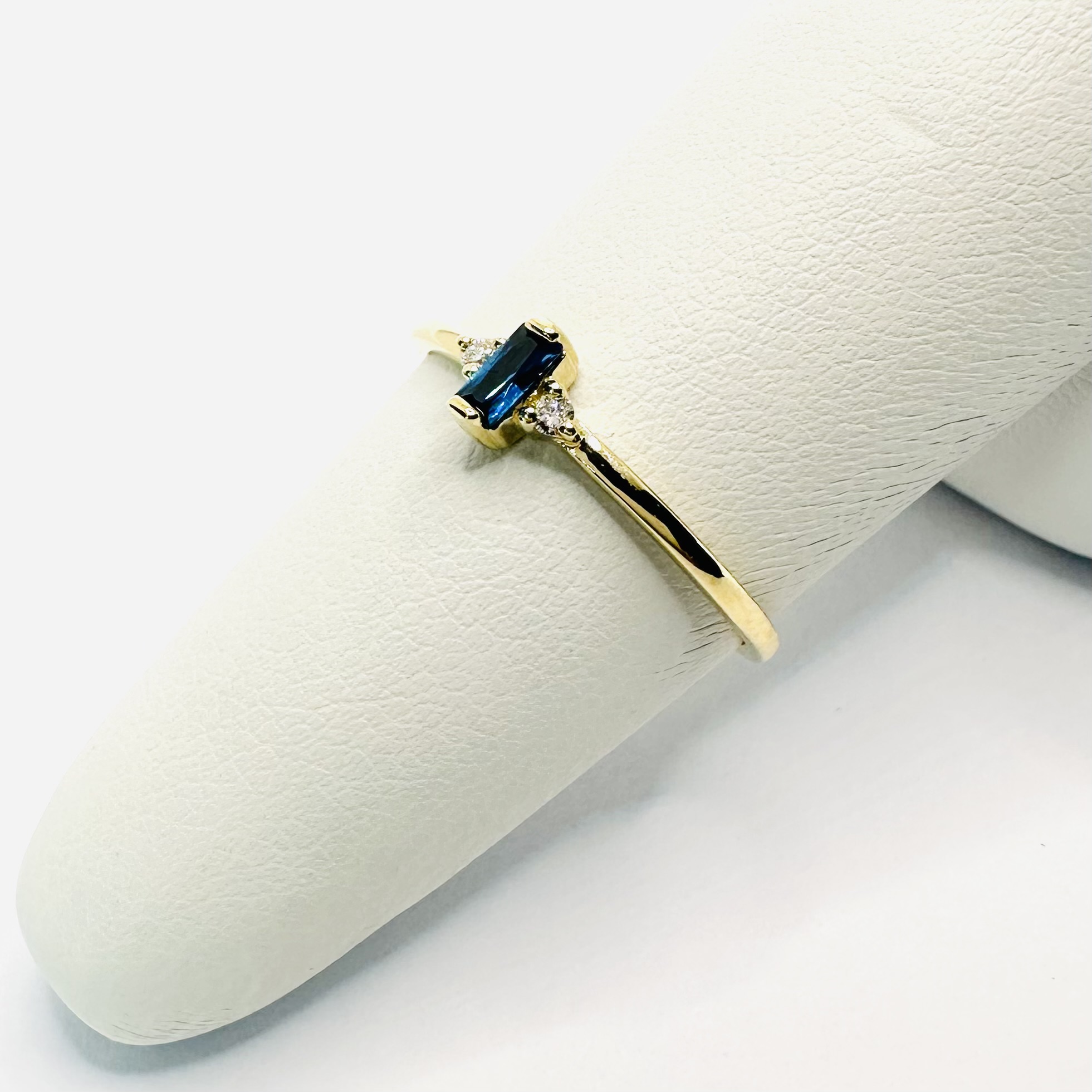 Delikatny pierścionek z szafirem emerald i naturalnymi diamentami – żółte złoto 585 – ABgold | Baczyński