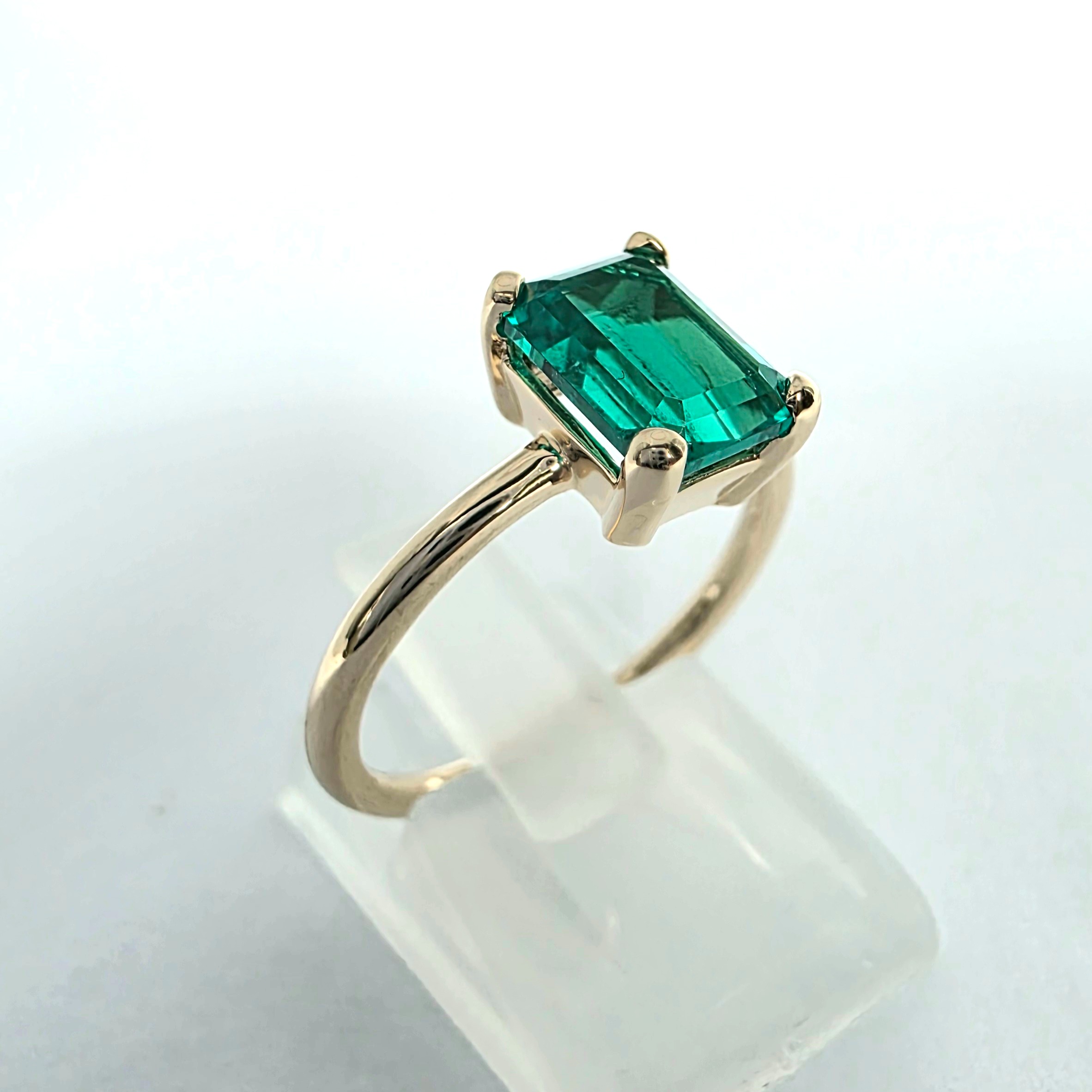 Złoty pierścionek ze szmaragdem naturalnym szlif szmaragdowy
