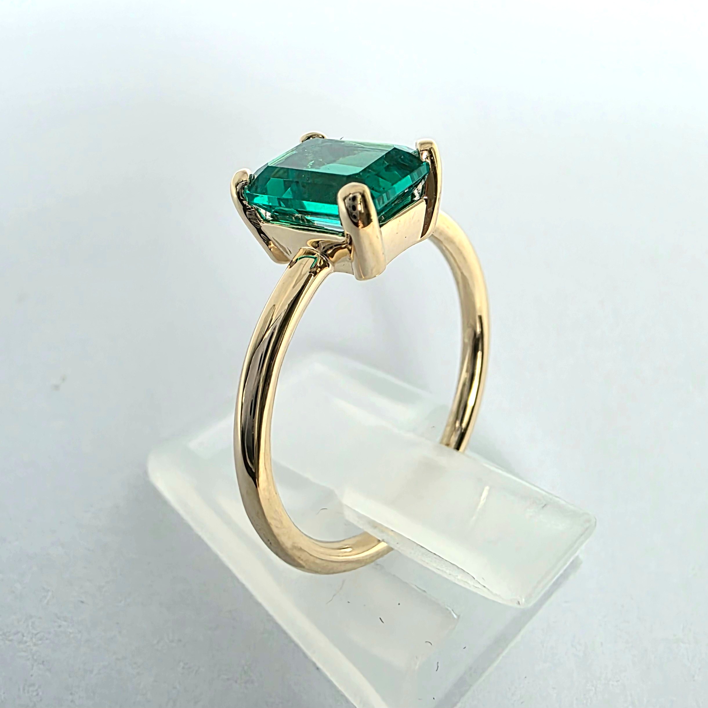 Szlif emerald — prostokątny, z charakterystycznymi ściętymi narożami — doskonale eksponuje kolor kamienia, zachowując elegancką geometrię i szlachetność typową dla kamieni stosowanych w biżuterii wyższej klasy.
